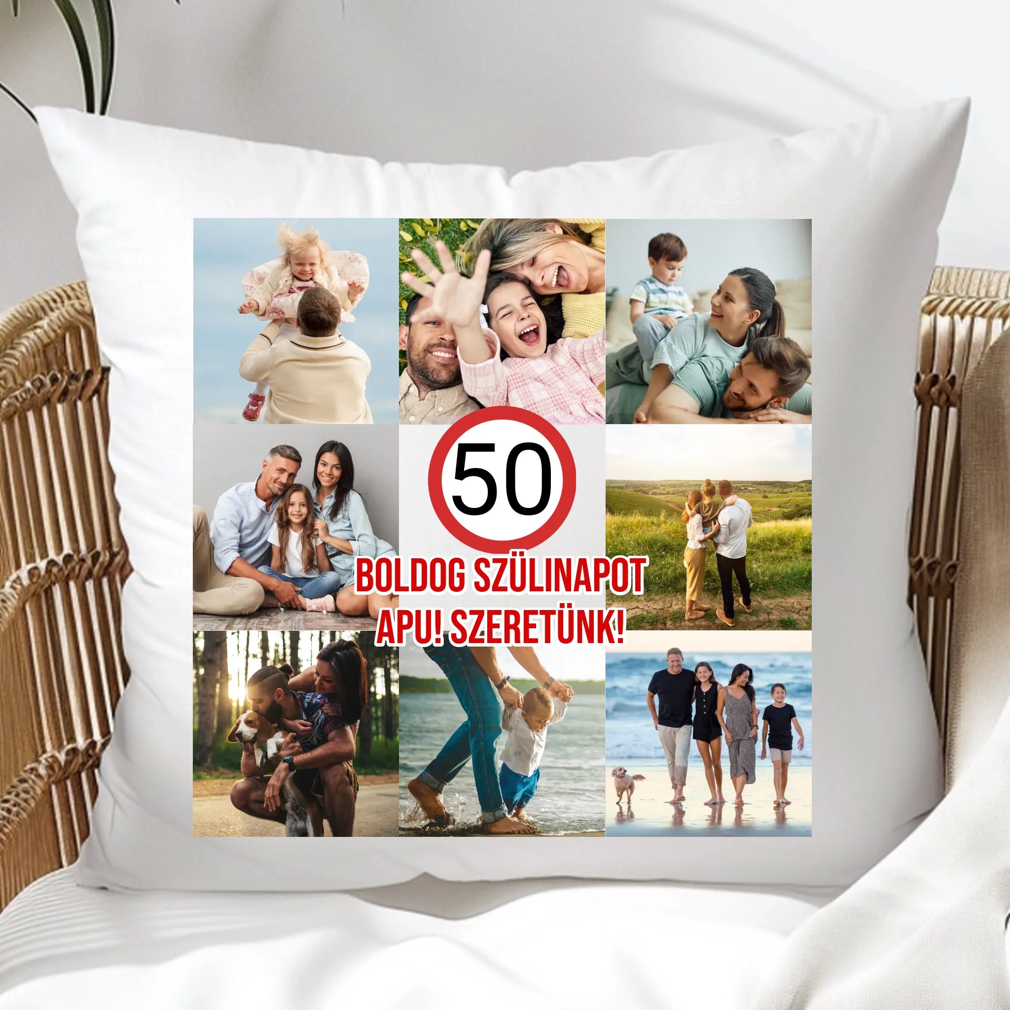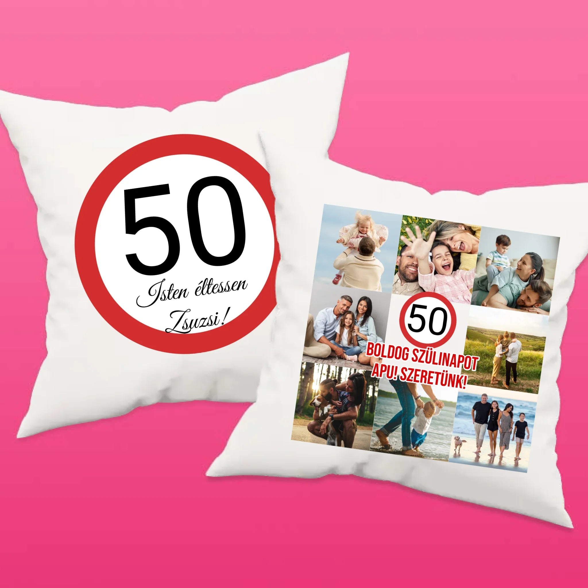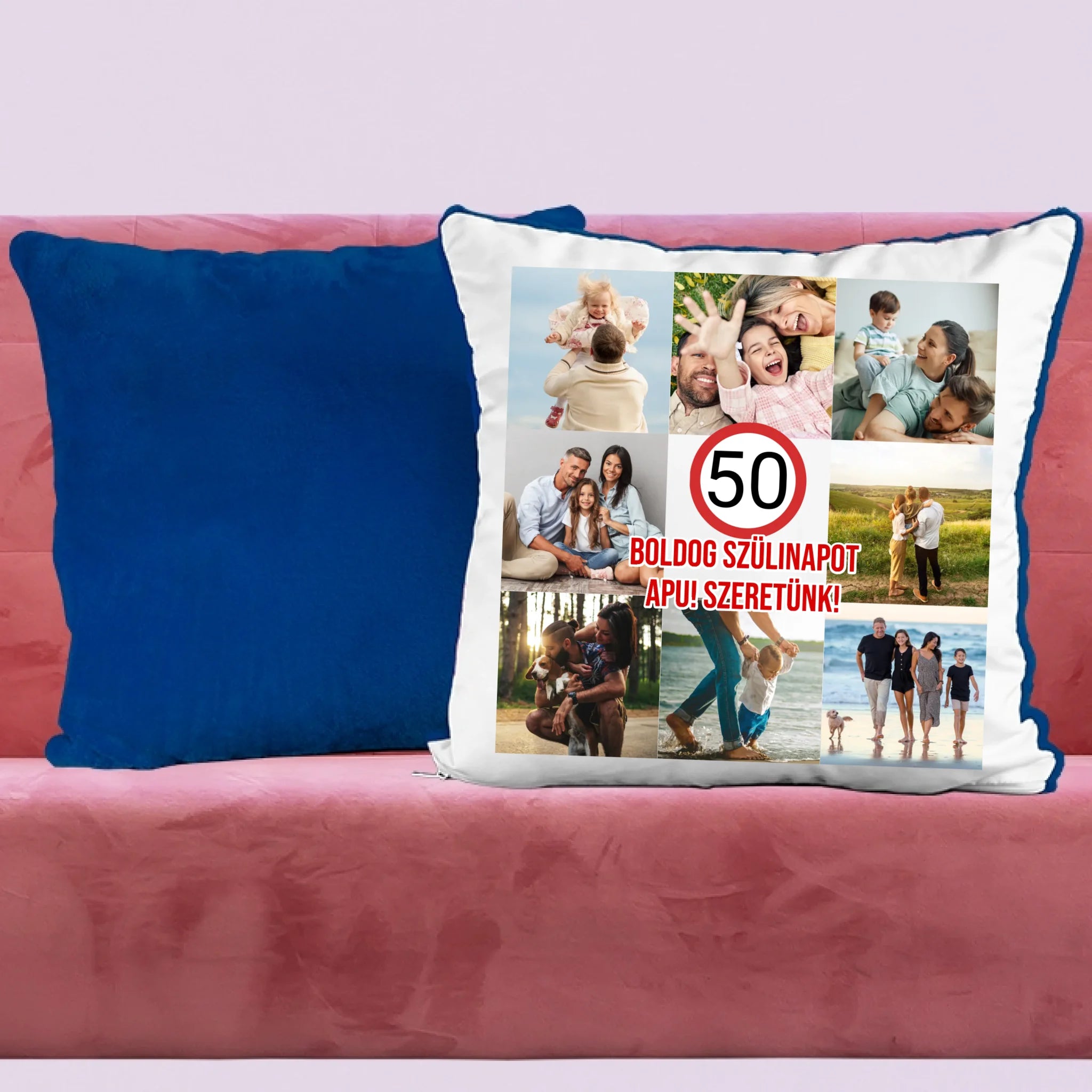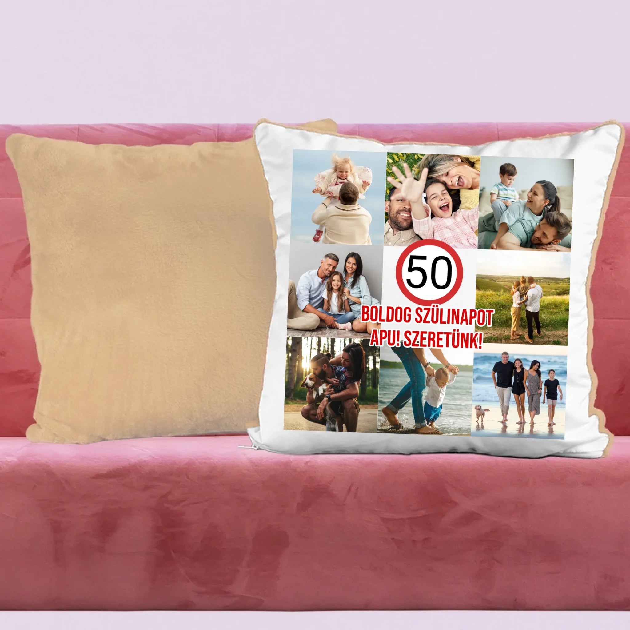 Az egyedi születésnapi párna saját felirattal és fotóval is személyre szabható.