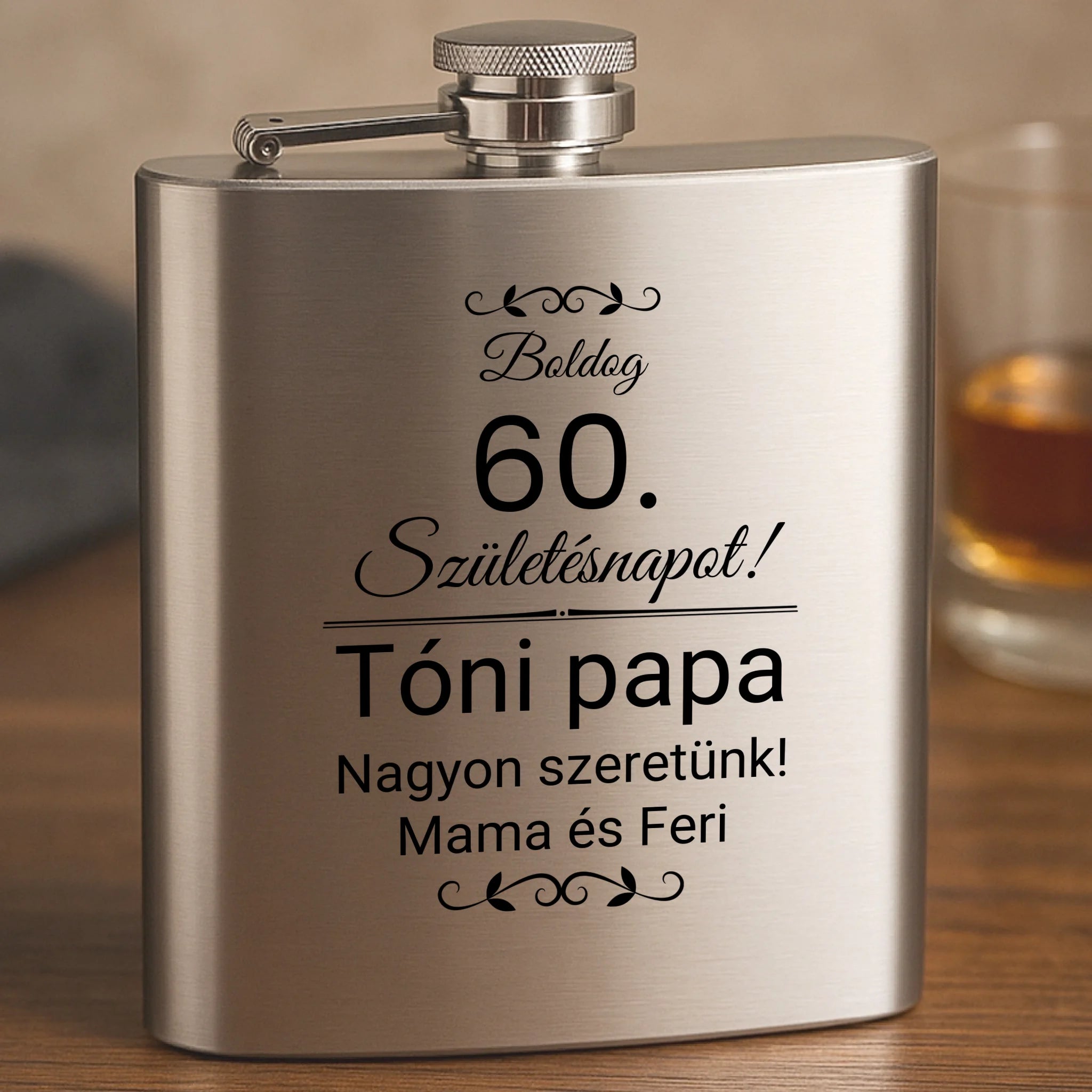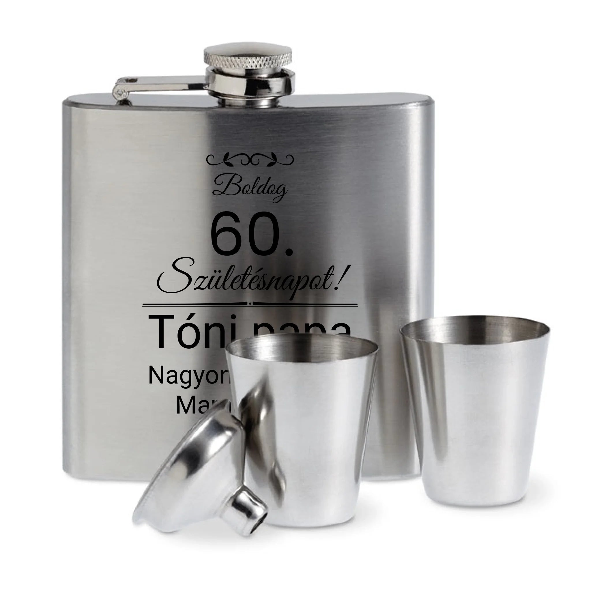 Stílusos, praktikus és személyre szabható – ez a gravírozott flaska szett minden alkalomra tökéletes ajándék! Legyen szó születésnapról, évfordulóról, legénybúcsúról vagy céges ajándékról, ez a kis elegáns kiegészítő garantáltan örömet okoz.