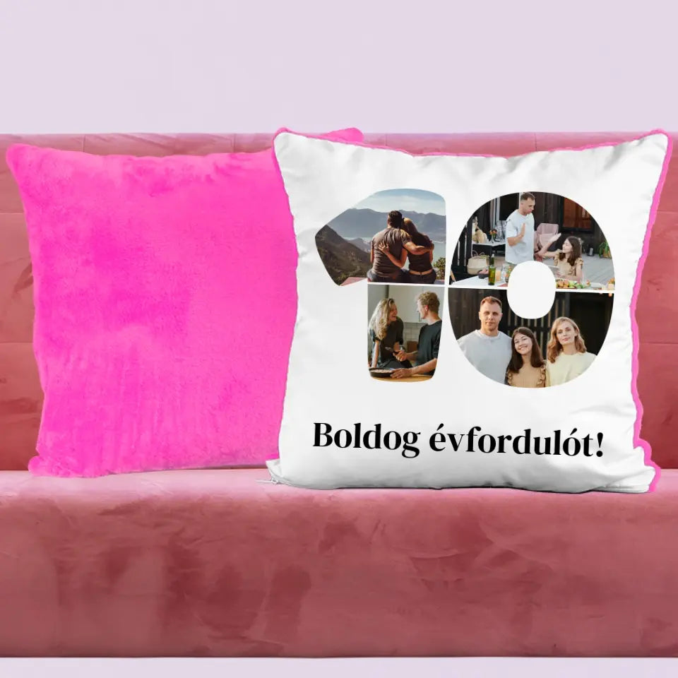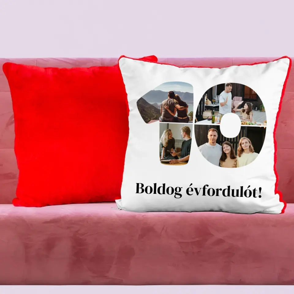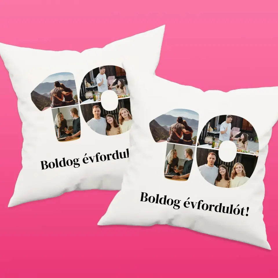 Egyedi fényképes párna szám alakú montázzsal, ami tökéletes ajándék születésnapra vagy évfordulóra is.
