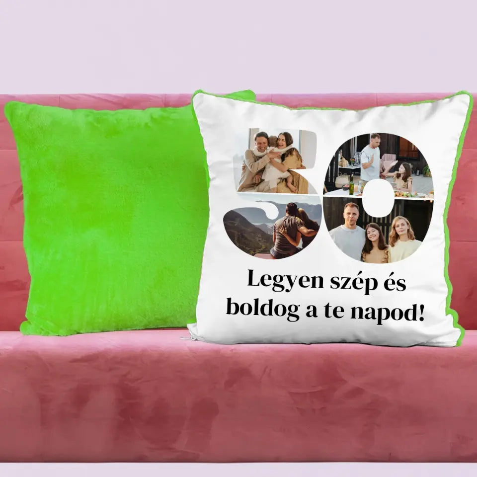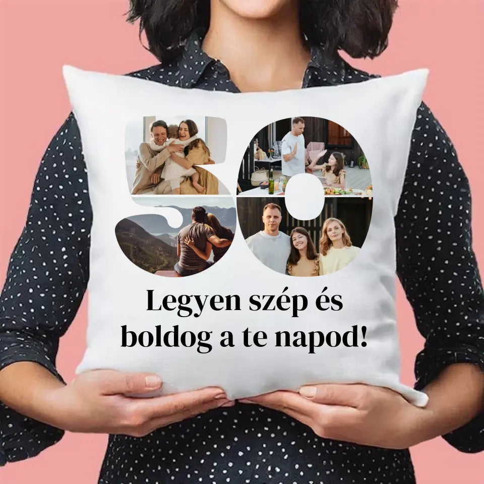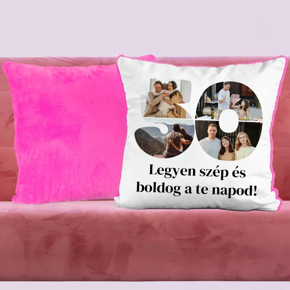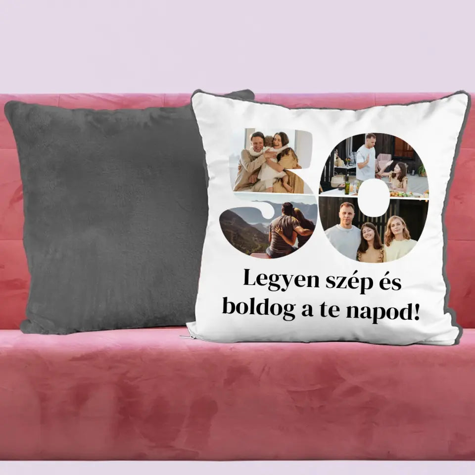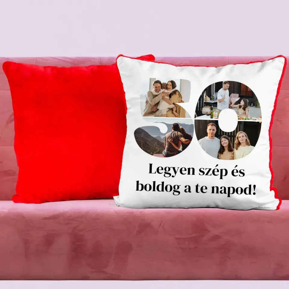 Egyedi fényképes párna szám alakú montázzsal, ami tökéletes ajándék születésnapra vagy évfordulóra is.