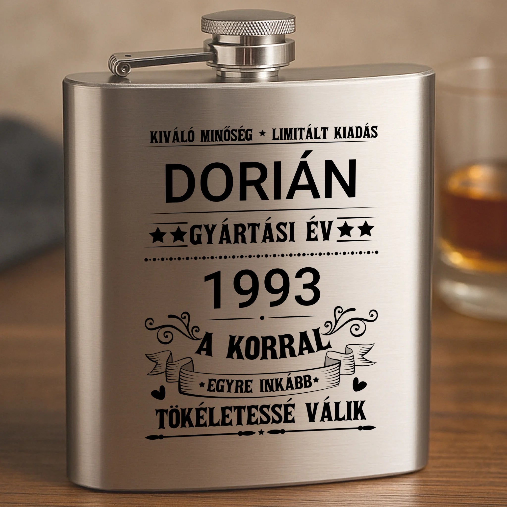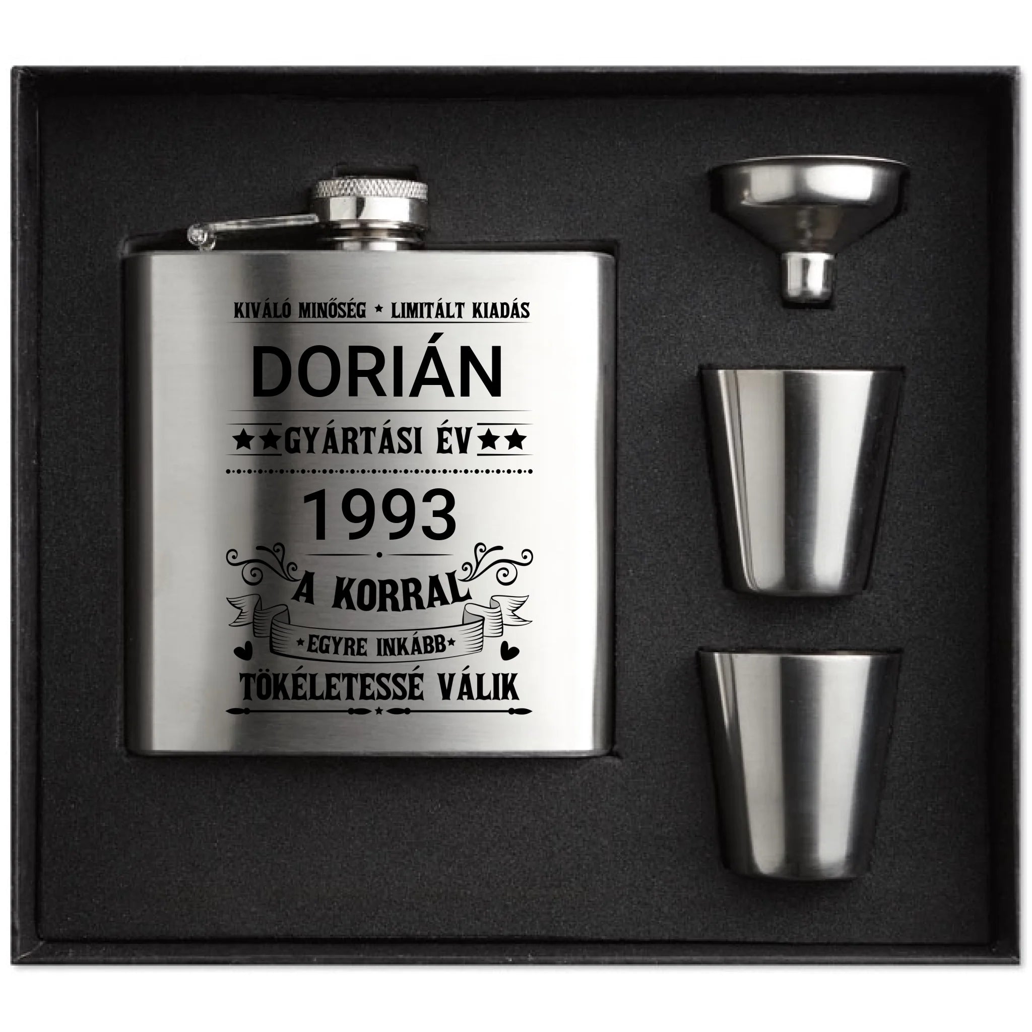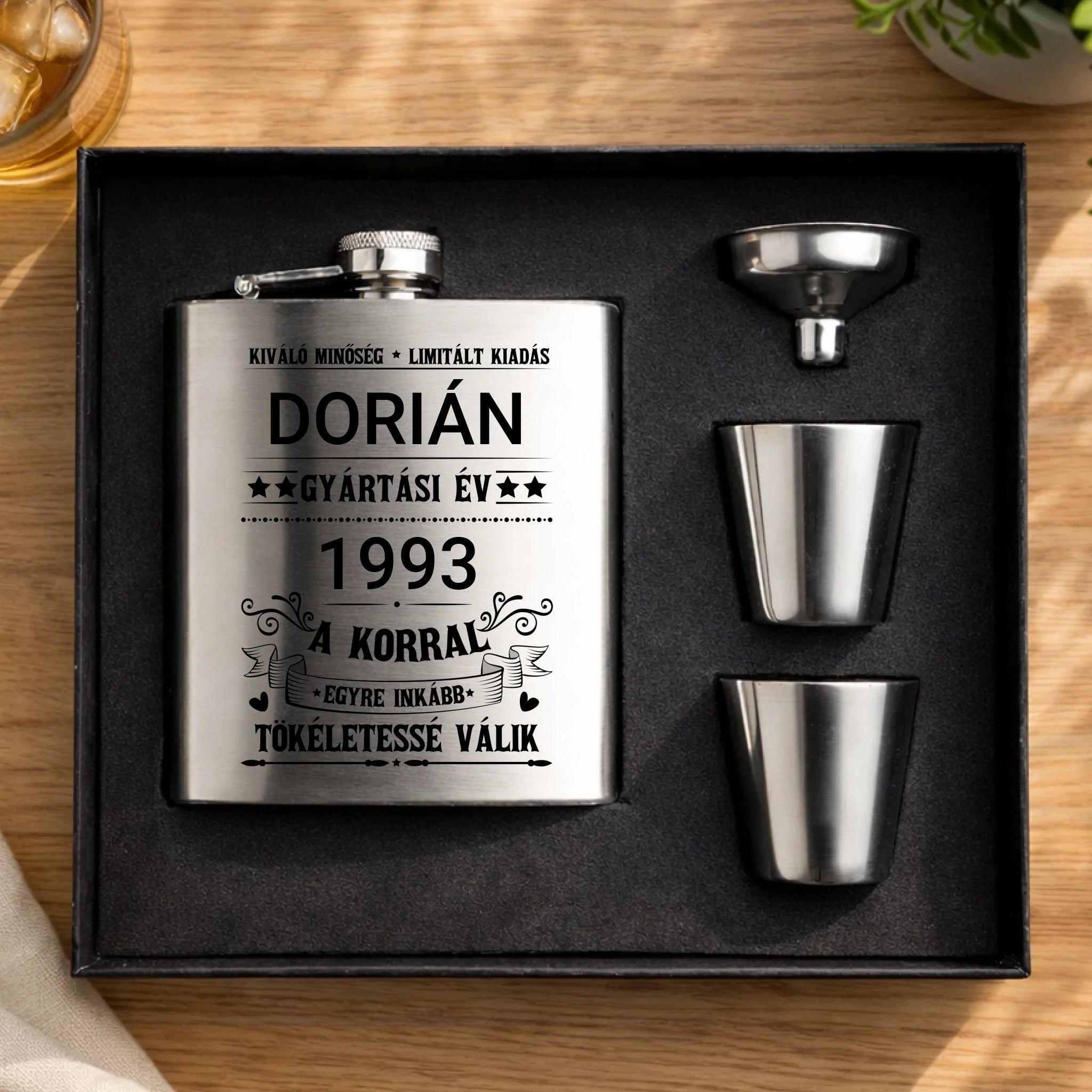 "Limitált kiadás" - egyedi gravírozott flaska szett születésnapra névvel és évszámmal