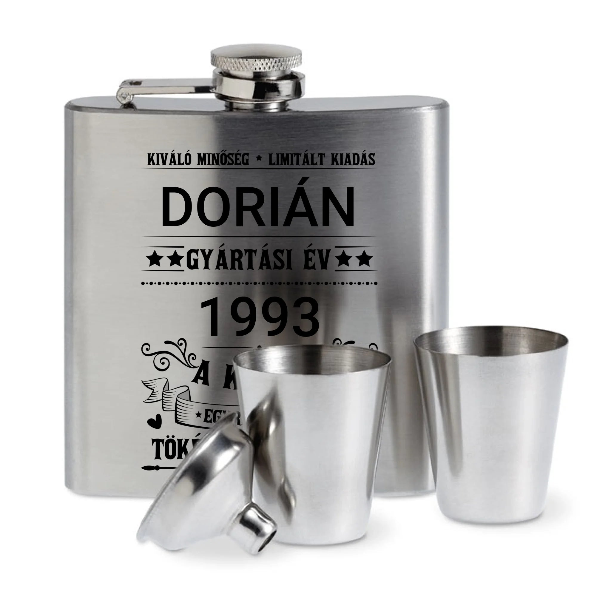 Stílusos, praktikus és személyre szabható – ez a gravírozott flaska szett minden alkalomra tökéletes ajándék! Legyen szó születésnapról, évfordulóról, legénybúcsúról vagy céges ajándékról, ez a kis elegáns kiegészítő garantáltan örömet okoz.