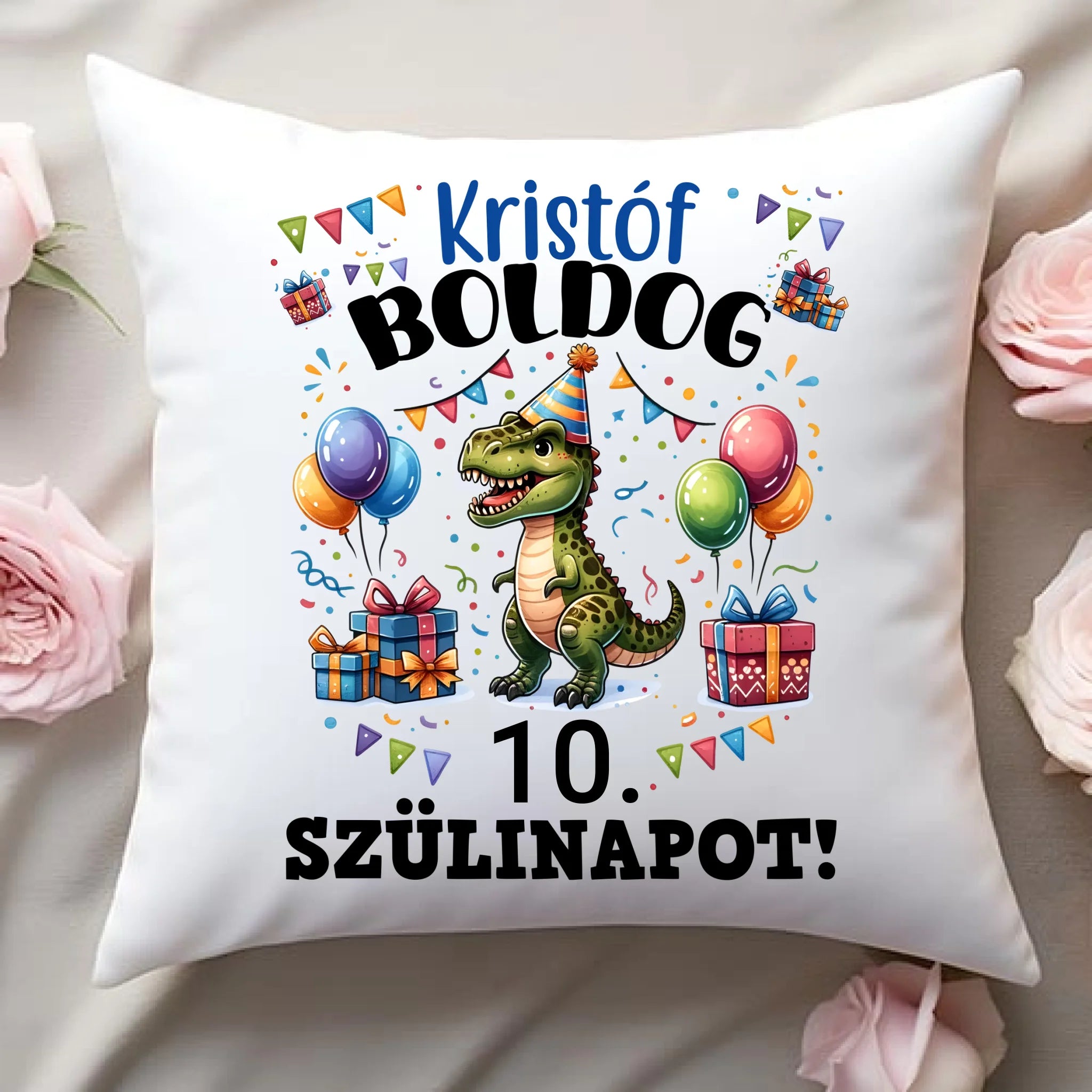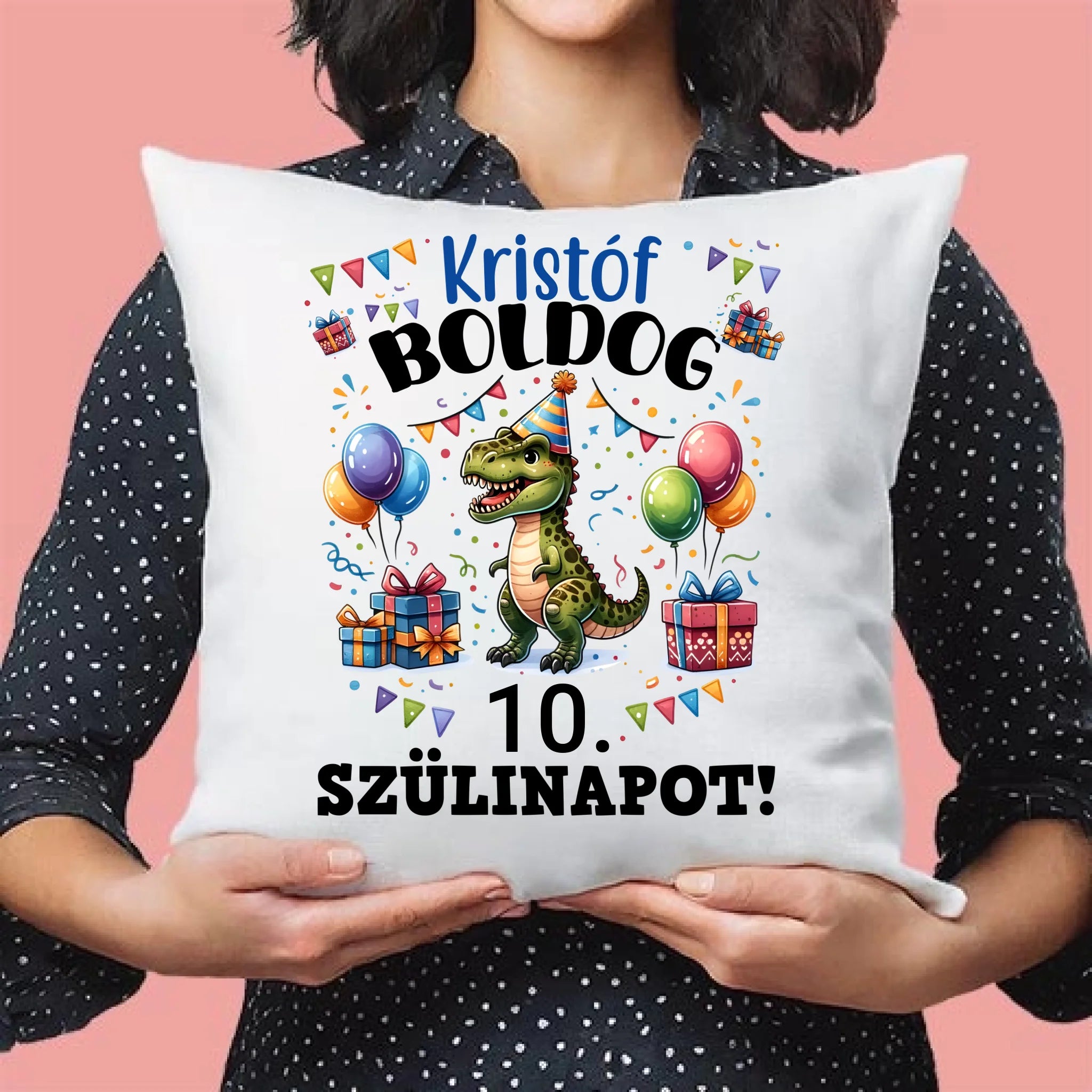 A szülinapi dinós párna egyedi névvel tökéletes ajándék a kis szülinaposok részére!