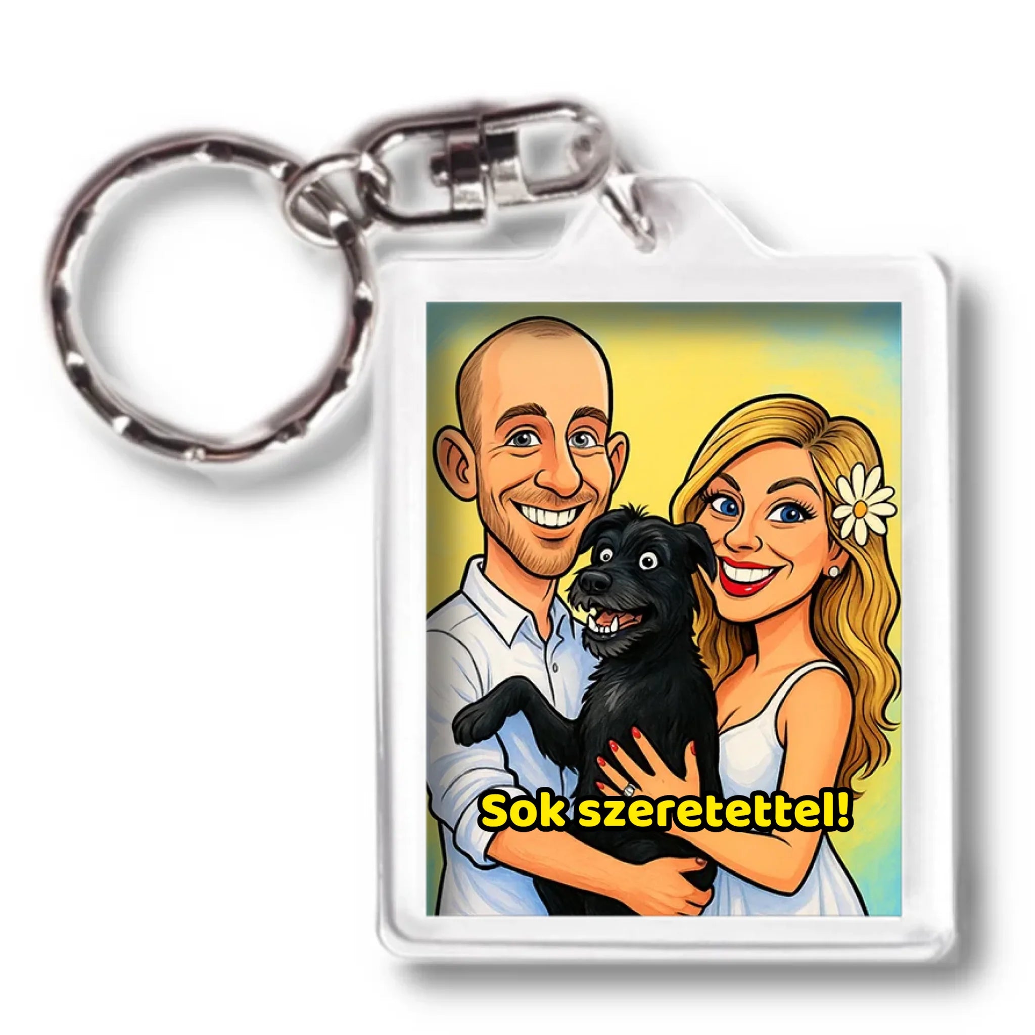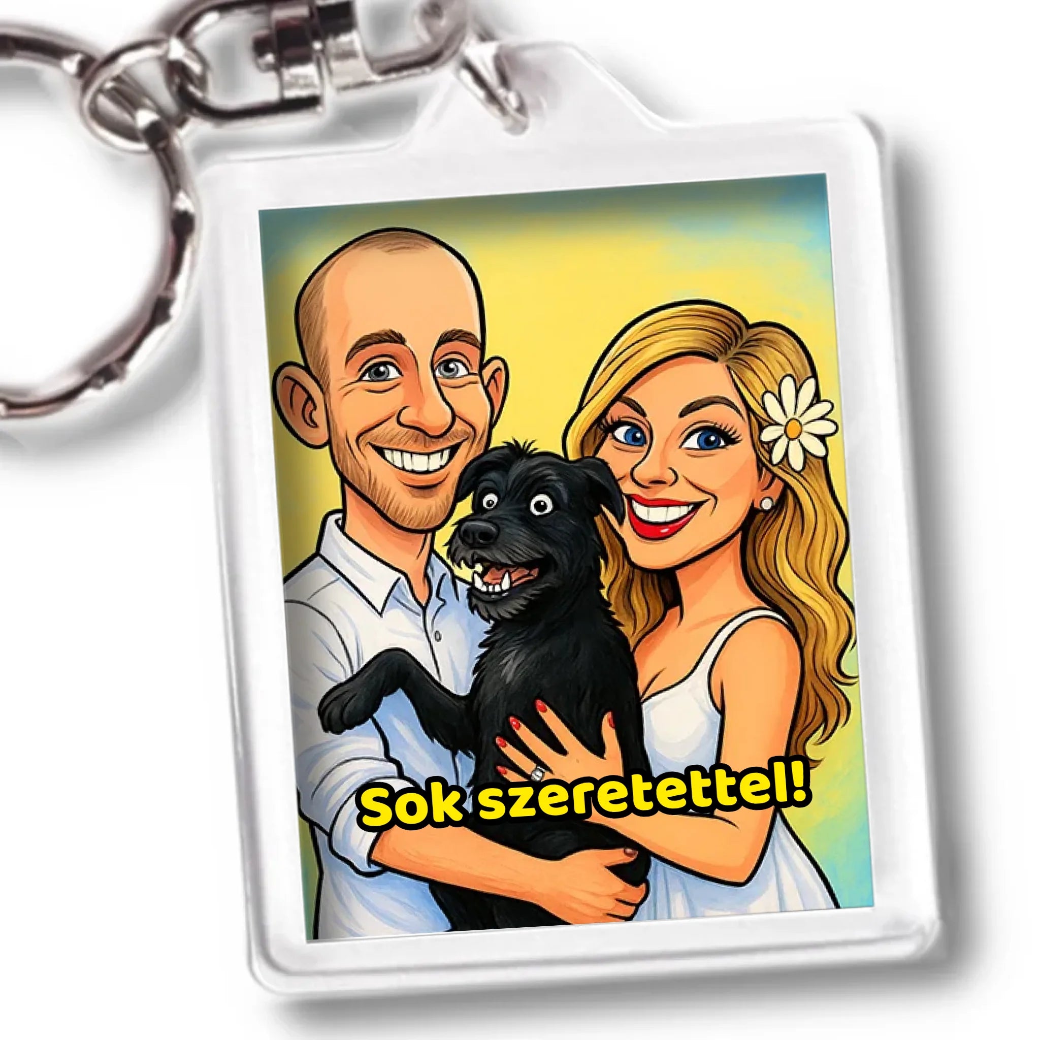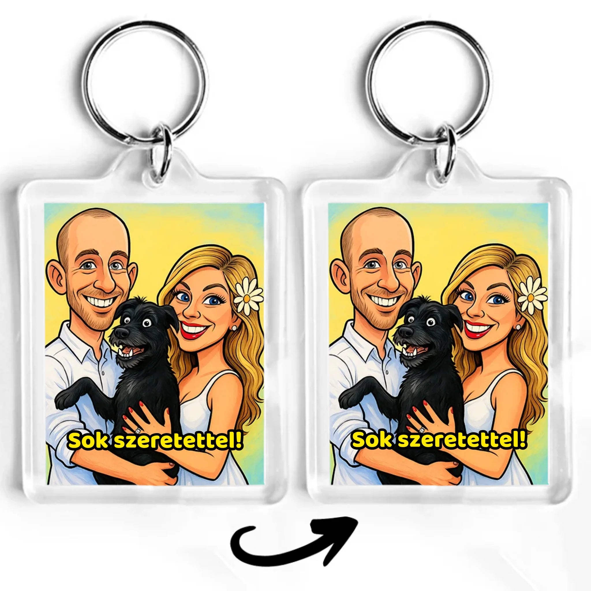 Könnyű, tartós kulcstartó személyre szabott karikatúrával. Mindennapi kis ajándék, nagy meglepetéssel.