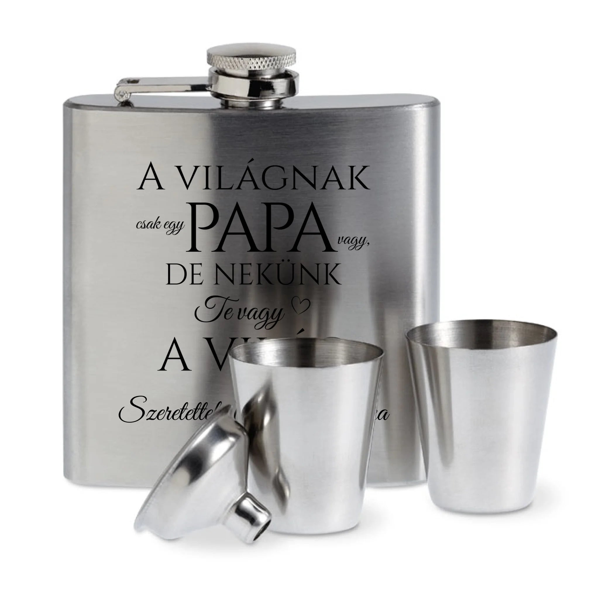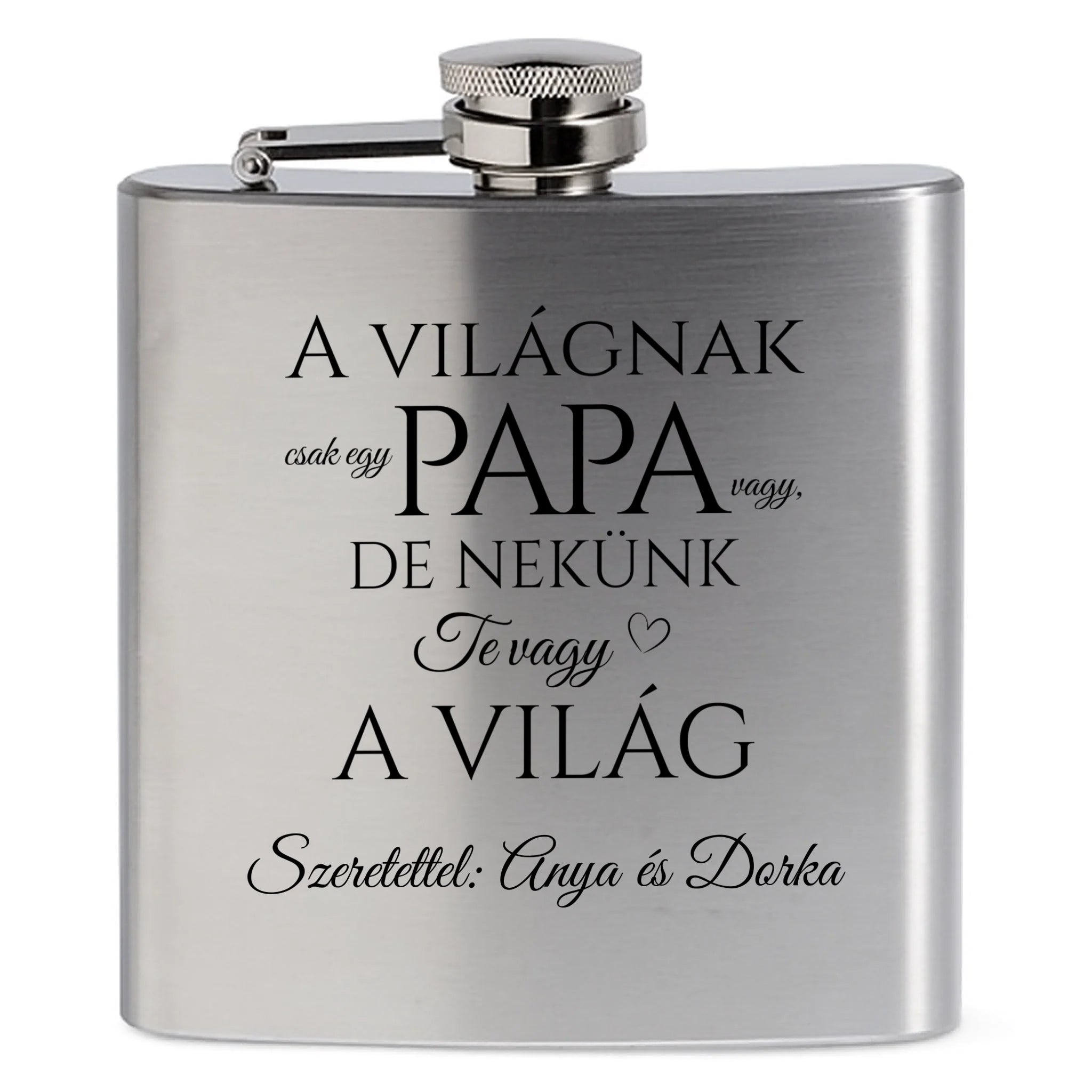 A világnak csak egy papa vagy, de nekünk te vagy a világ - egyedi gravírozott flaska szett