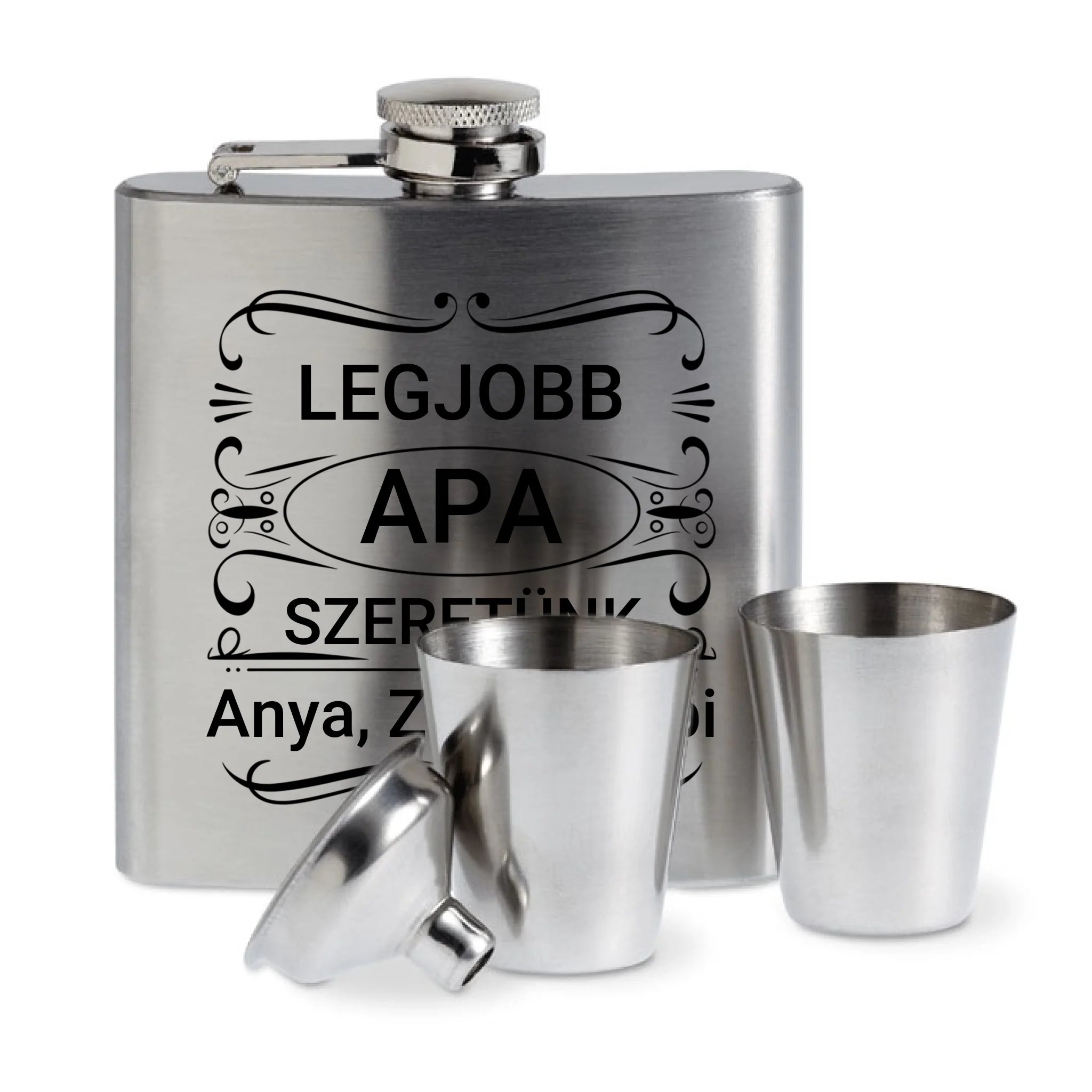 Stílusos, praktikus és személyre szabható – ez a gravírozott flaska szett minden alkalomra tökéletes ajándék! Legyen szó születésnapról, évfordulóról, legénybúcsúról vagy céges ajándékról, ez a kis elegáns kiegészítő garantáltan örömet okoz.
