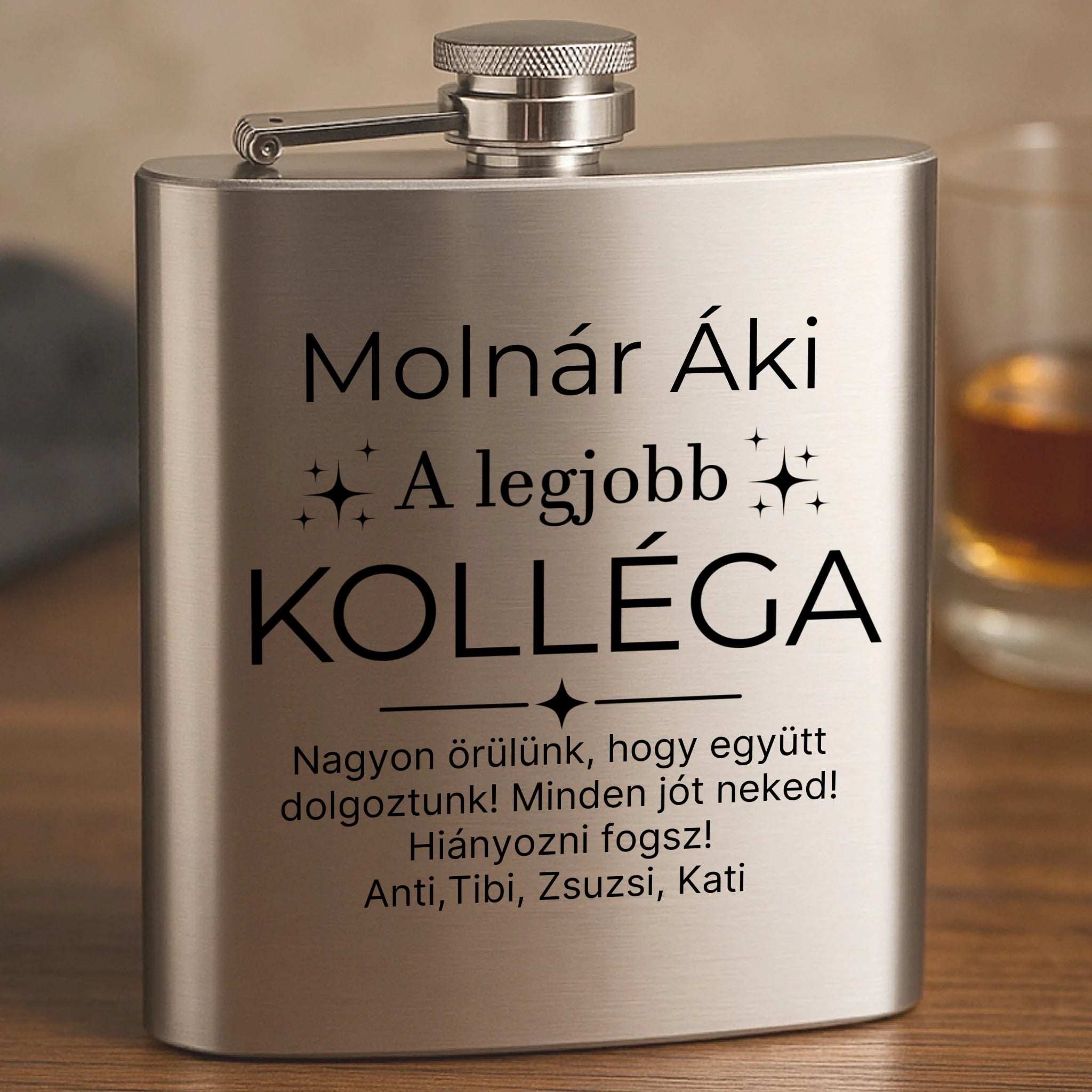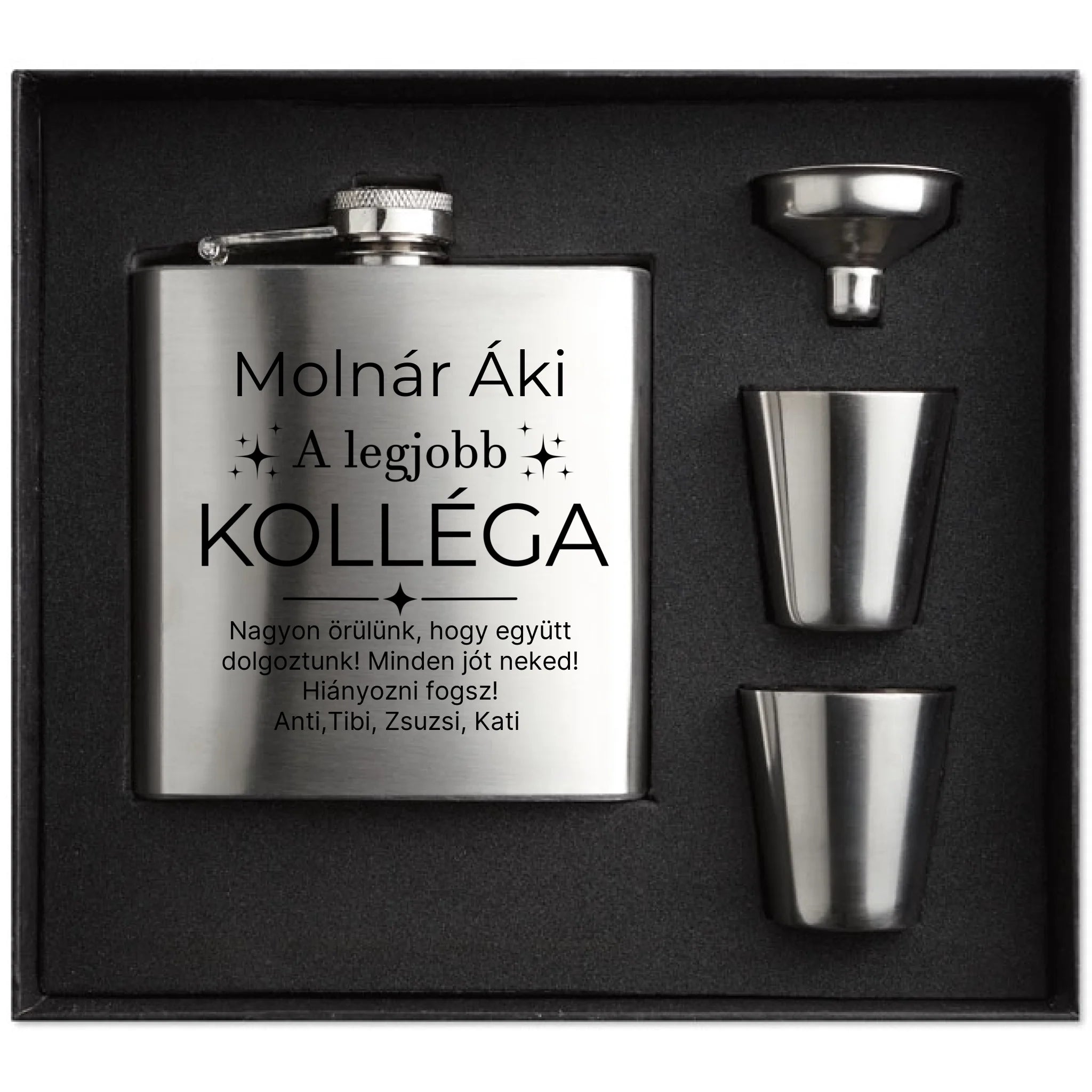 Egyedi gravírozott flaska szett névvel, a legjobb kolléga