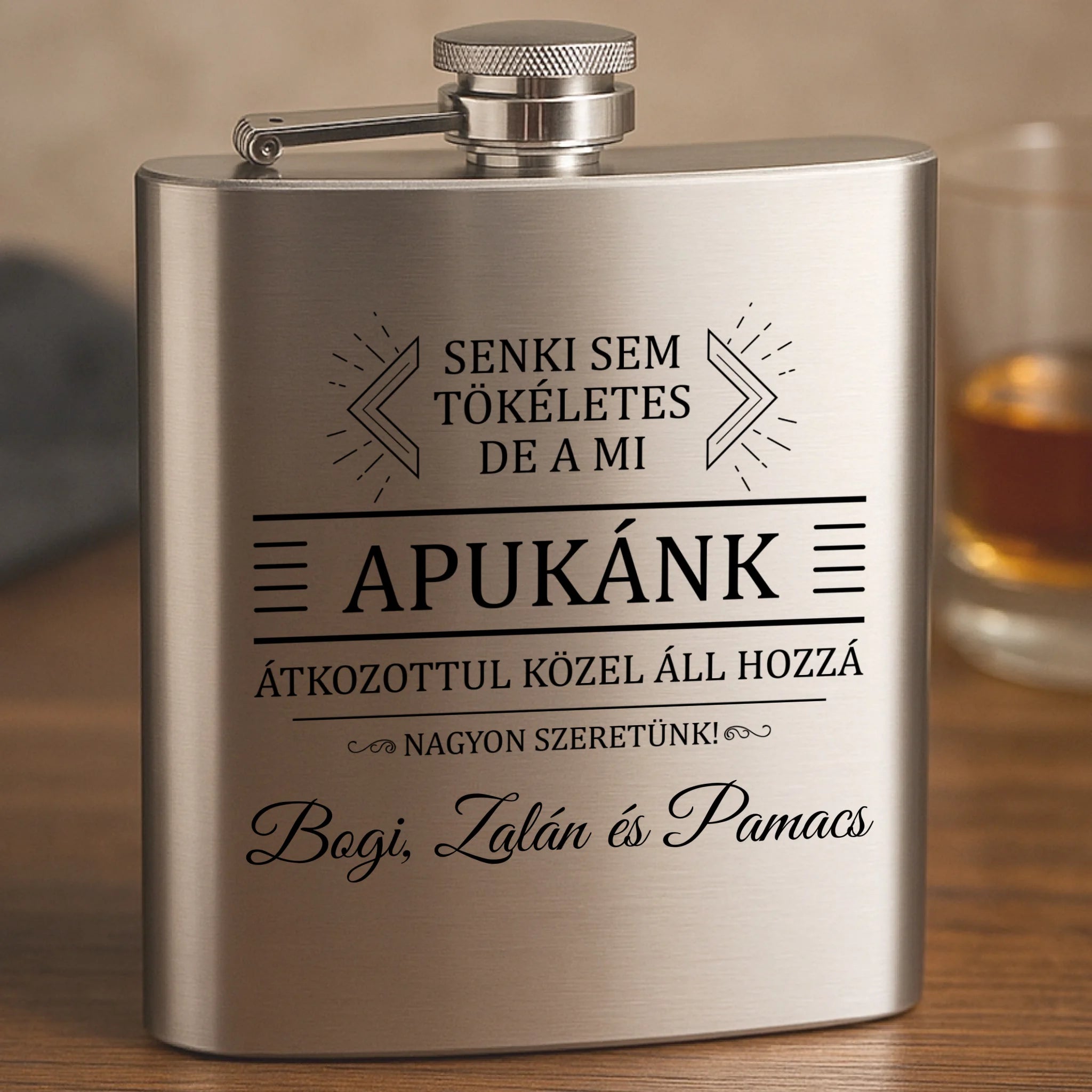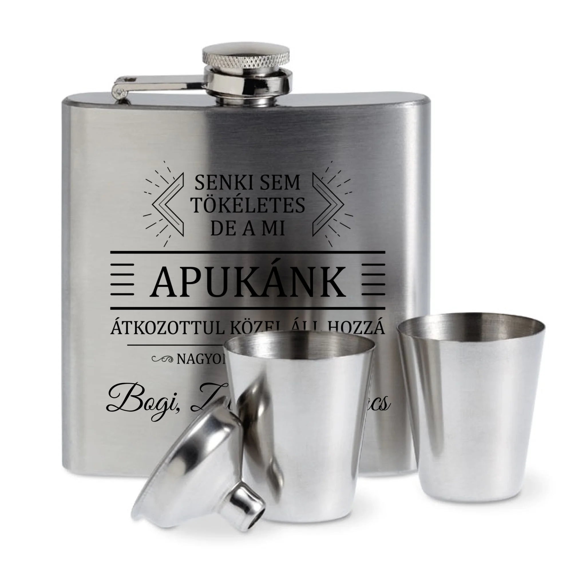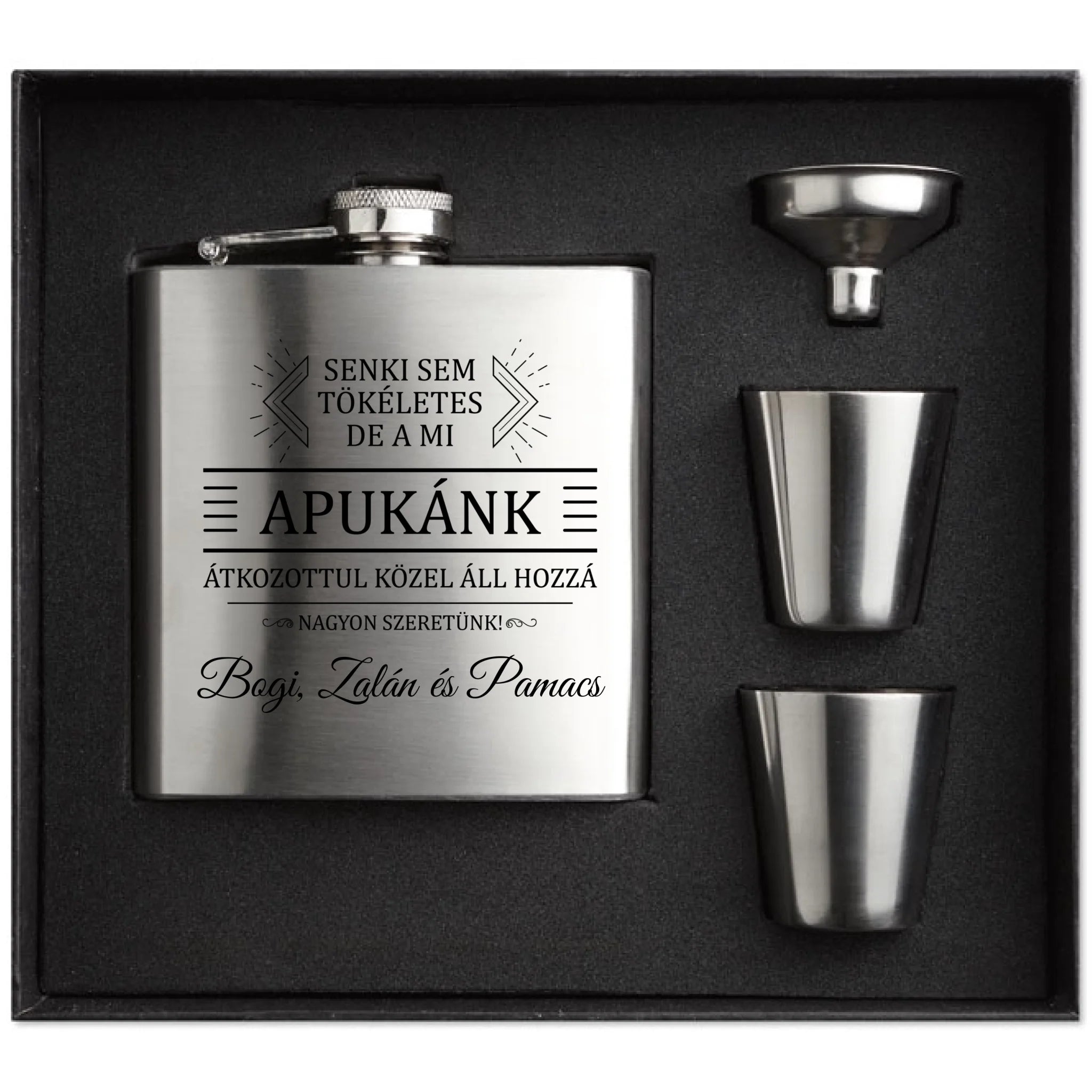 Egyedi gravírozott flaska szett - senki sem tökéletes, de apa átkozottul közel áll hozzá