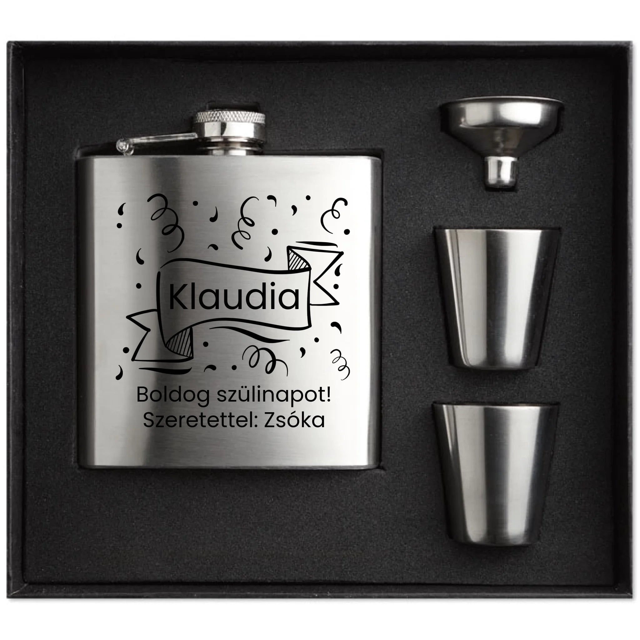 Stílusos, praktikus és személyre szabható – ez a gravírozott flaska szett minden alkalomra tökéletes ajándék! Legyen szó születésnapról, évfordulóról, legénybúcsúról vagy céges ajándékról, ez a kis elegáns kiegészítő garantáltan örömet okoz.