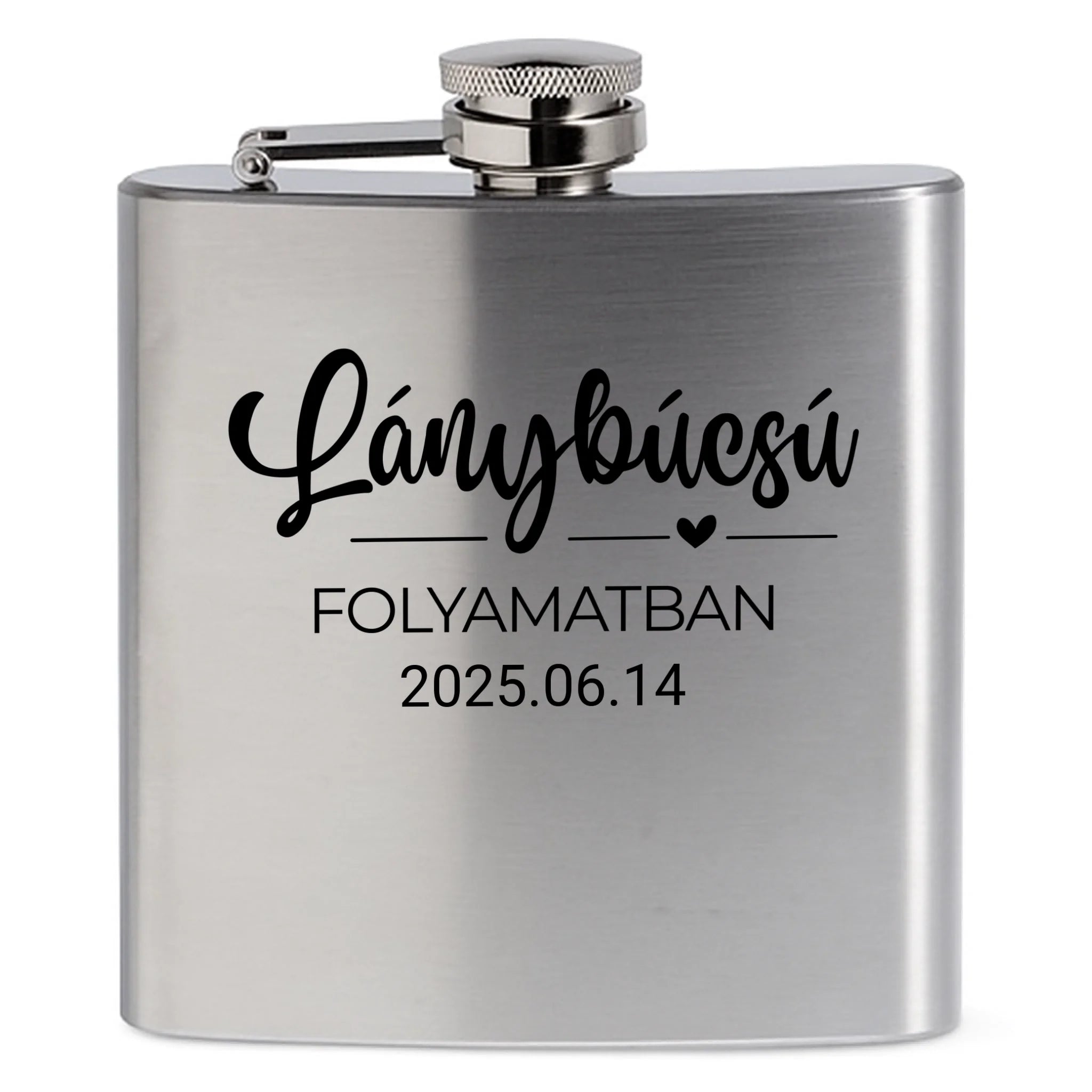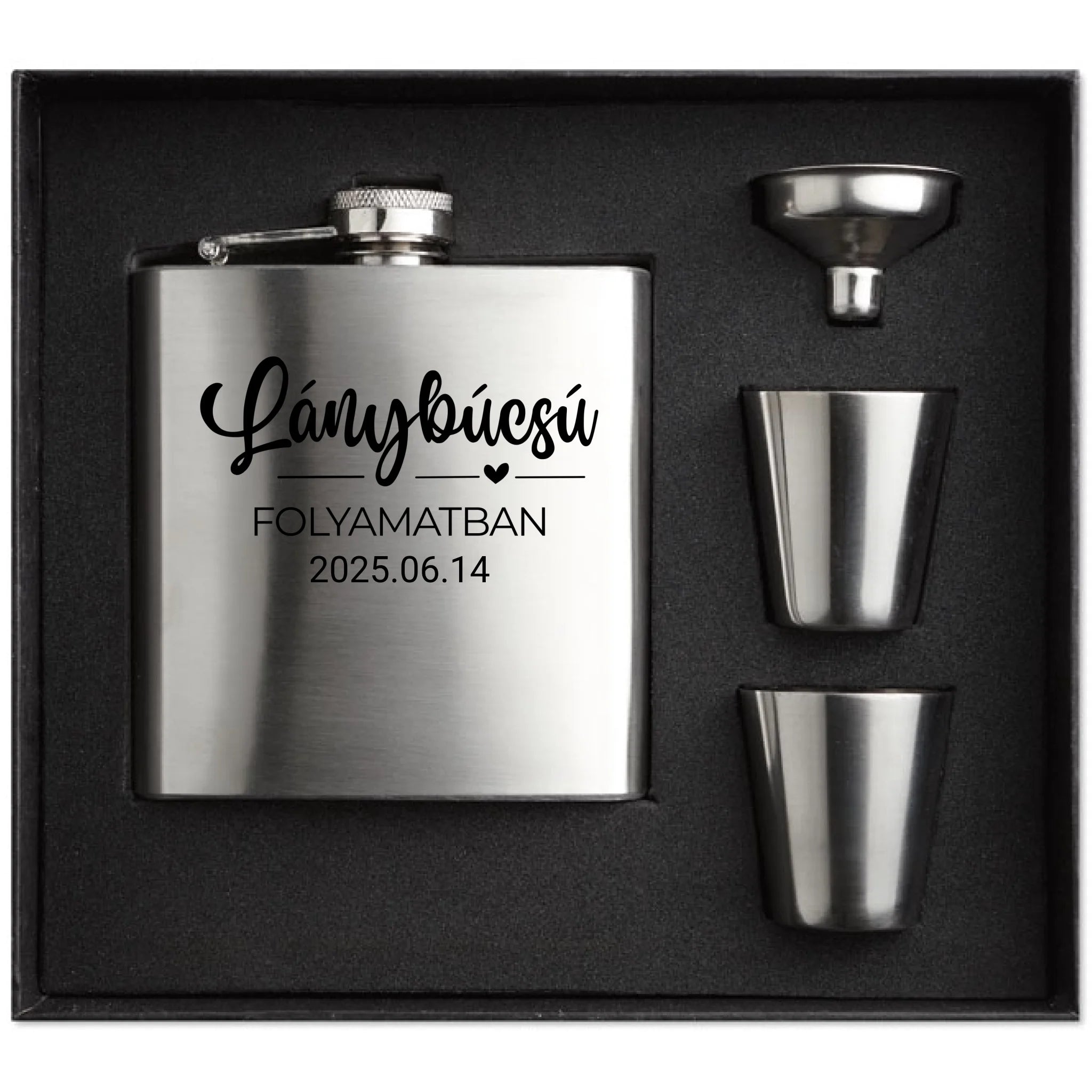 Lánybúcsú folyamatban egyedi gravírozott flaska szett