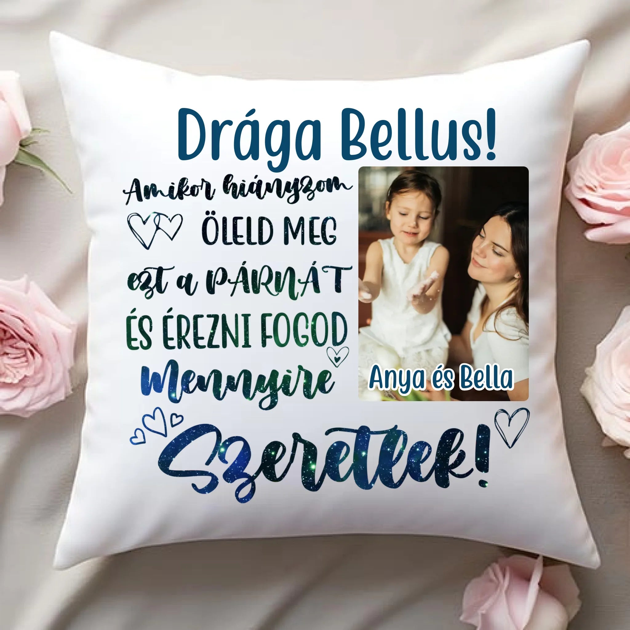 Tedd különlegessé gyermeked mindennapjait egy egyedi fényképes ölelő párnával! A párnára a kedvenc fotója kerülhet – szülő, testvér, házikedvenc vagy kedvenc játék –, így mindig vele lehet az, akit szeret.