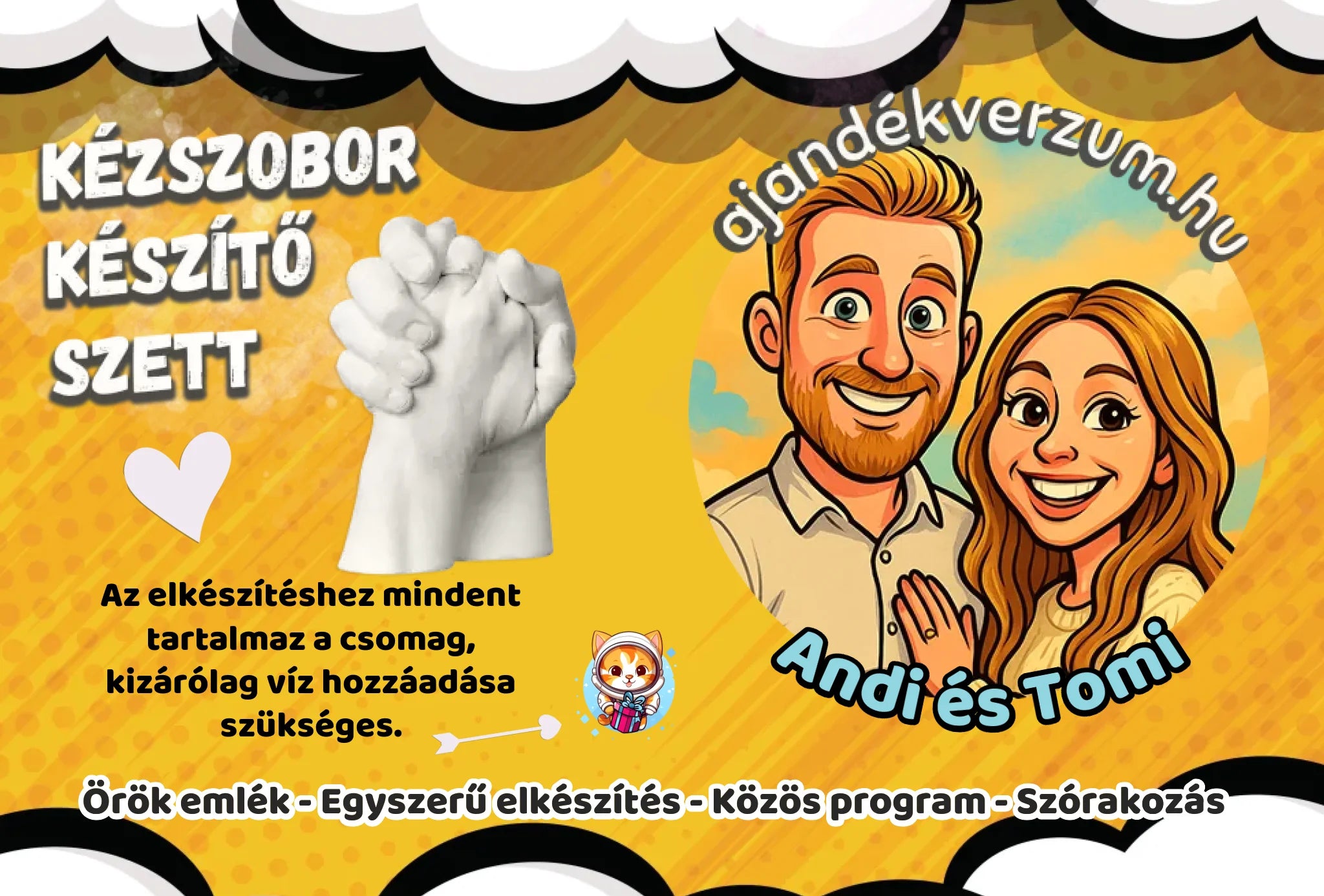 Különleges kézszobor készítő készlet pároknak, saját fotóból készült karikatúrás csomagolással. Szuper romantikus ajándék, maradandó emlék.