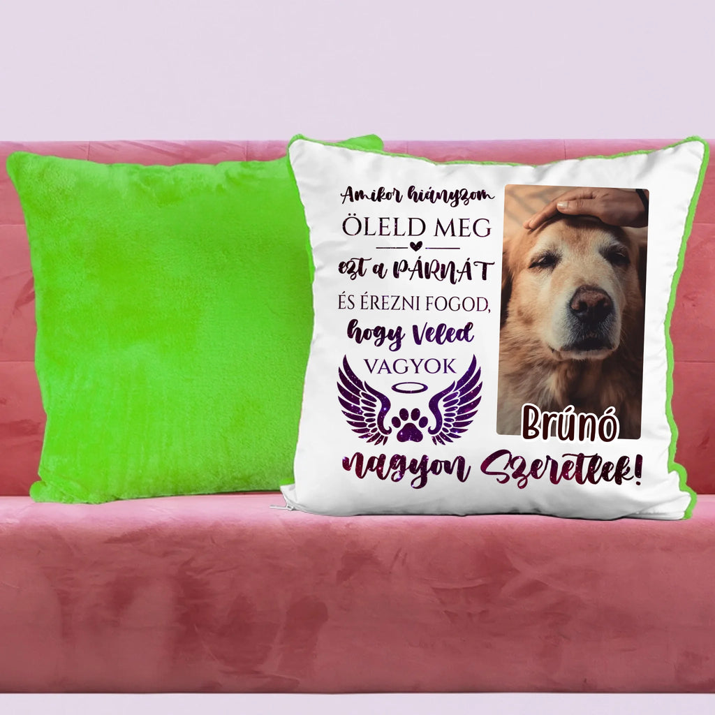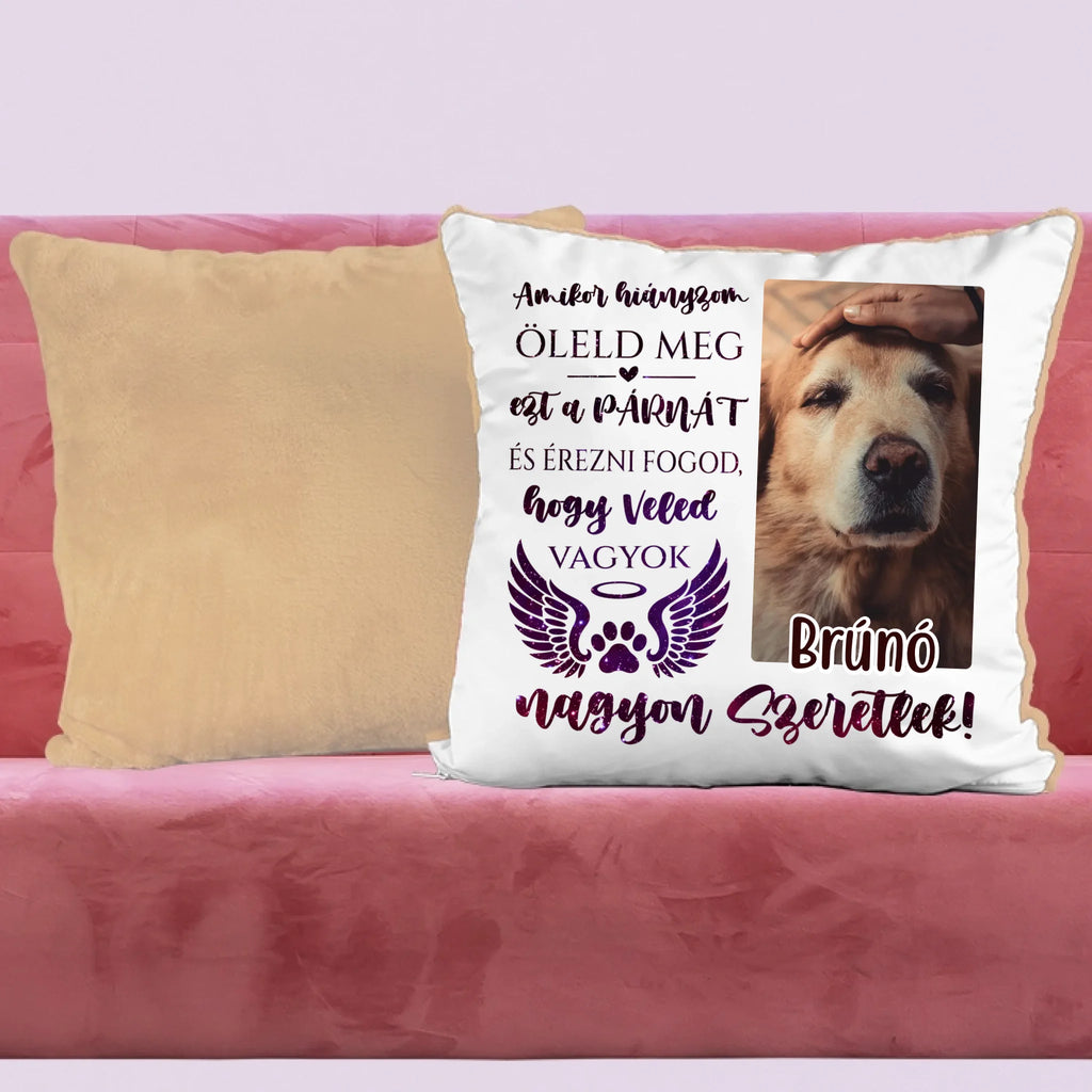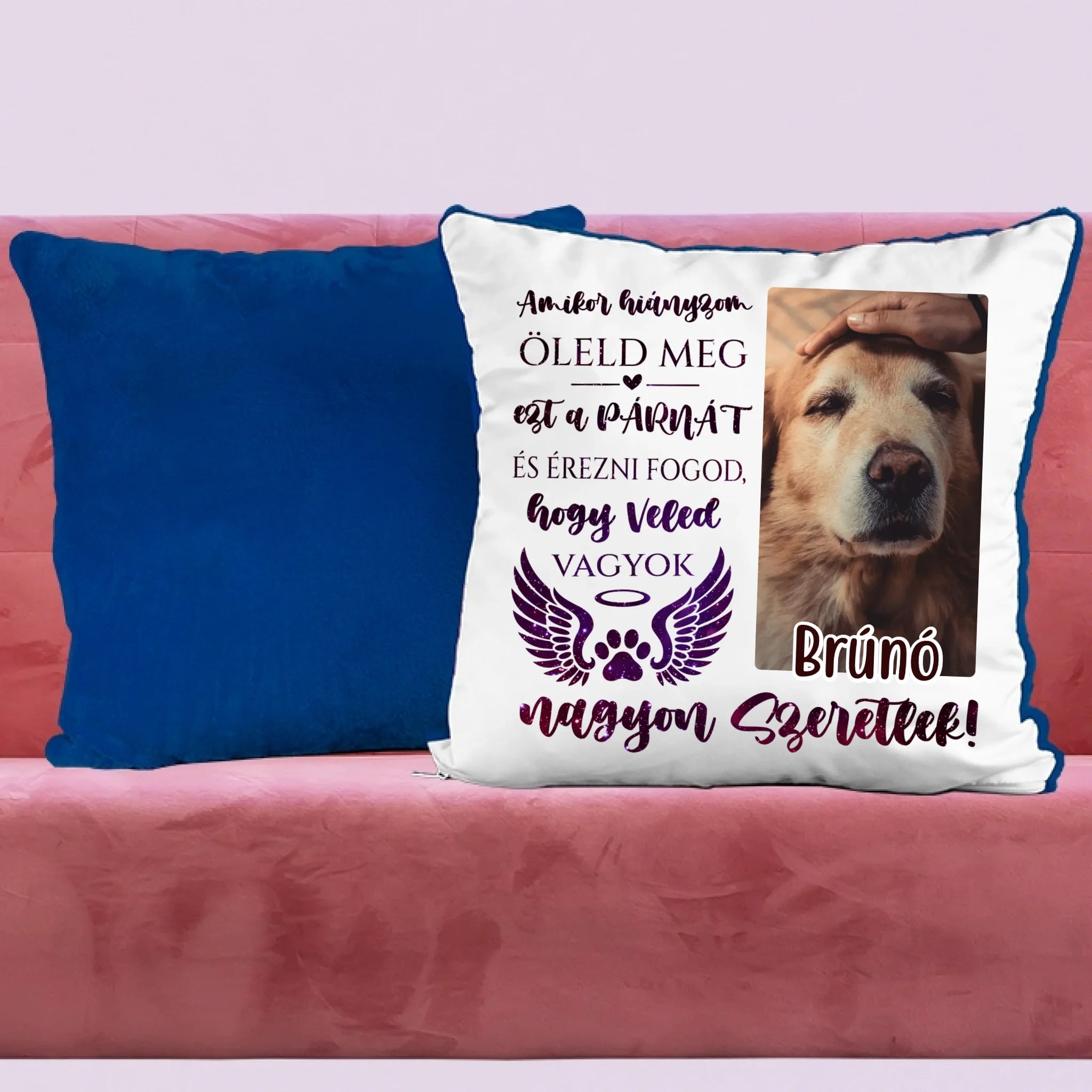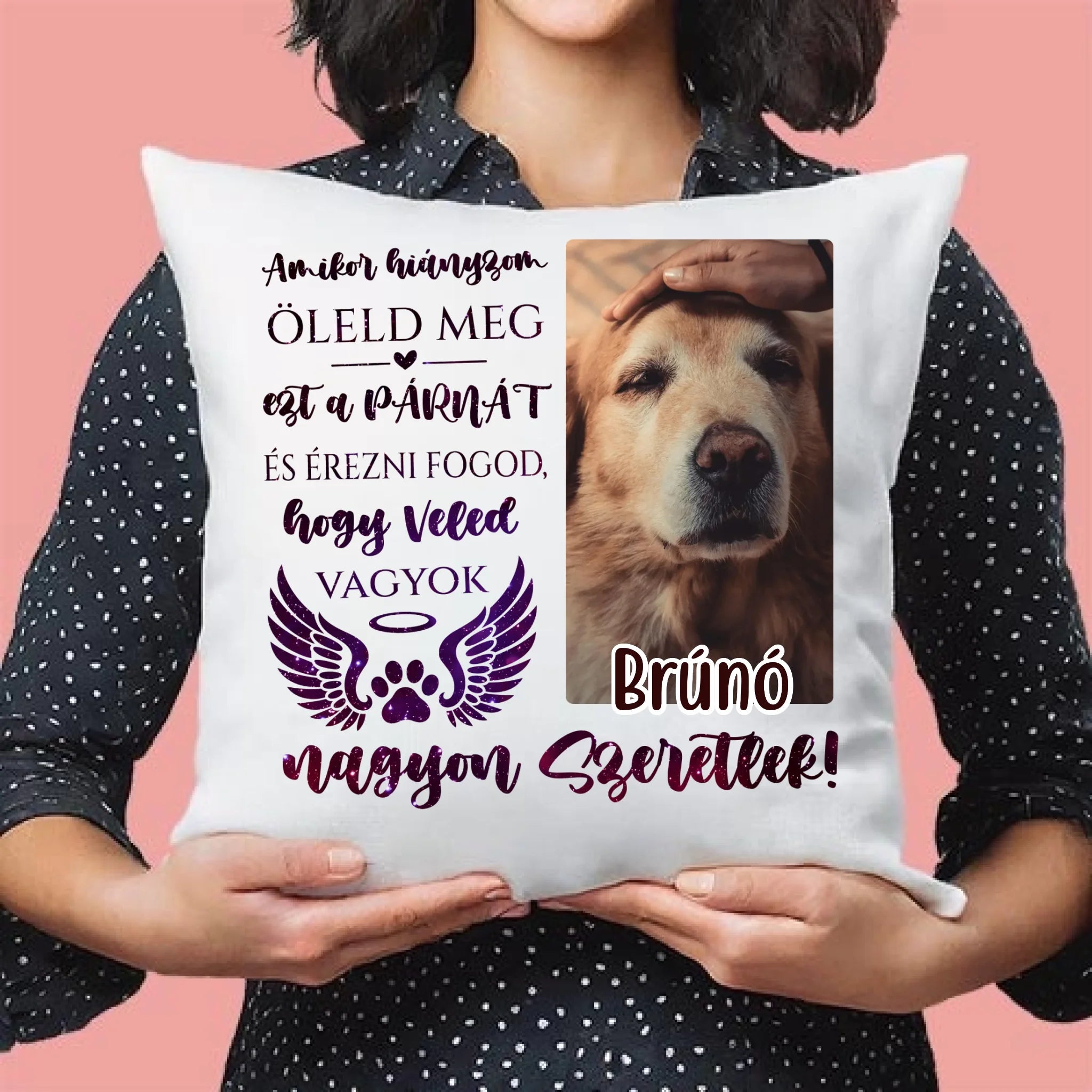 Ez az egyedi fényképes emlékőrző ölelő párna gazdiknak segít megőrizni a legszebb pillanatokat kutyádról vagy cicádról. Töltsd fel kedvenced képét, és mi szeretettel elkészítjük a párnát, hogy nap mint nap hozzábújhass.
