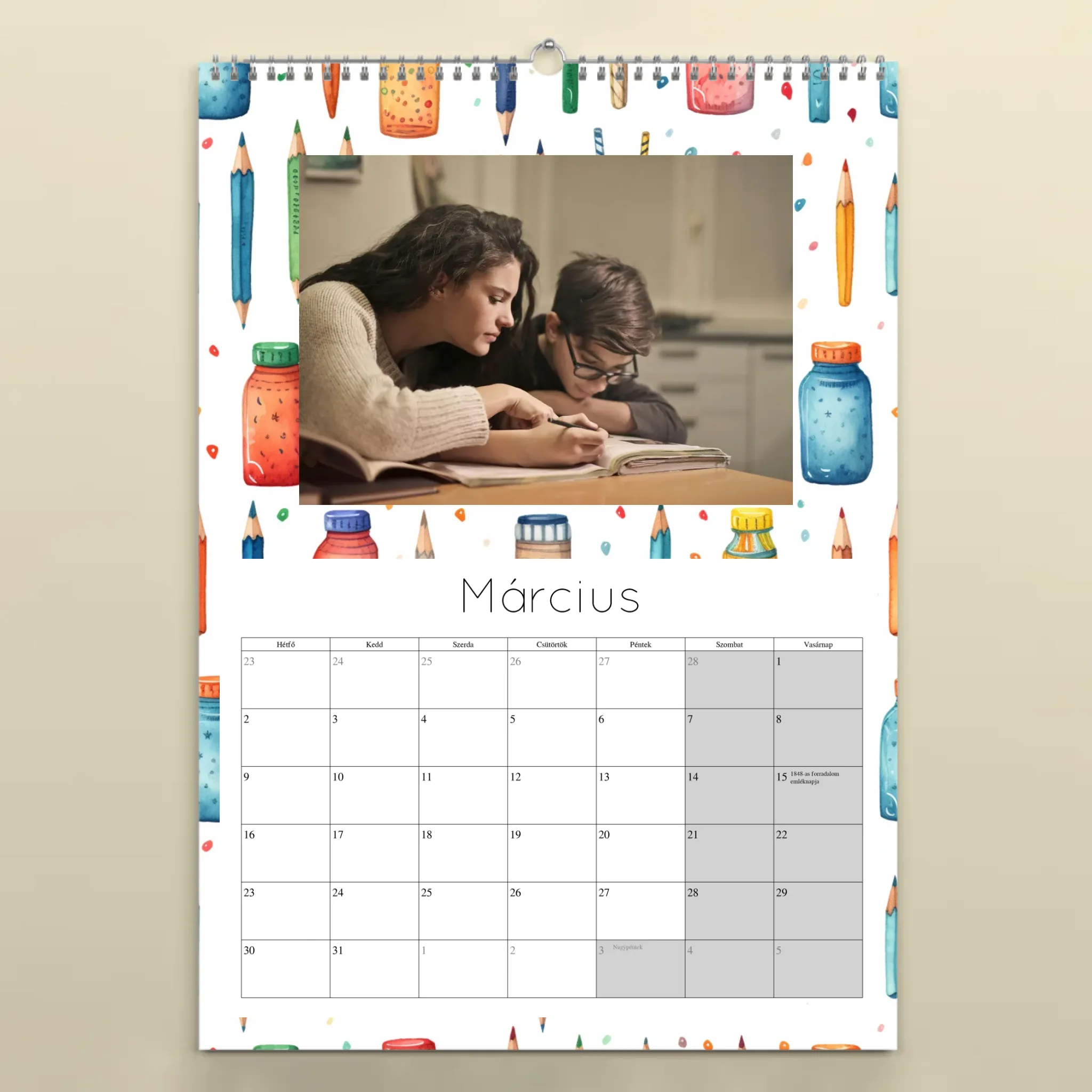Egyedi fényképes falinaptár tanároknak 2026 - jegyzetelős