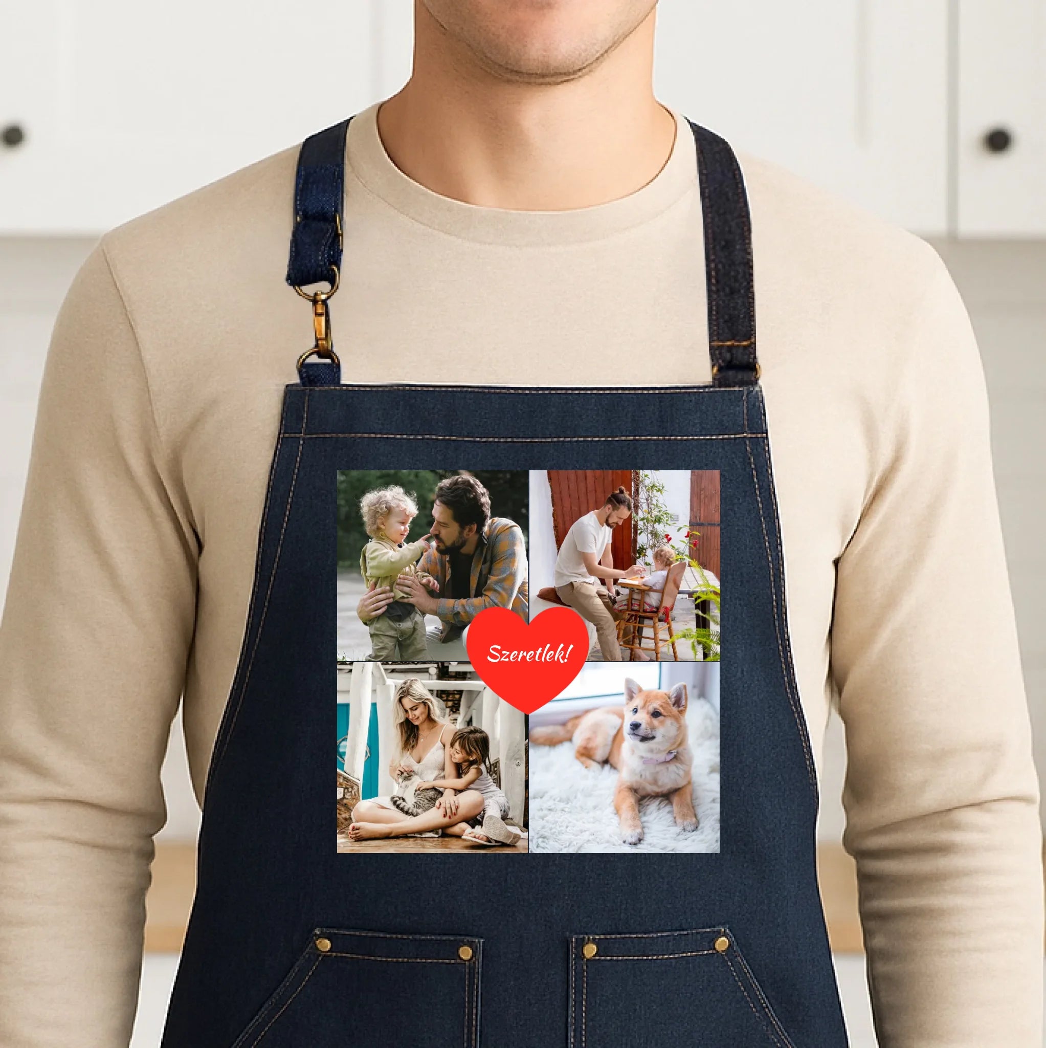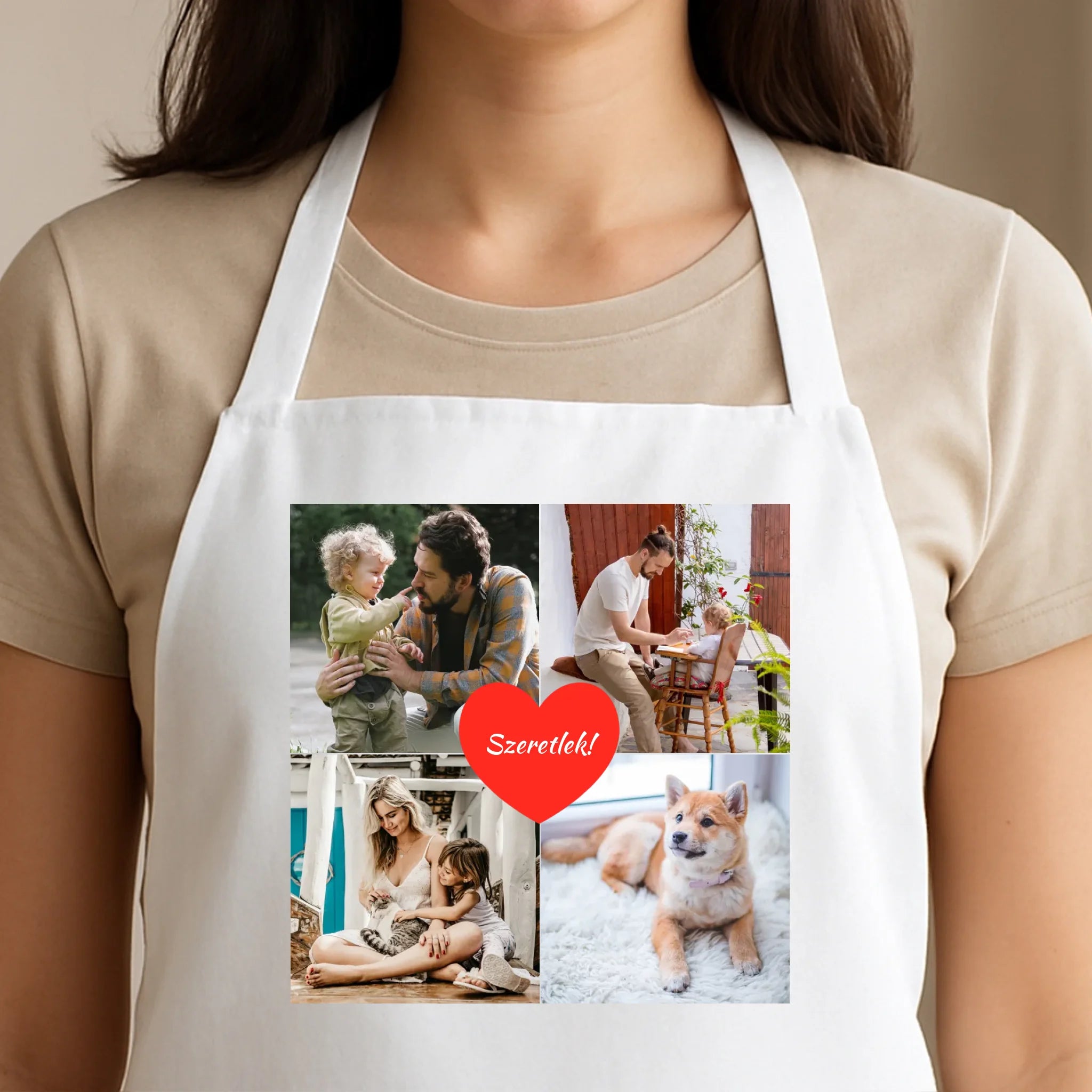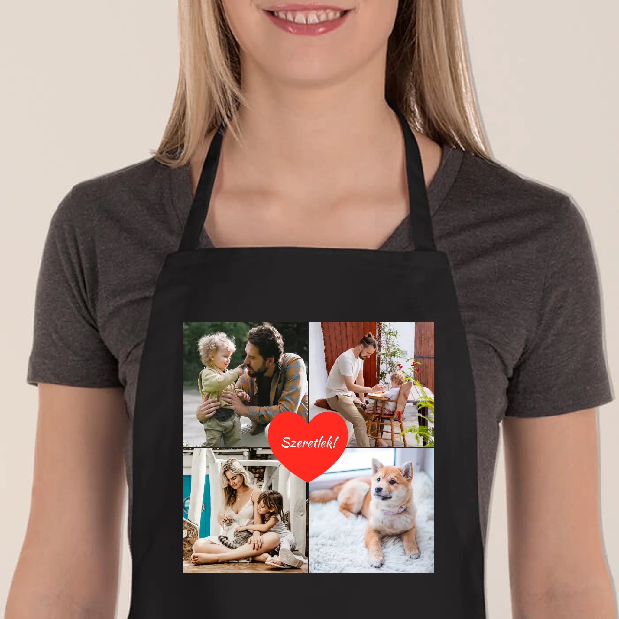 Az egyedi fényképes kötény 4 képpel és felirattal tökéletes választás, ha személyes és praktikus ajándékot keresel. Tölts fel négy kedvenc fotót, egészítsd ki egyedi felirattal, és máris kész az ajándék, amely mosolyt csal mindenki arcára.