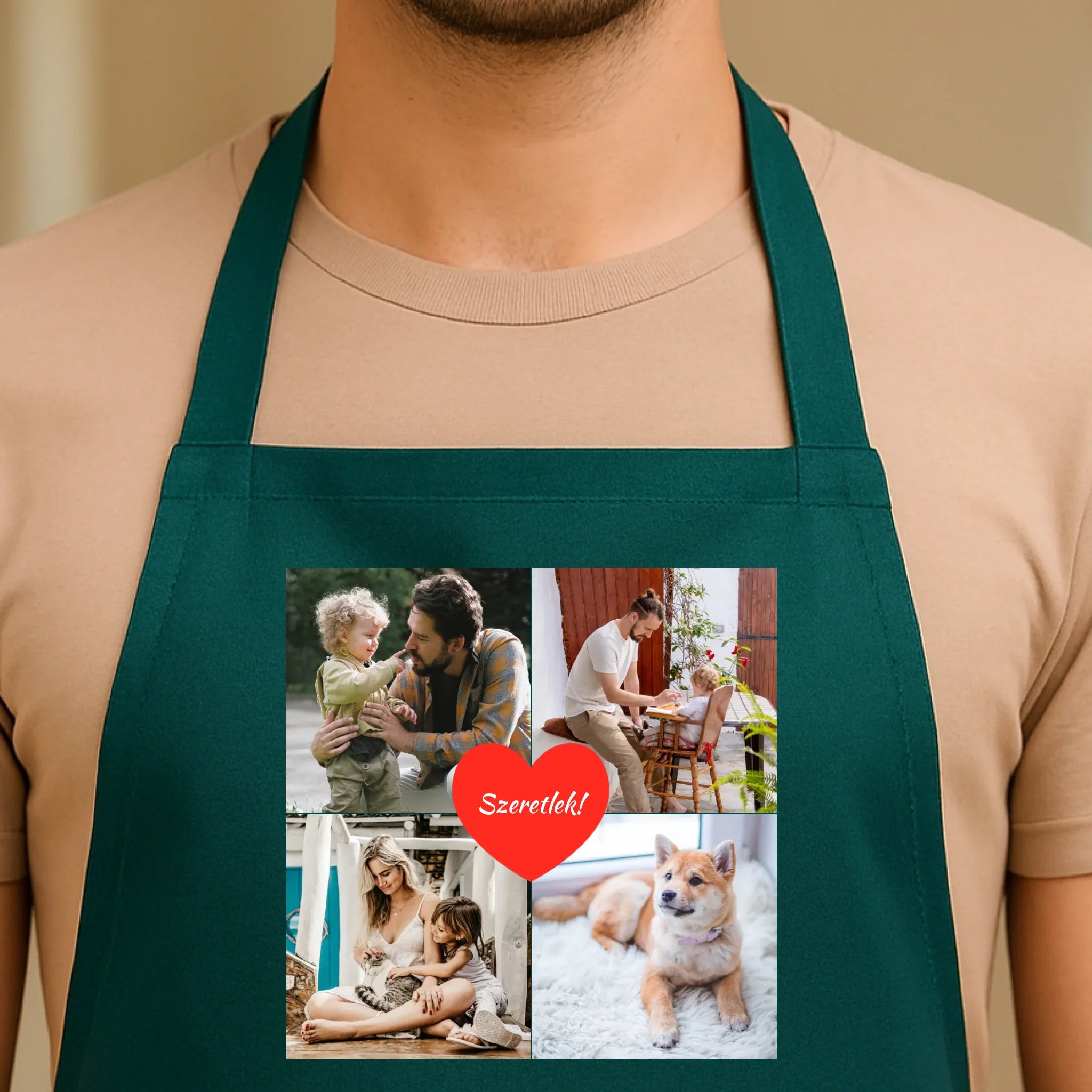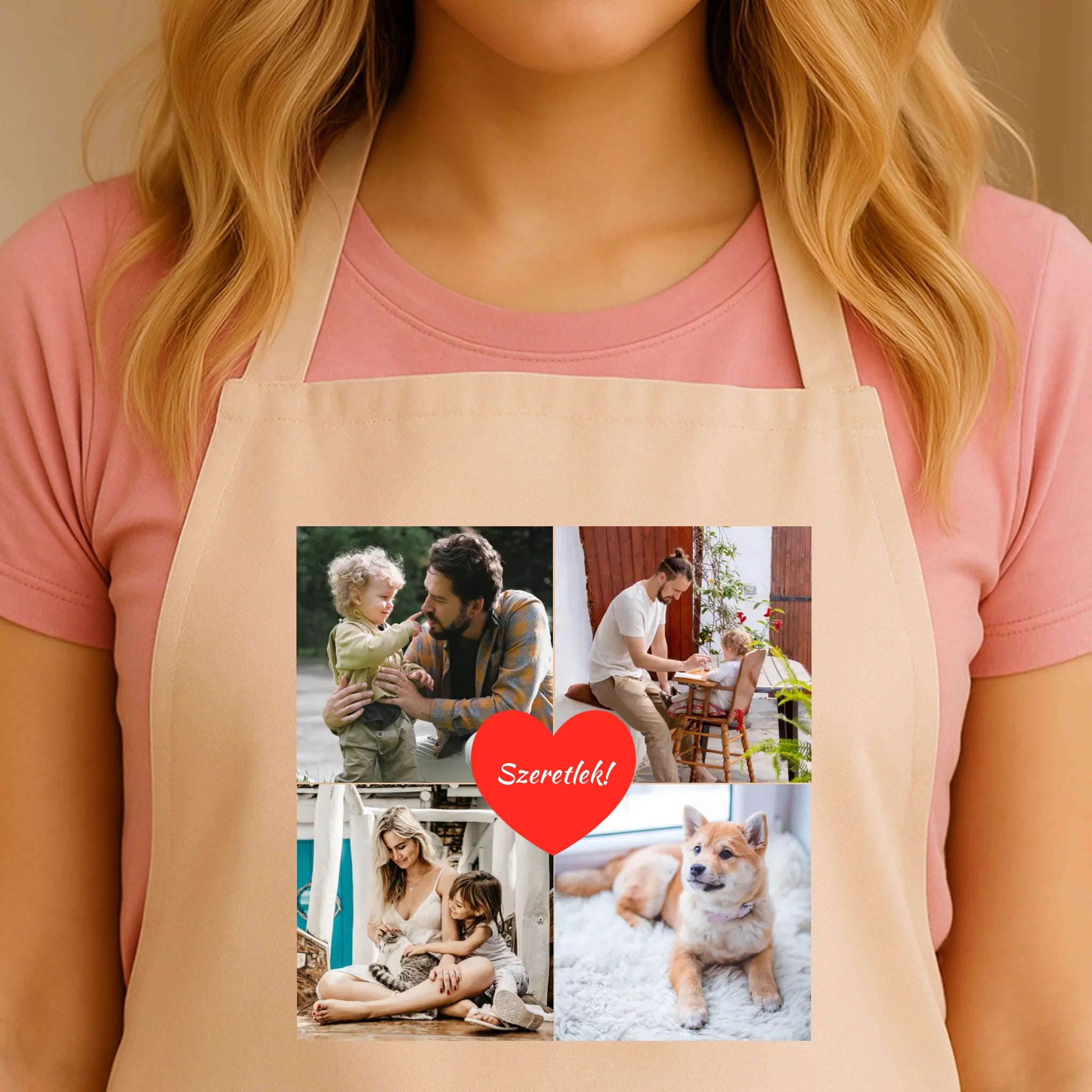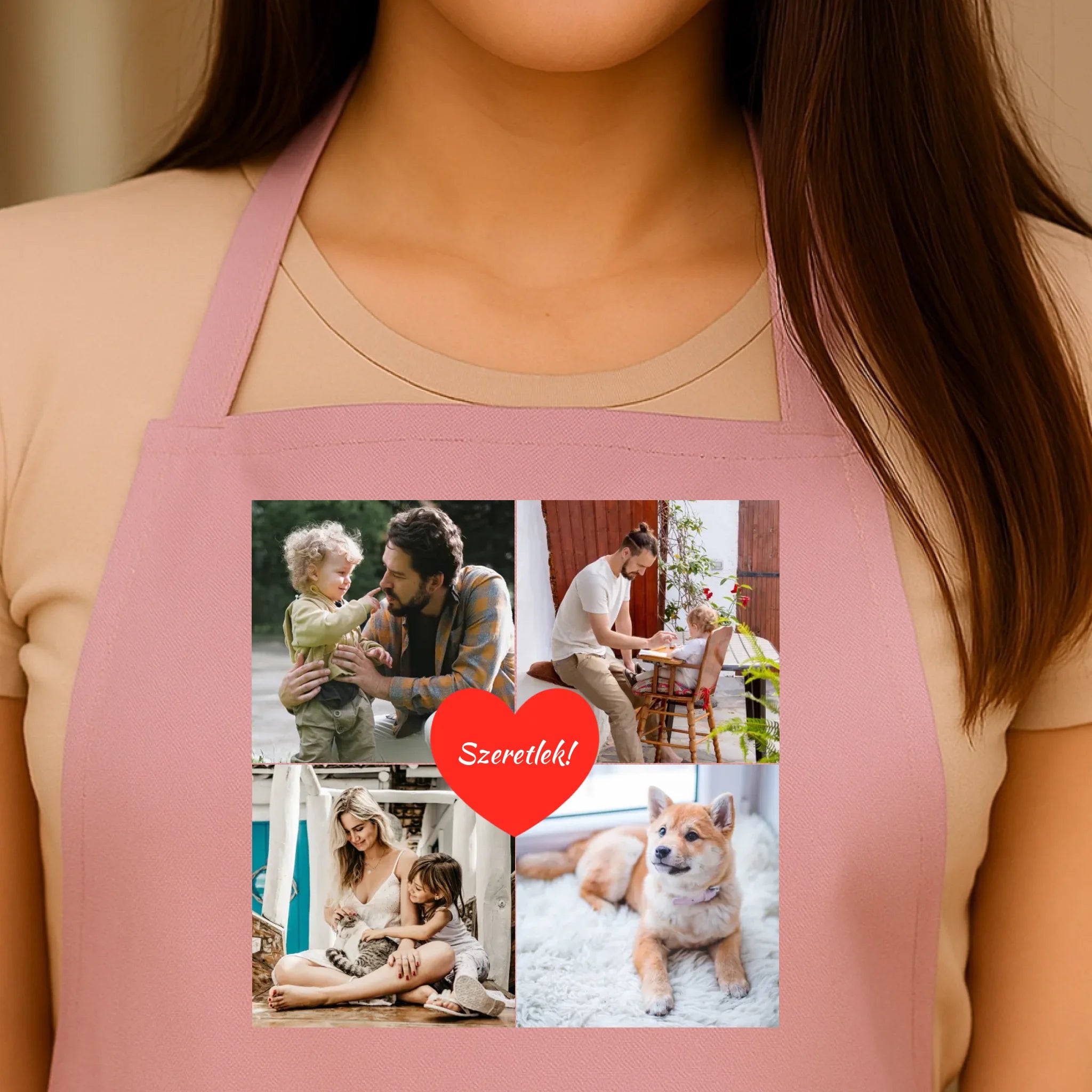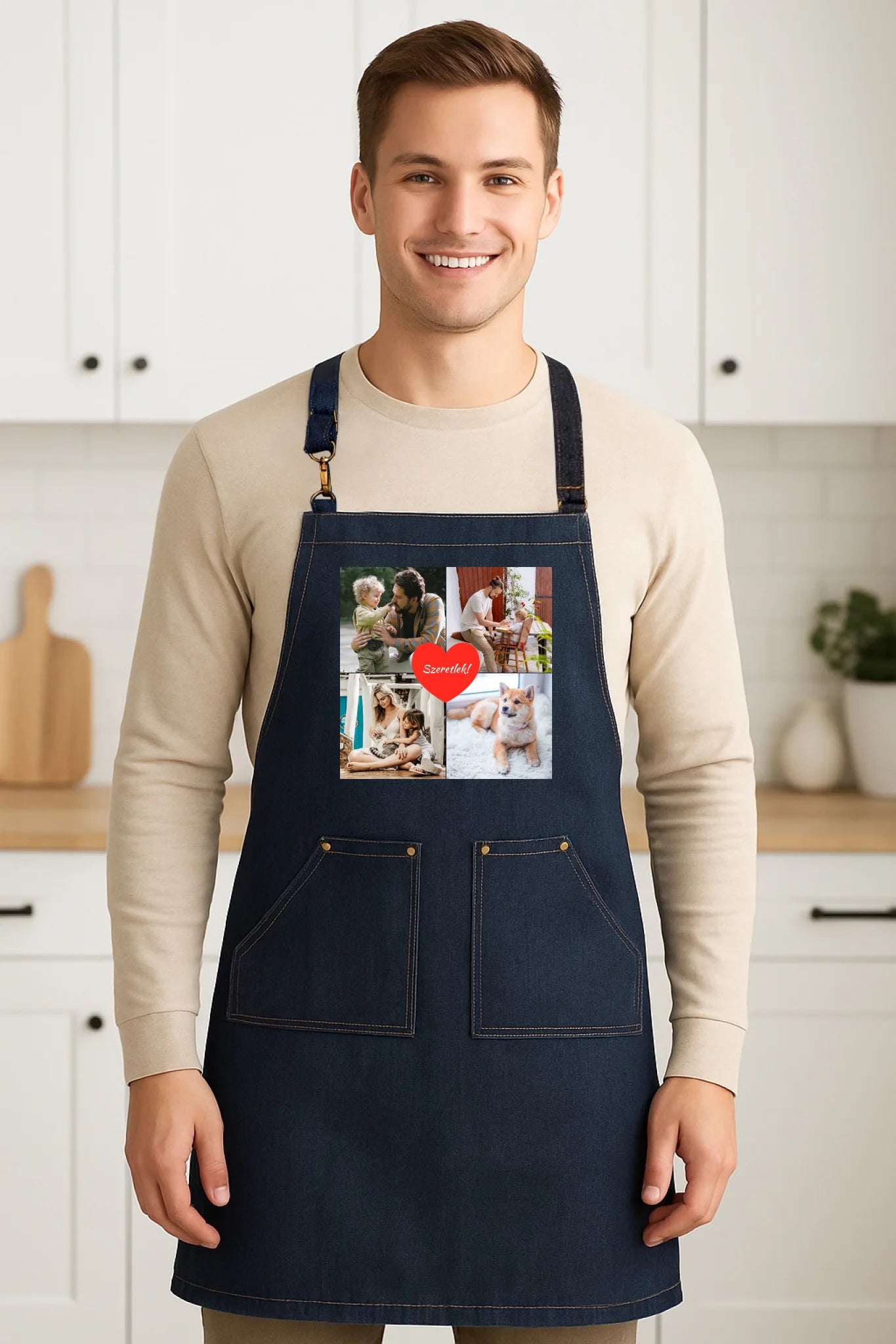 Az egyedi fényképes kötény 4 képpel és felirattal tökéletes választás, ha személyes és praktikus ajándékot keresel. Tölts fel négy kedvenc fotót, egészítsd ki egyedi felirattal, és máris kész az ajándék, amely mosolyt csal mindenki arcára.