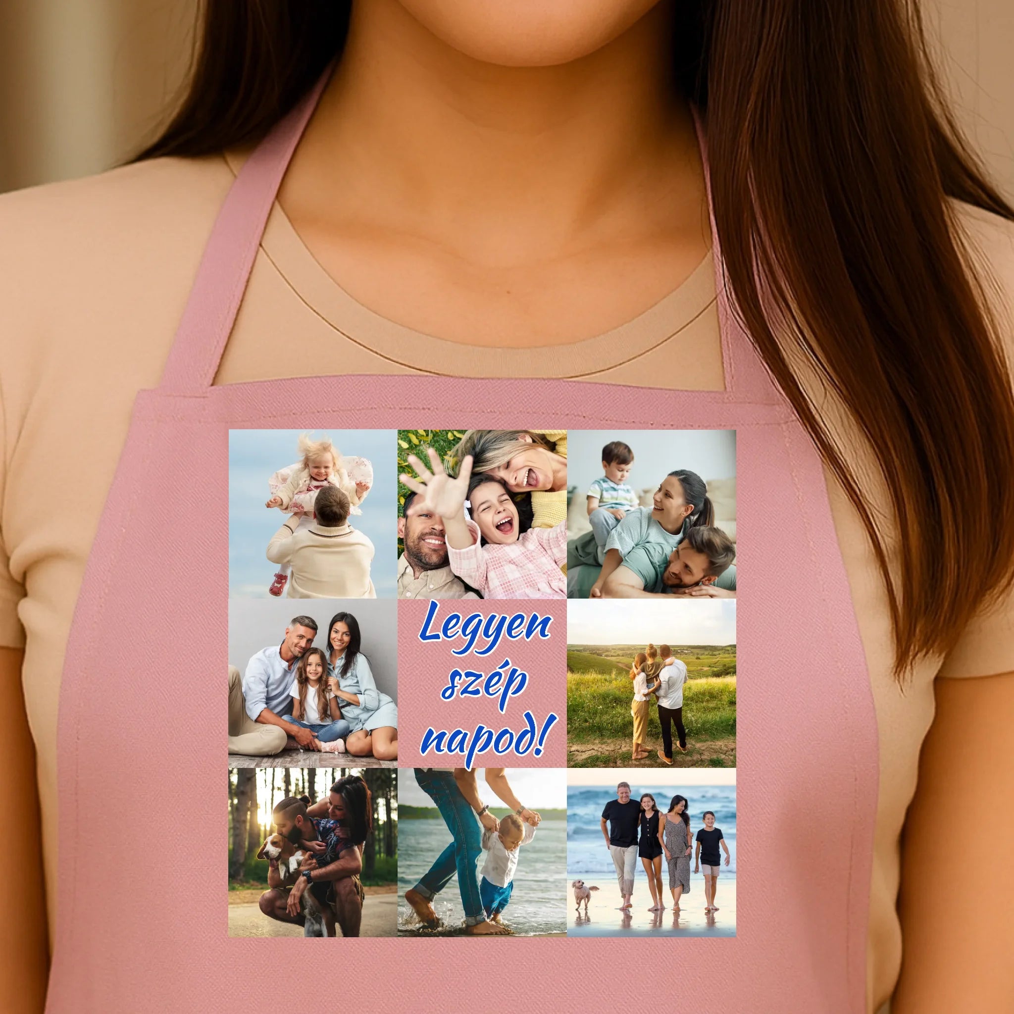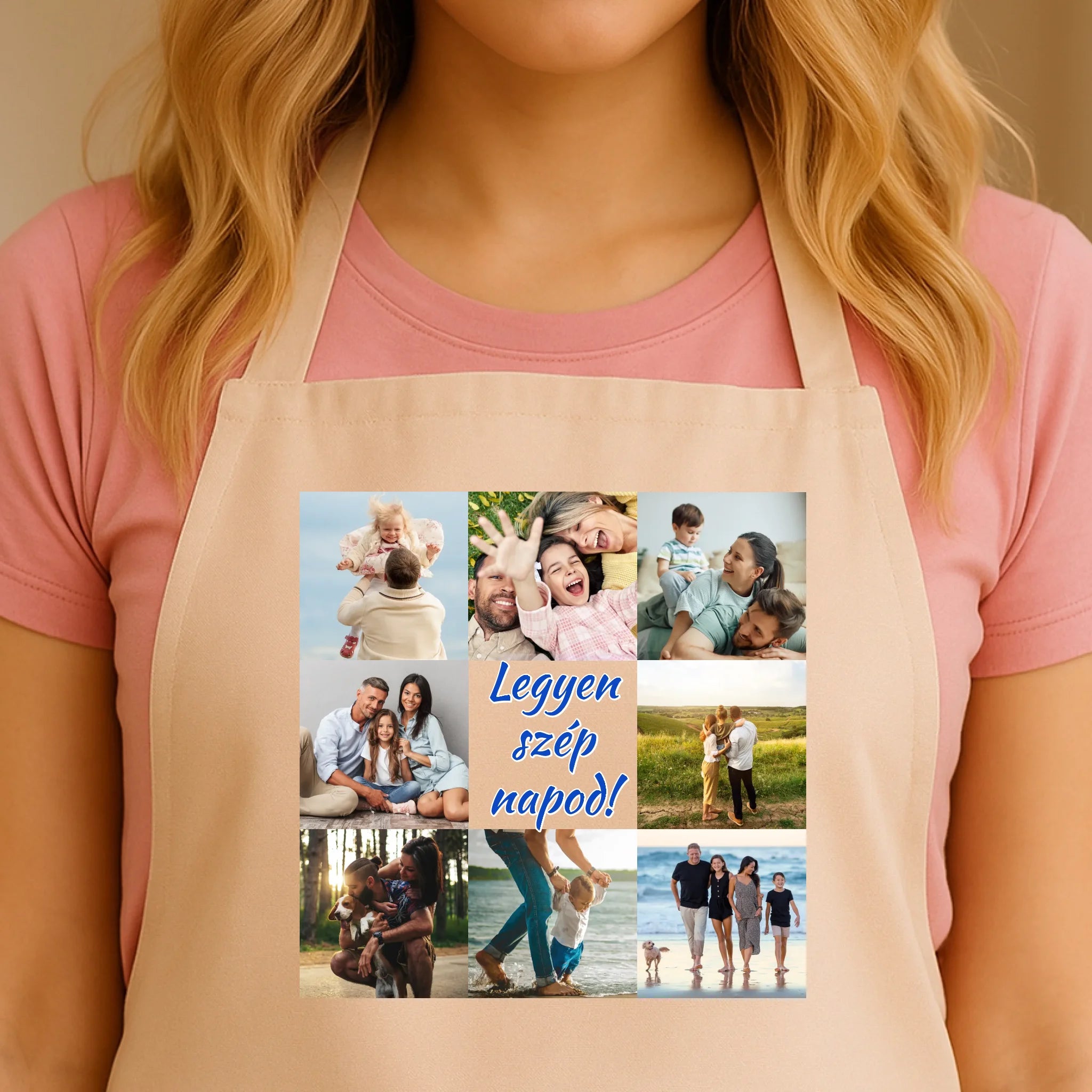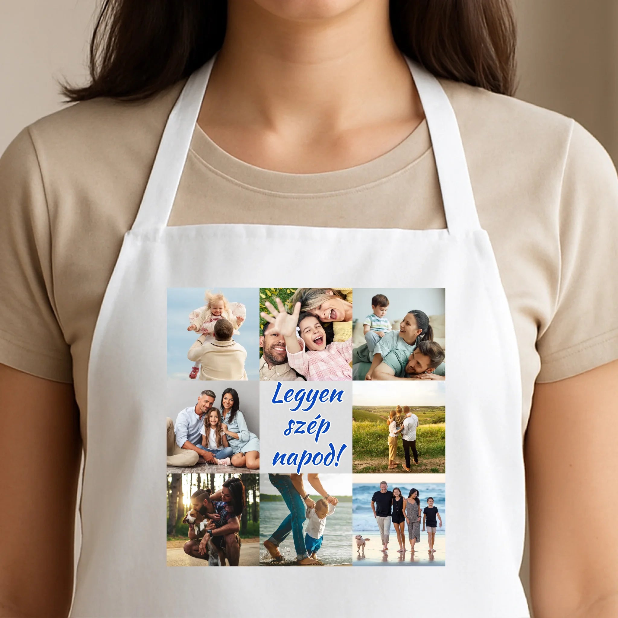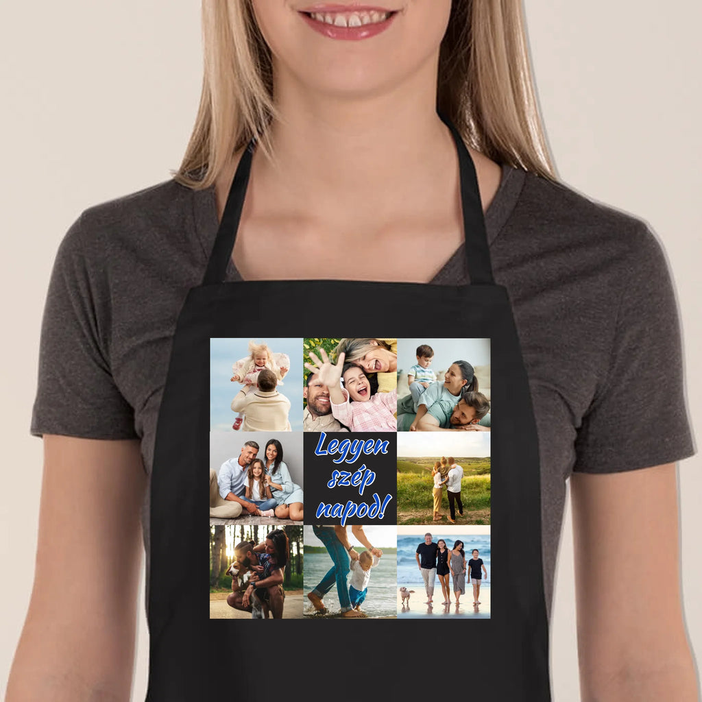 Lepd meg szeretteidet egy igazán különleges ajándékkal! Az egyedi fényképes kötény 8 képpel és felirattal tökéletes választás, ha személyes és praktikus meglepetést keresel. Tölts fel nyolc kedvenc fotót, adj hozzá egy vicces vagy megható feliratot, és készítsd el pillanatok alatt saját kötényedet az online tervezőnkben.