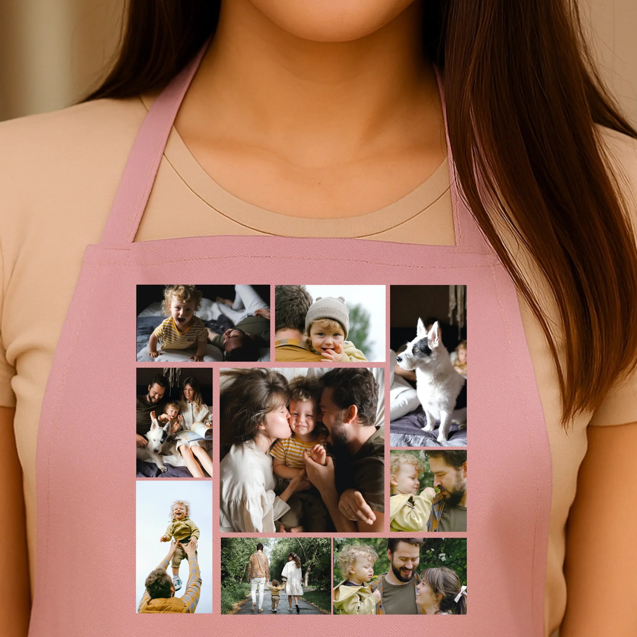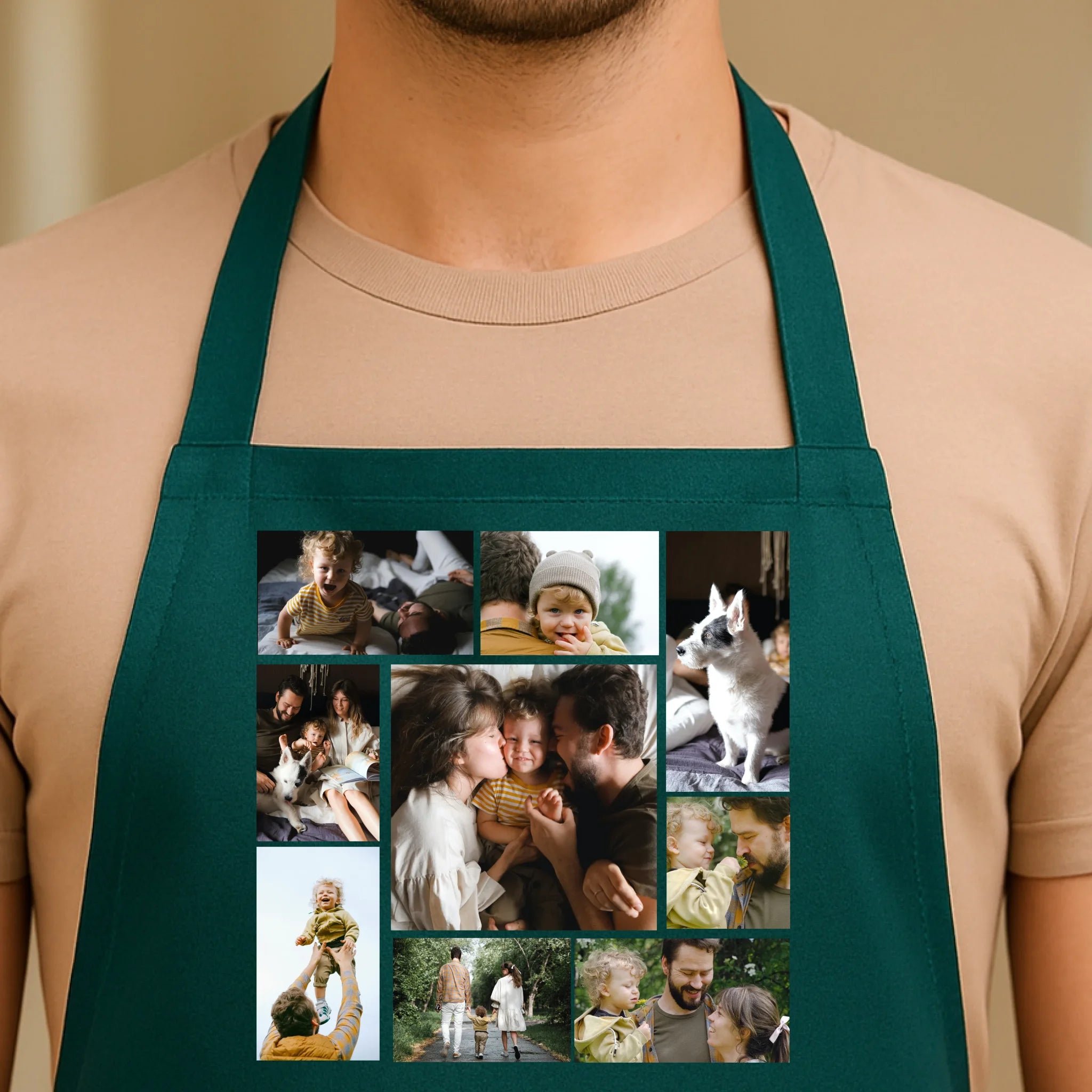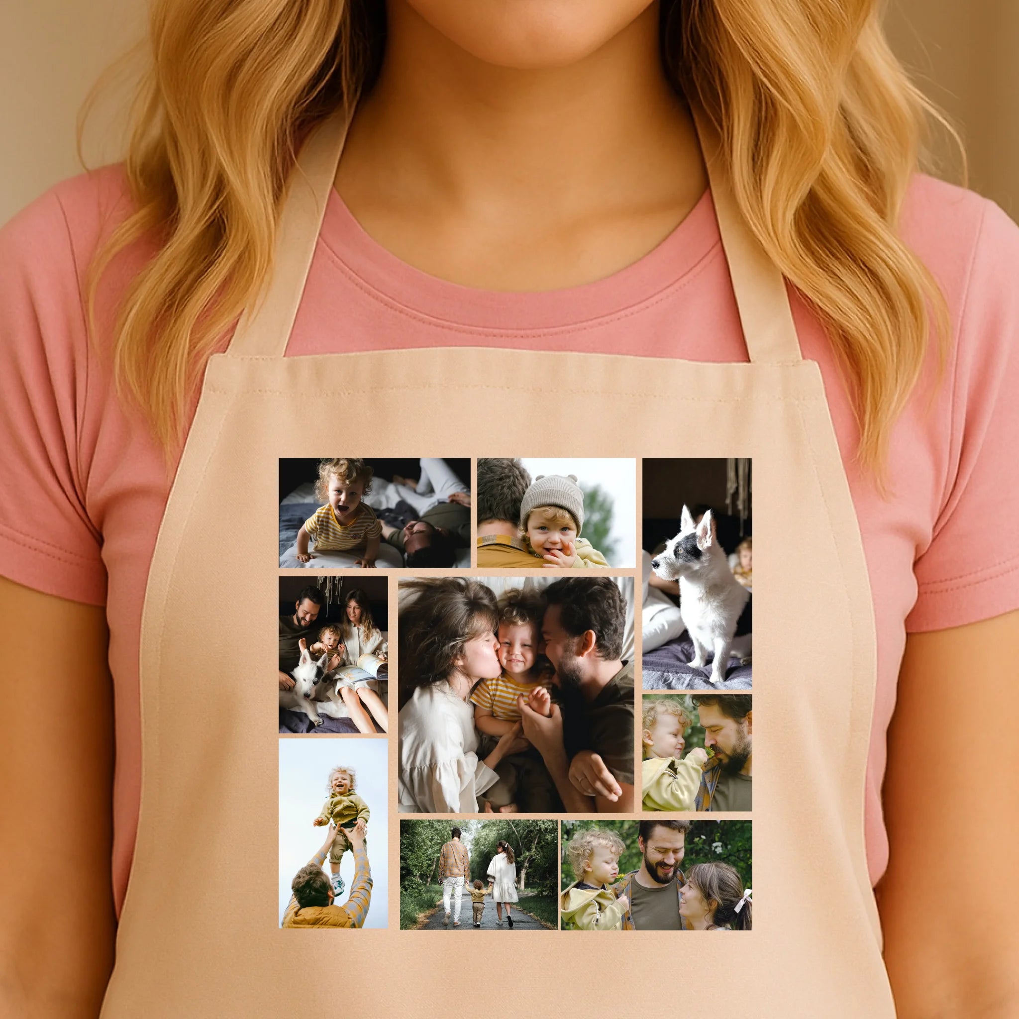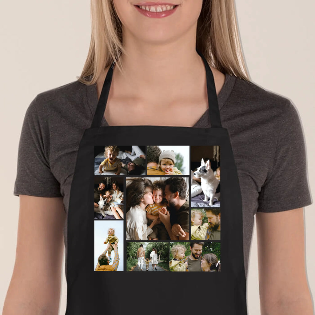 Lepd meg szeretteidet egy igazán különleges és praktikus ajándékkal! Tervezd meg saját egyedi kötényedet, amelyre akár 9 különböző fényképet is feltölthetsz. Legyen szó családi emlékekről, kedvenc grillpartikról vagy vicces pillanatokról, ez a kötény minden főzést mosollyal indít.