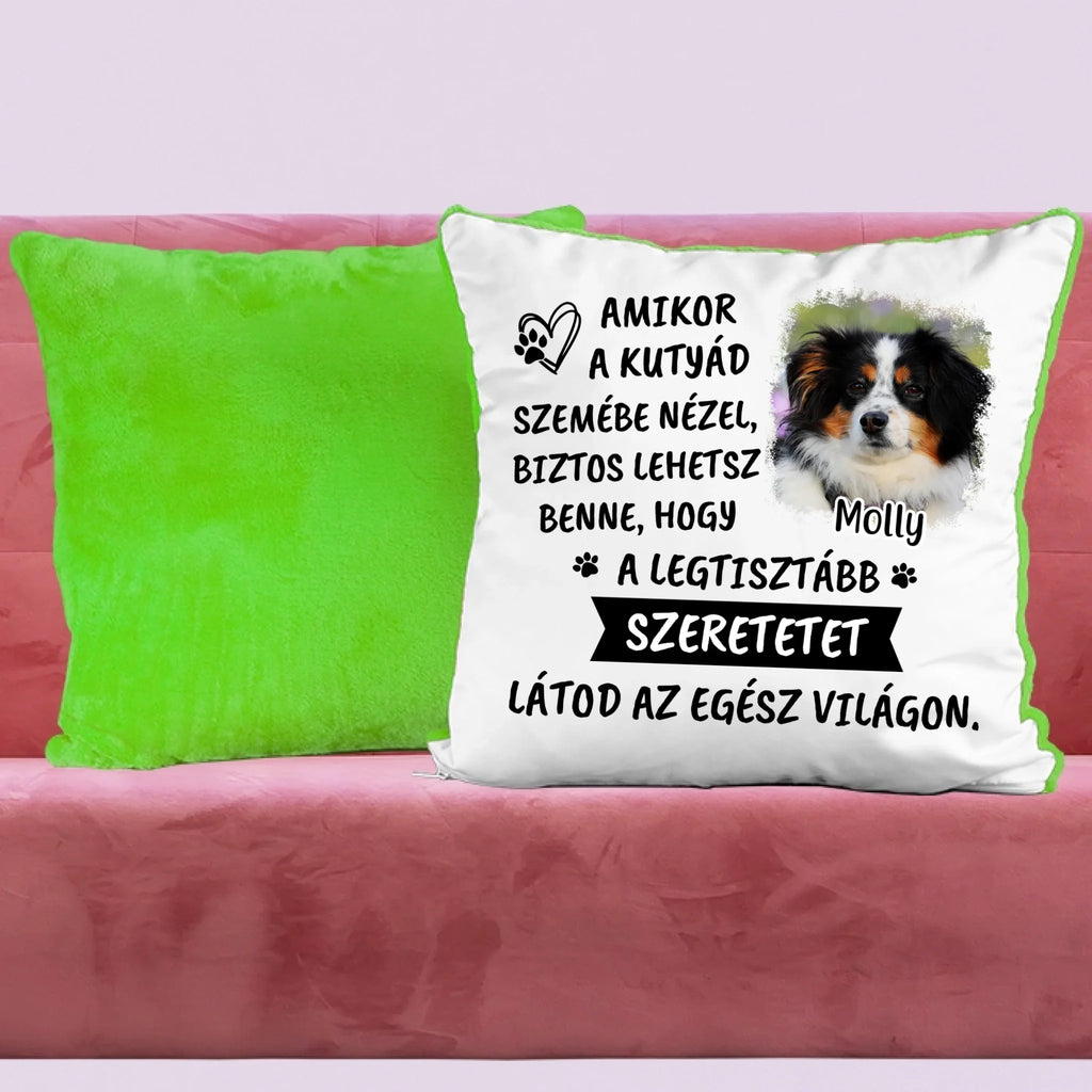 Egyedi fényképes párna kutya gazdiknak személyre szabható felirattal