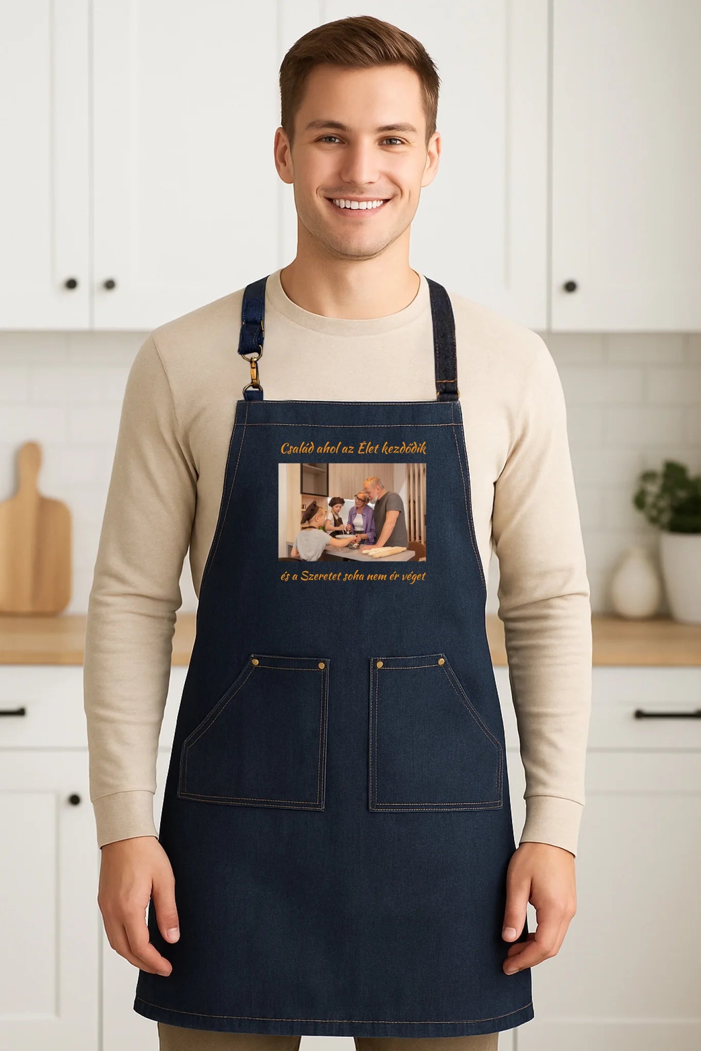Lepd meg szeretteidet egy igazán különleges és stílusos ajándékkal! Az egyedi fényképes prémium farmer kötény nemcsak praktikus, hanem divatos és tartós kiegészítő a konyhába, grillpartikhoz vagy bográcsozáshoz. Töltsd fel kedvenc fényképedet, egyedi mintát vagy vicces feliratot, és készítsd el a saját, 100%-ban személyre szabott kötényedet – pár perc alatt az online tervezőnkben.