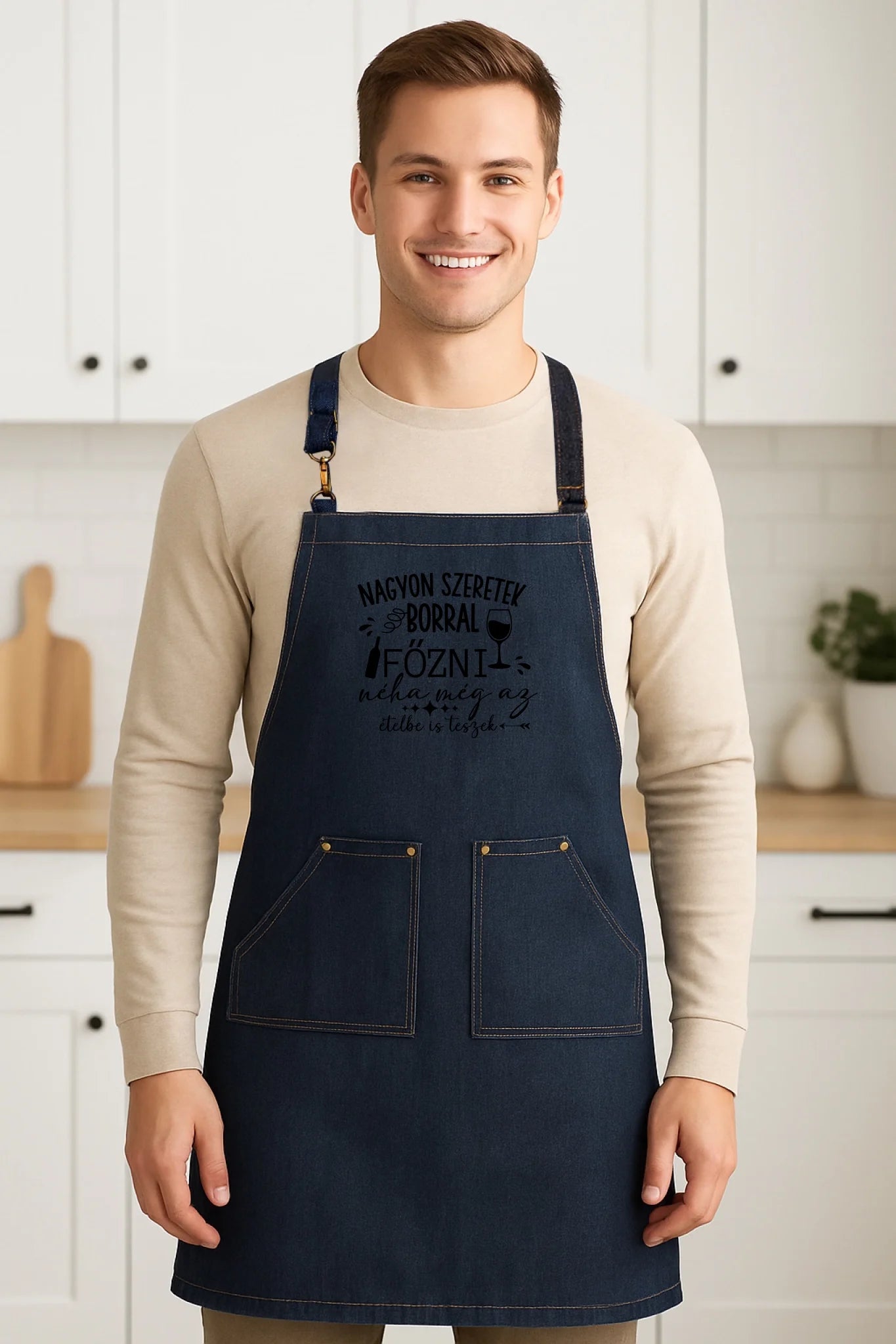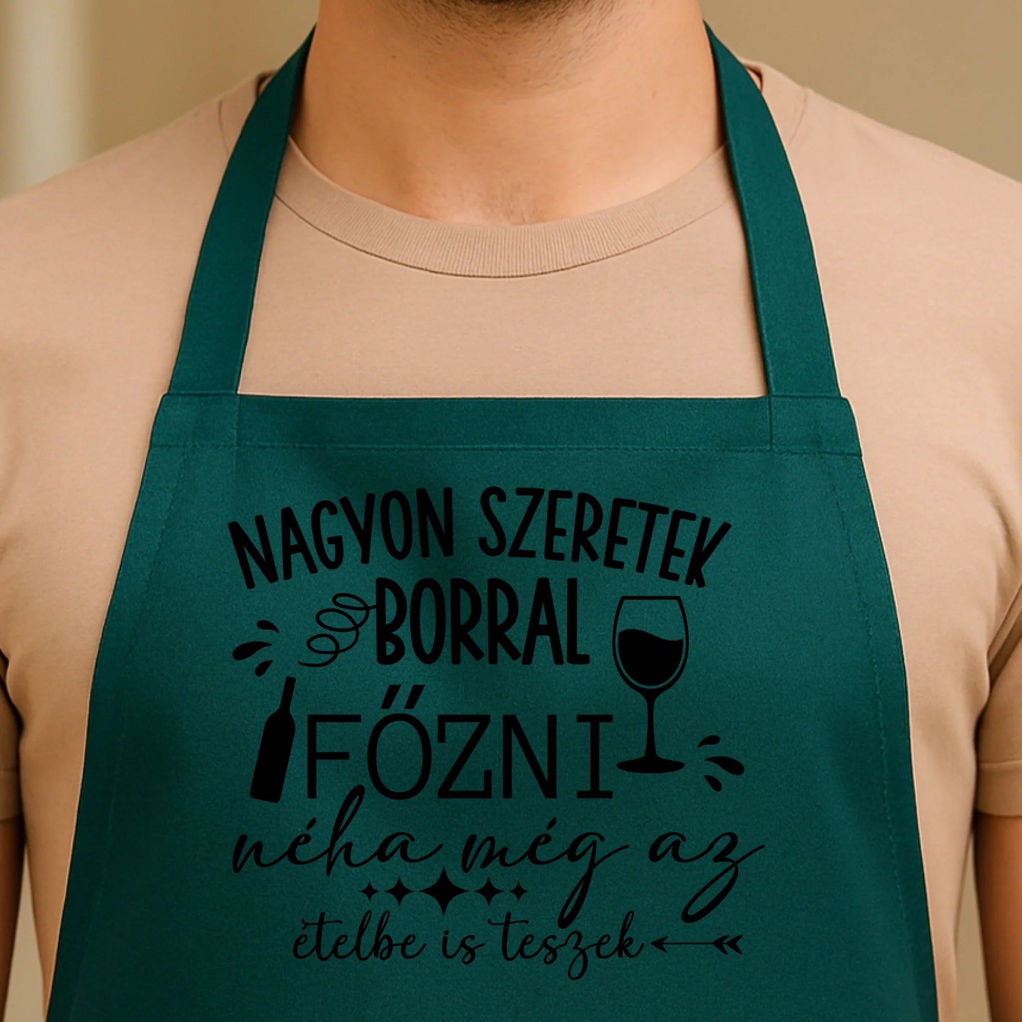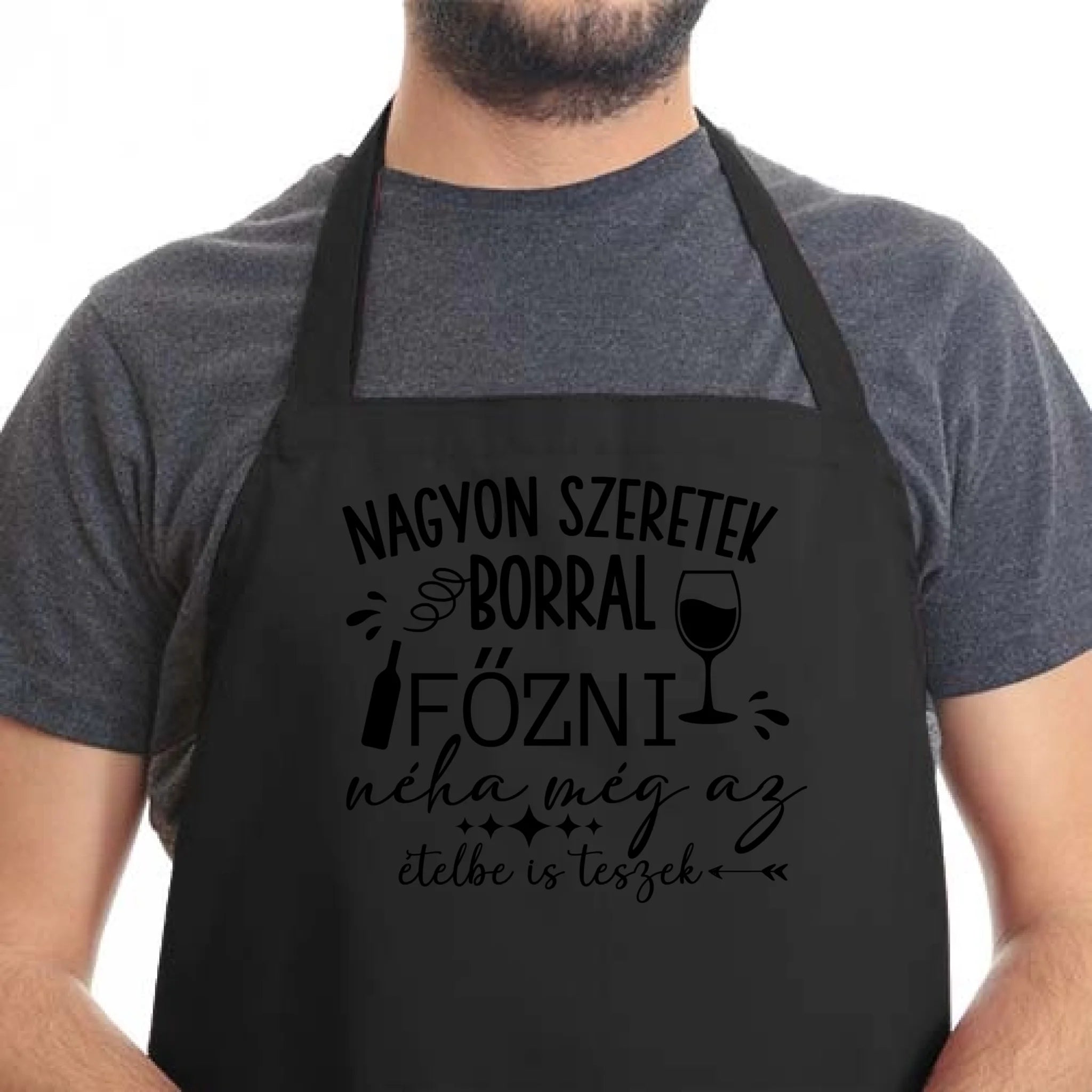 Egyedi kötény - szeretek borral főzni és néha még az ételbe is teszek