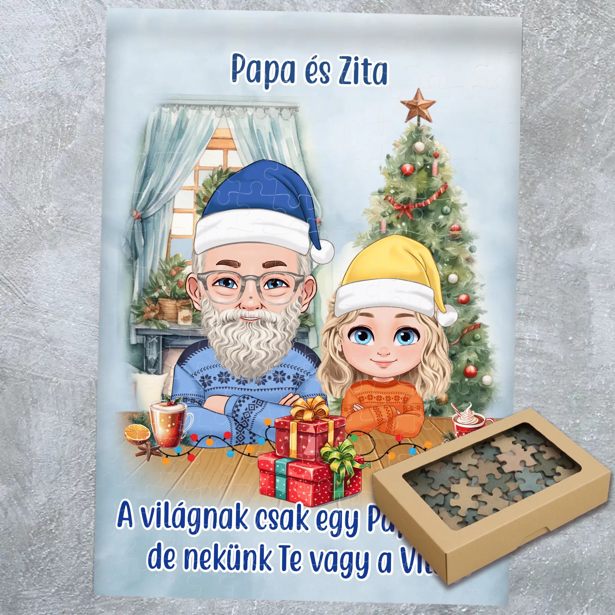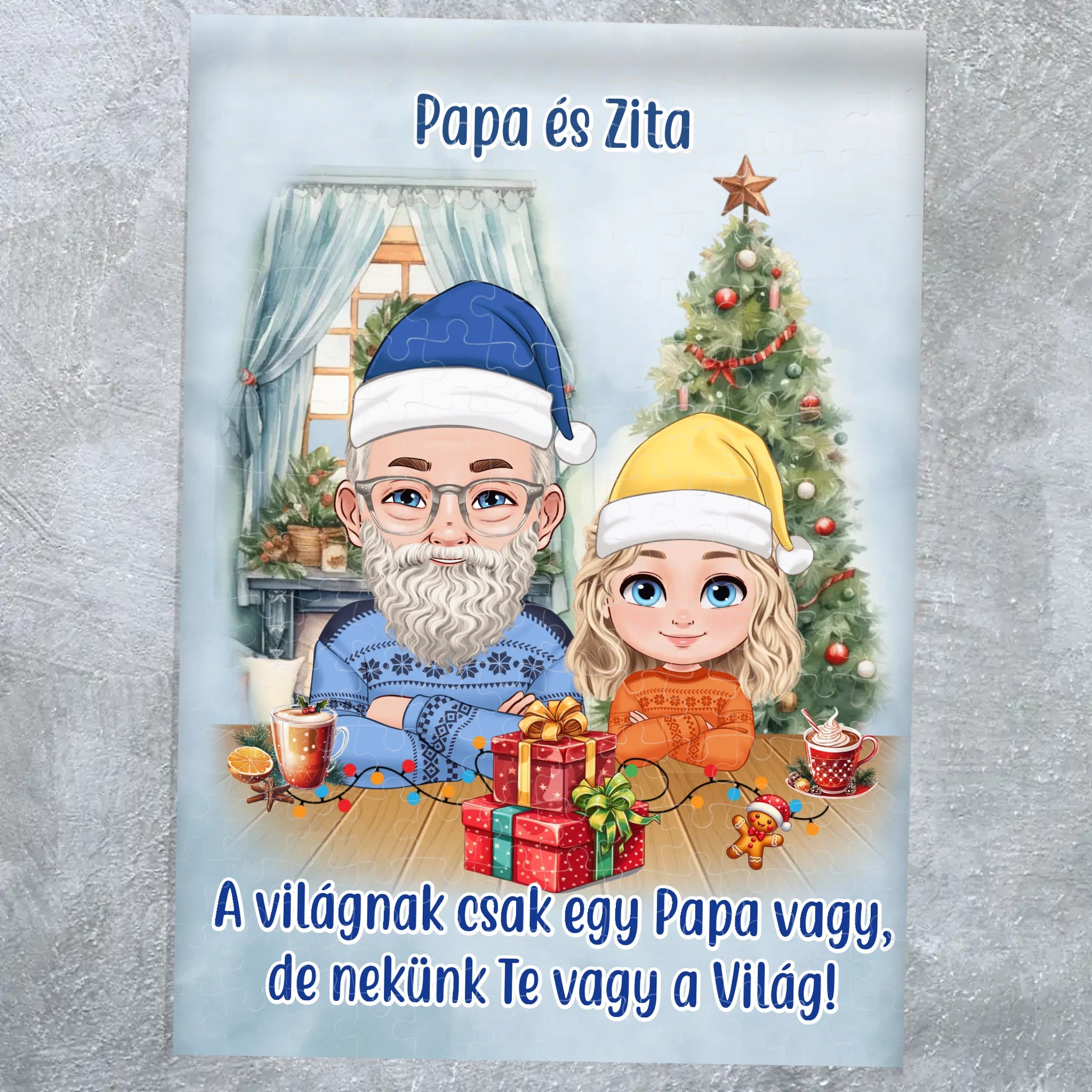 Karácsonyi egyedi puzzle személyre szabható karakterekkel – Papa és unokák