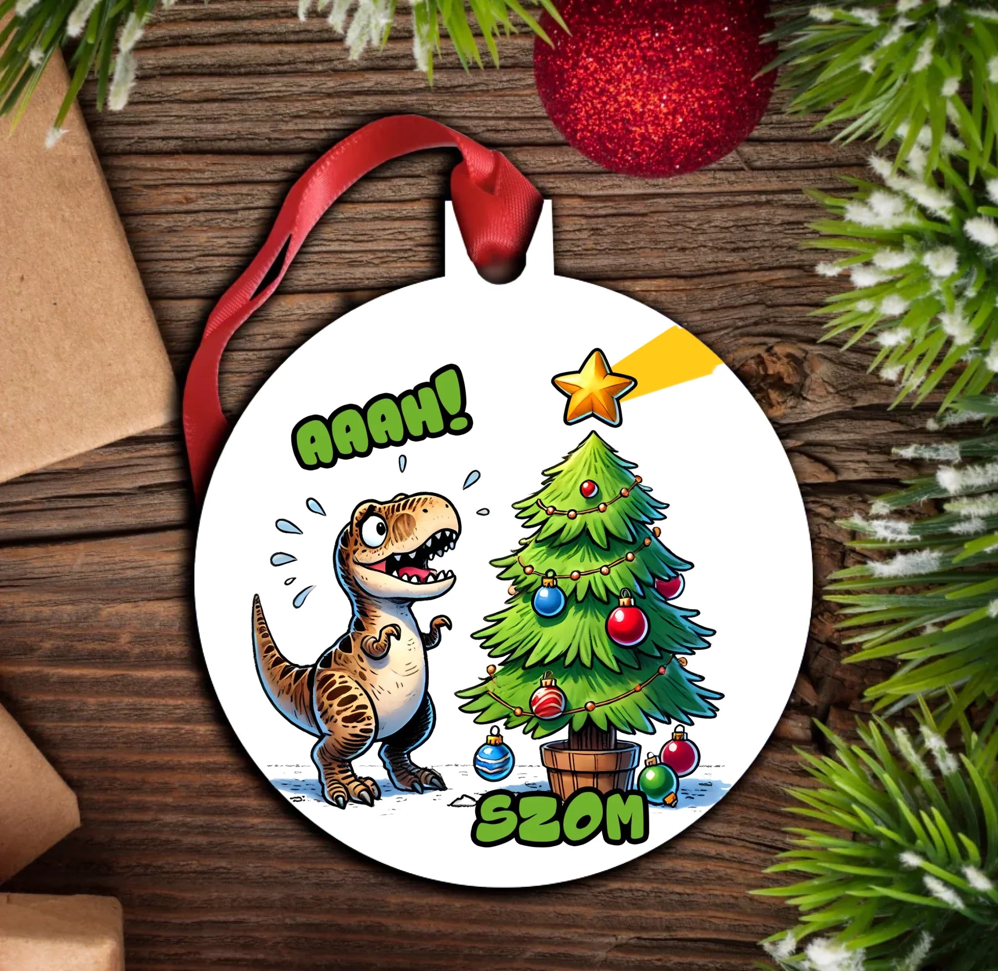 Faszom karácsonyi dísz dinó mintával és egyedi felirattal