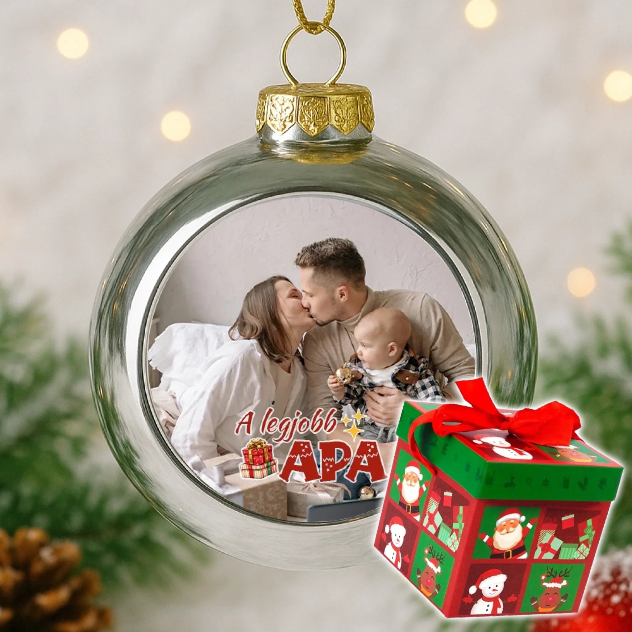 Fényképes karácsonyi gömbdísz Apának ezüst színű