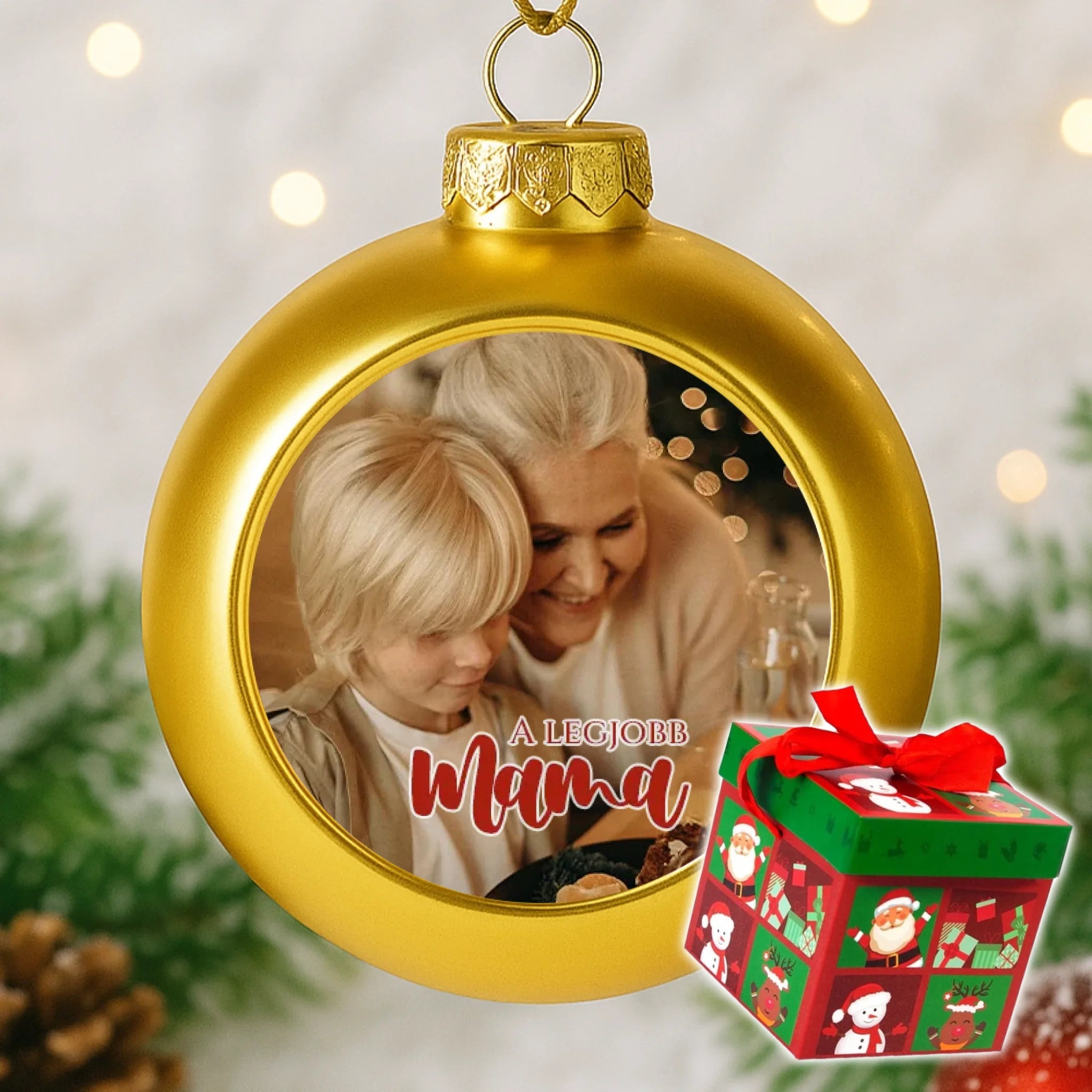 Fényképes karácsonyi gömbdísz Mamának arany színű