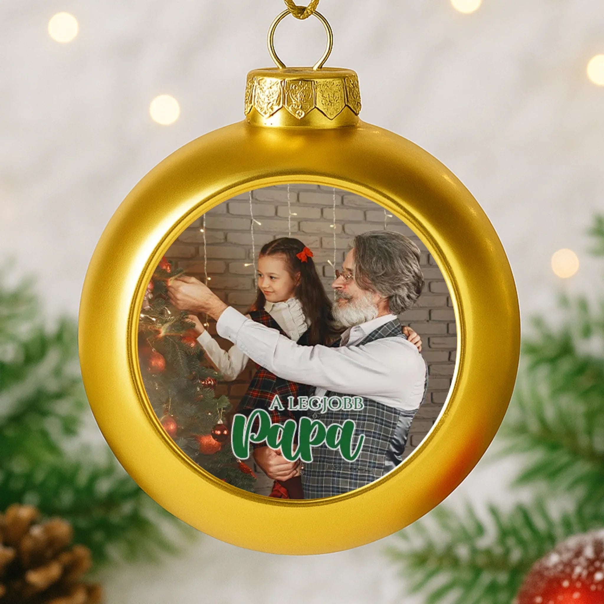 Fényképes karácsonyi gömbdísz Papának arany színű