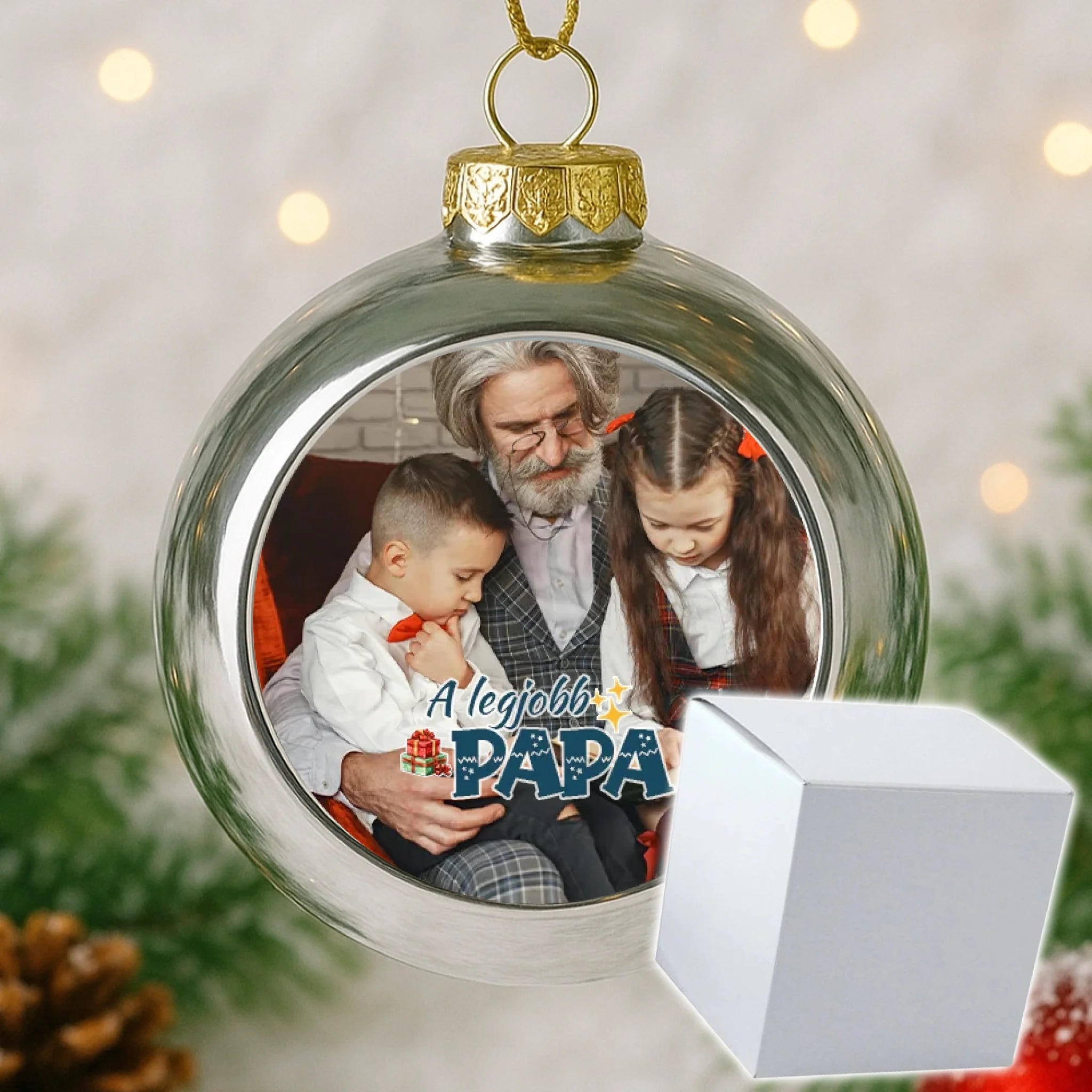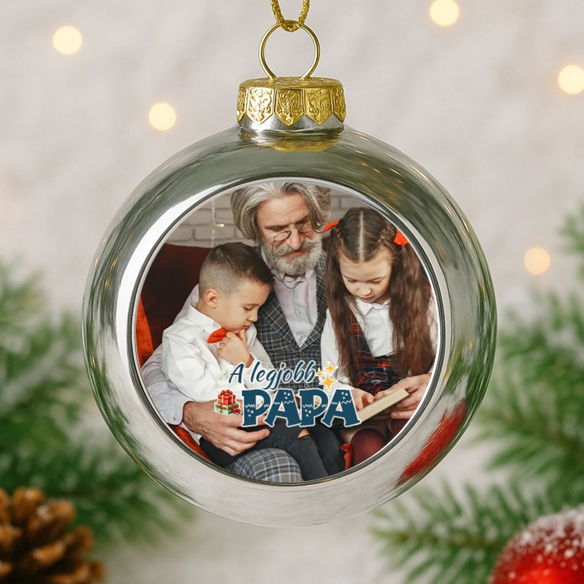 Fényképes karácsonyi gömbdísz Papának ezüst színű