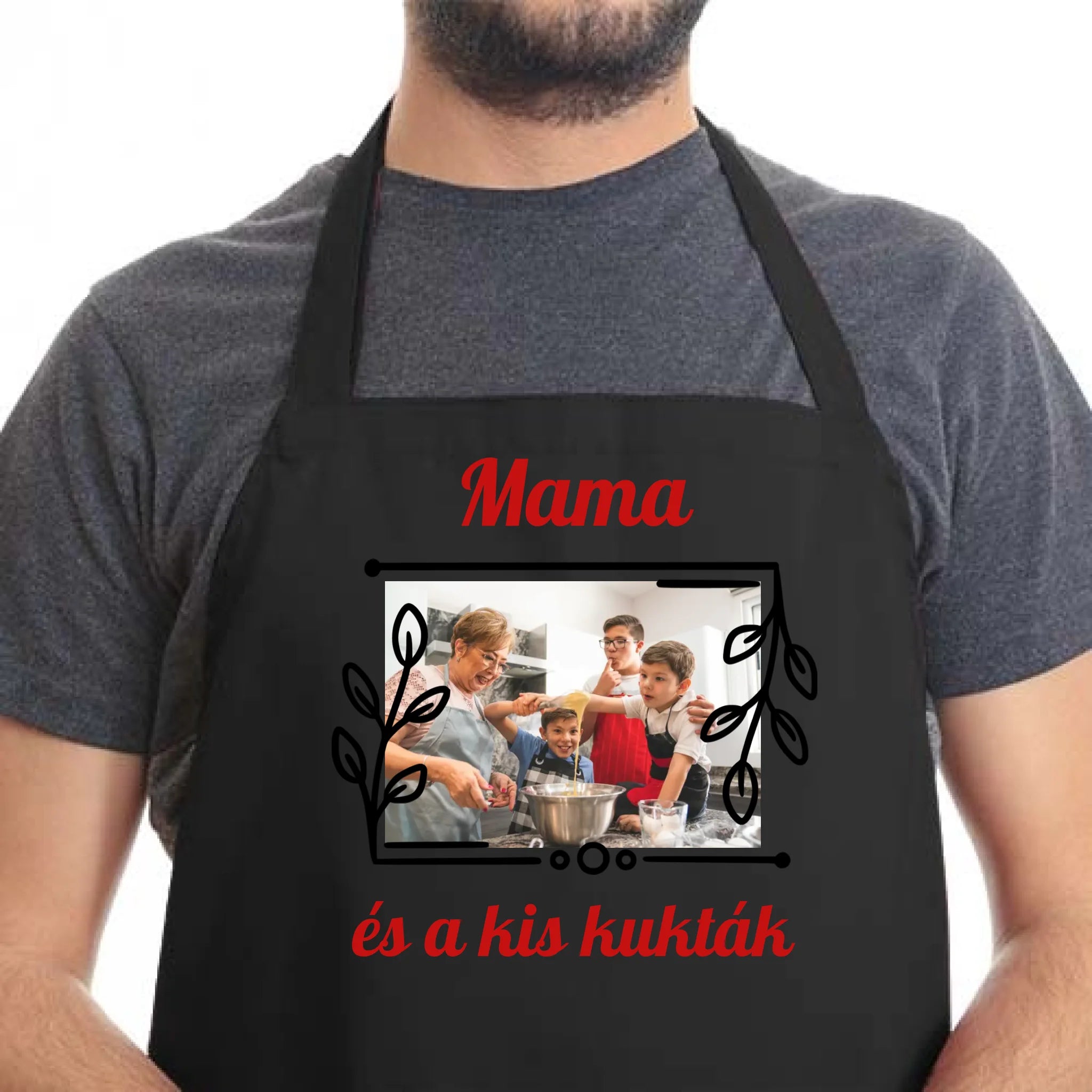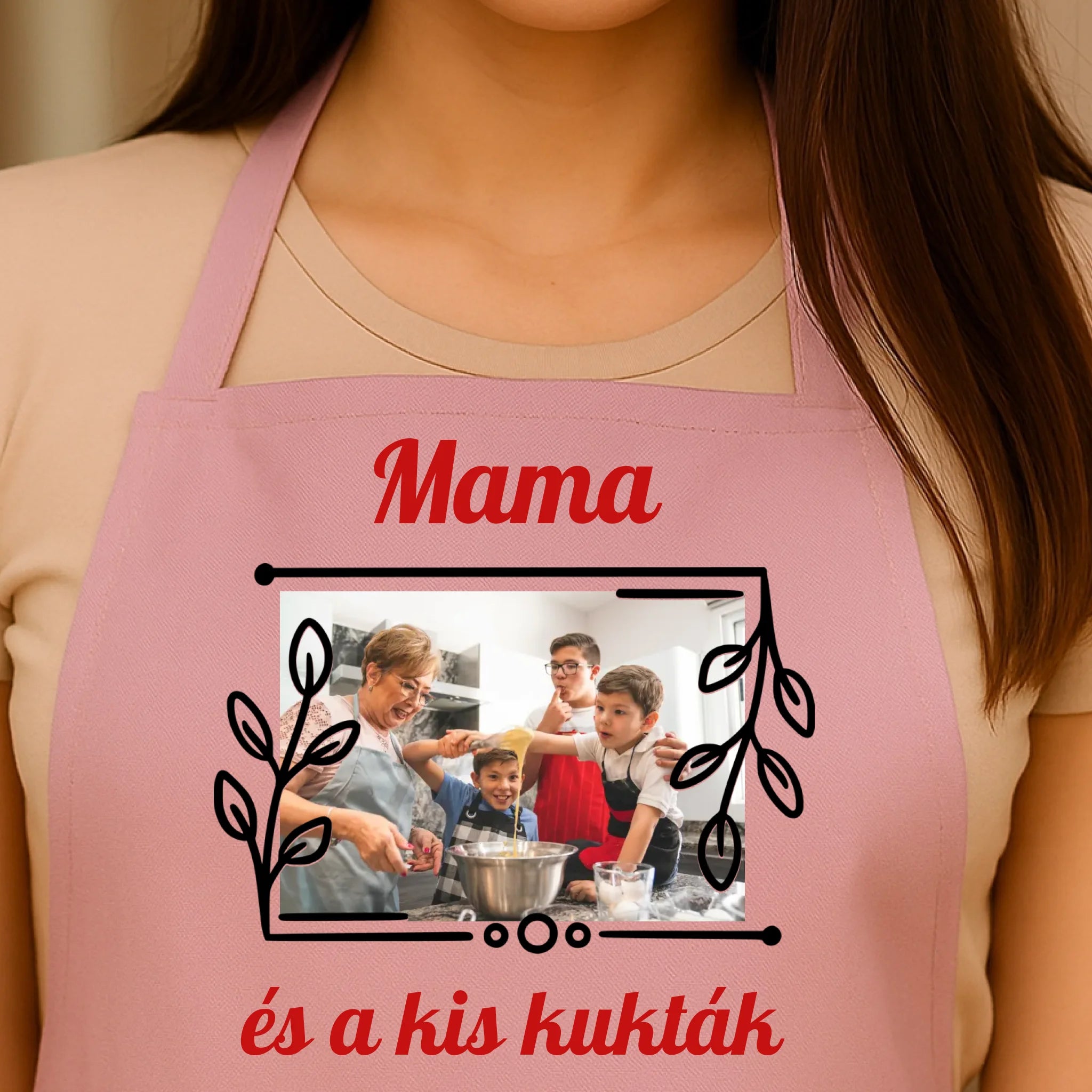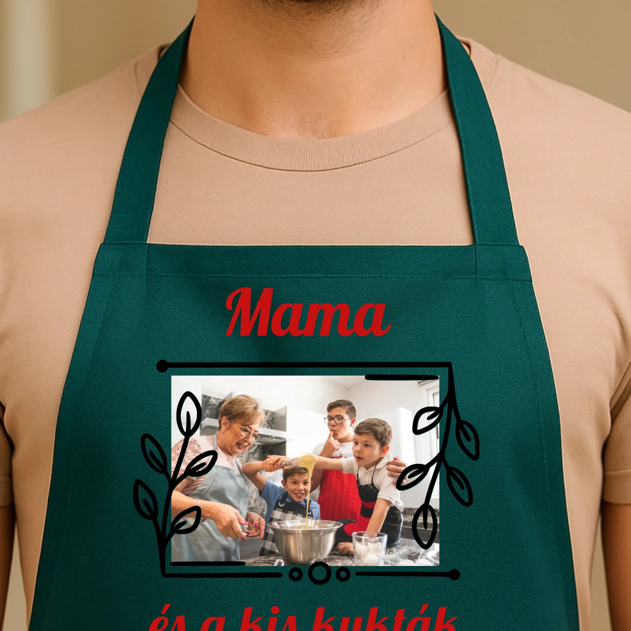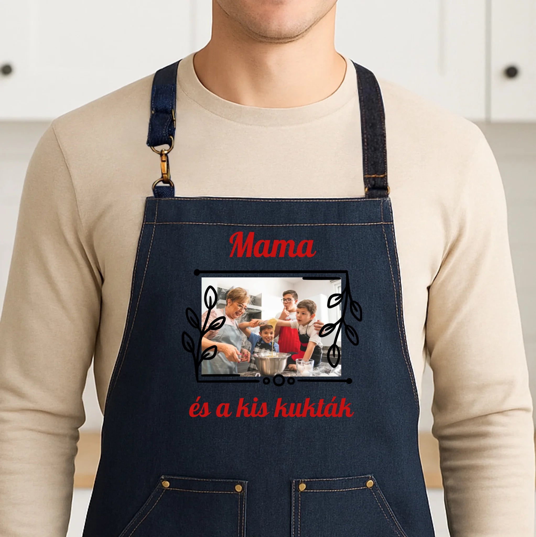 Egyedi fényképes kötény virágos kerettel és felirattal