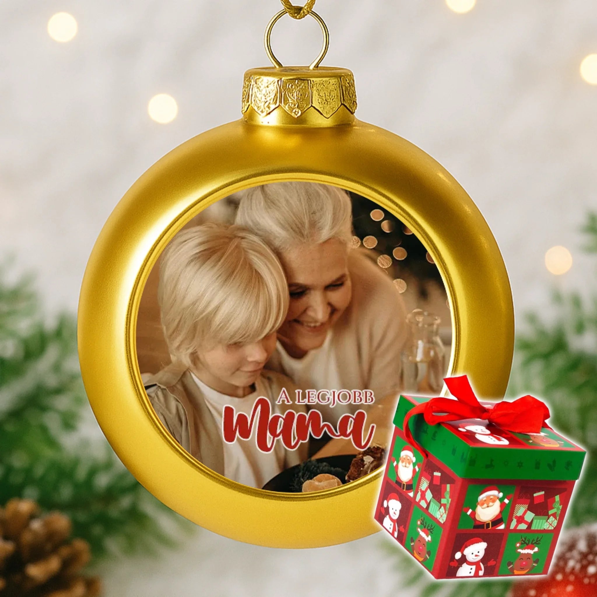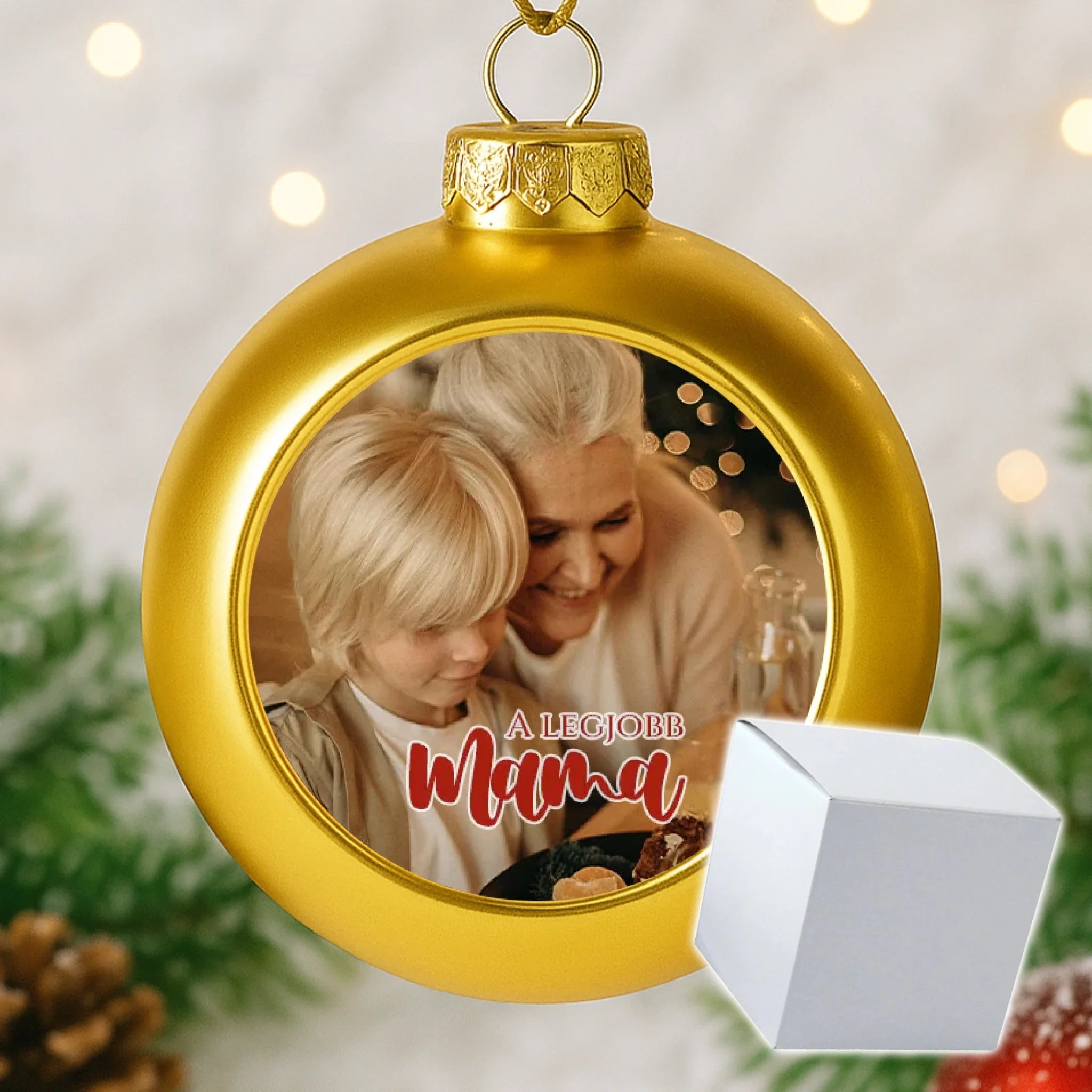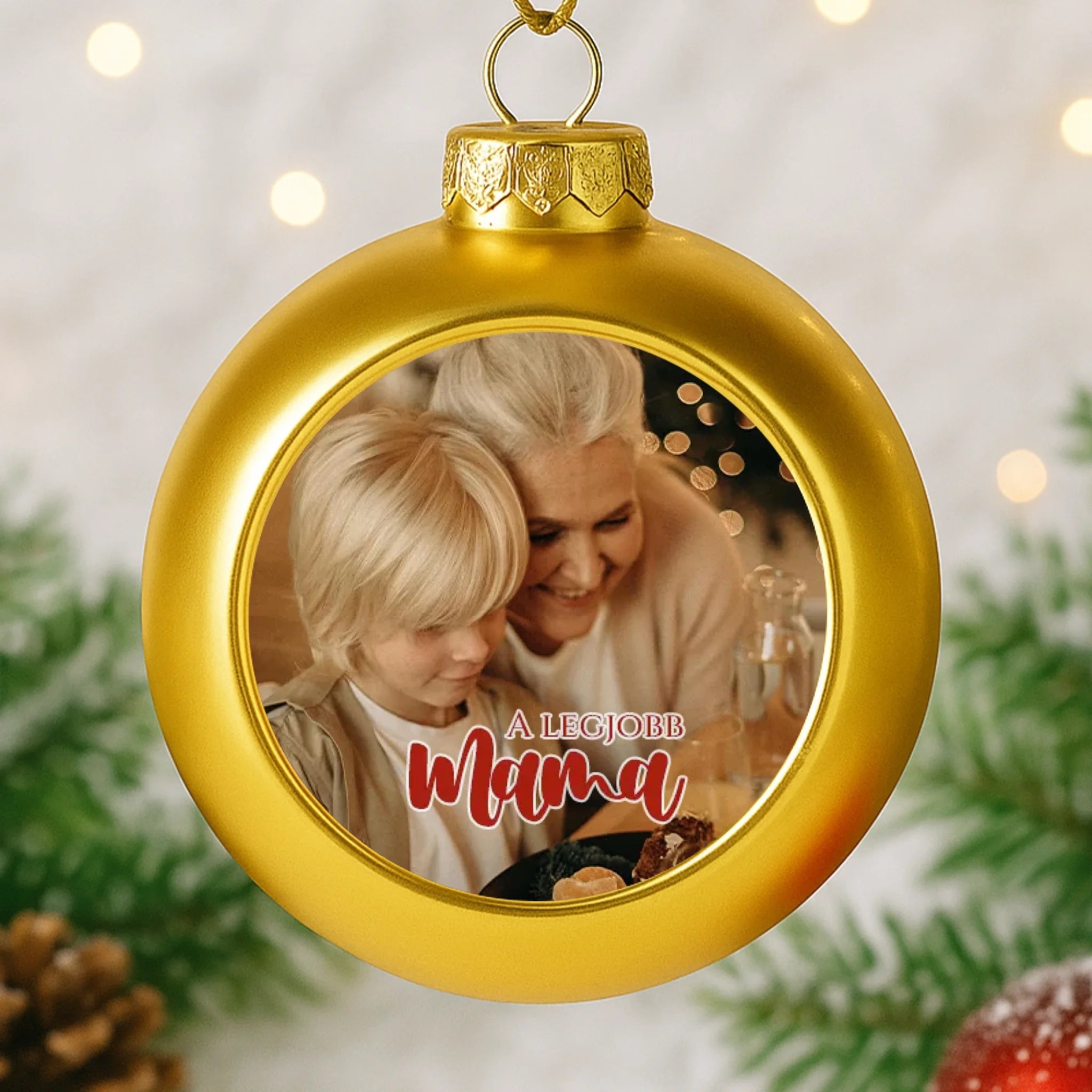 Fényképes karácsonyi gömbdísz Mamának arany színű