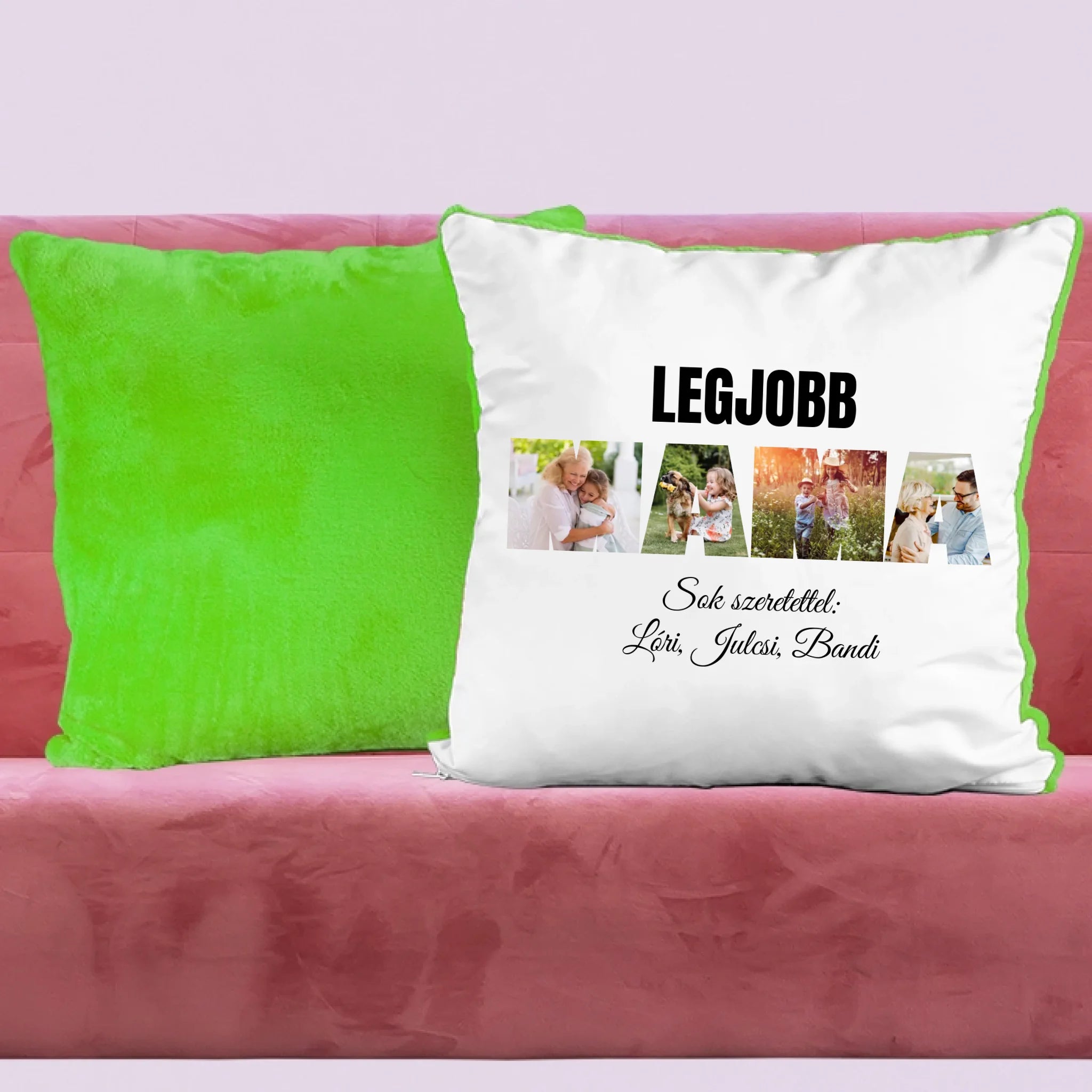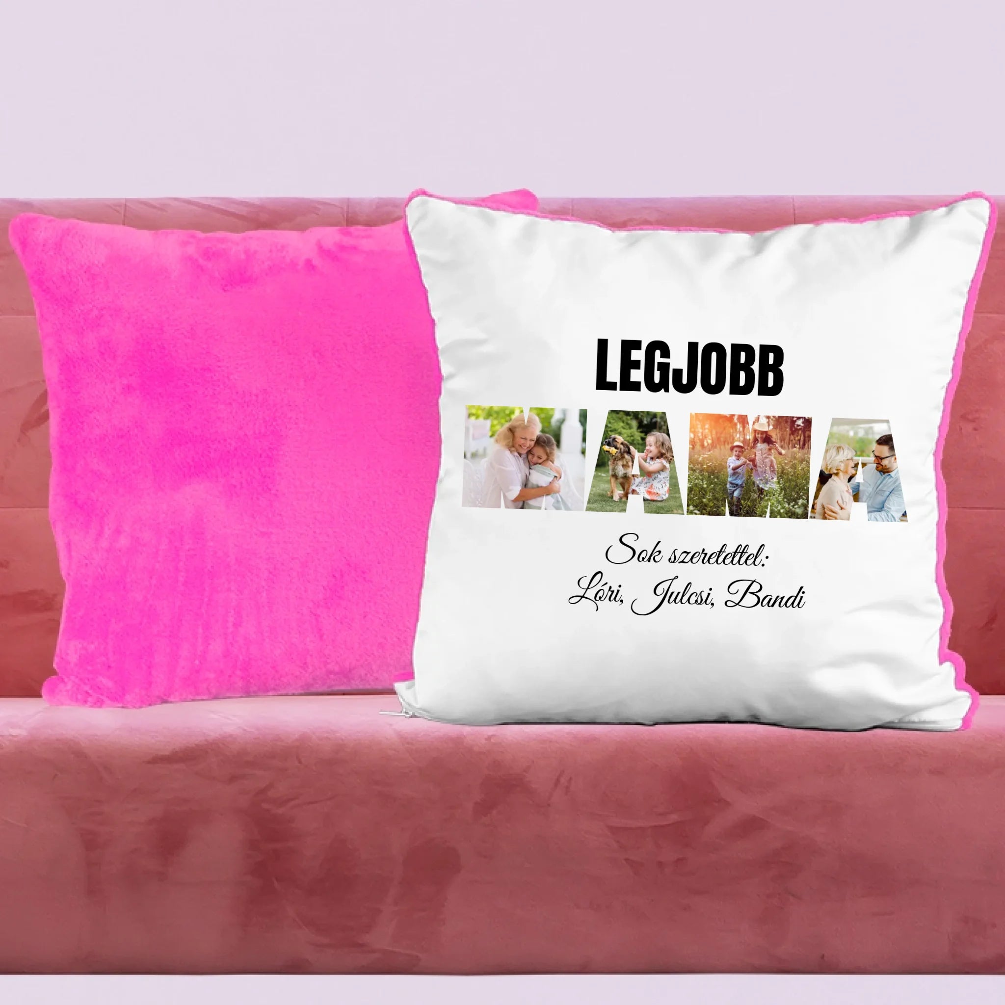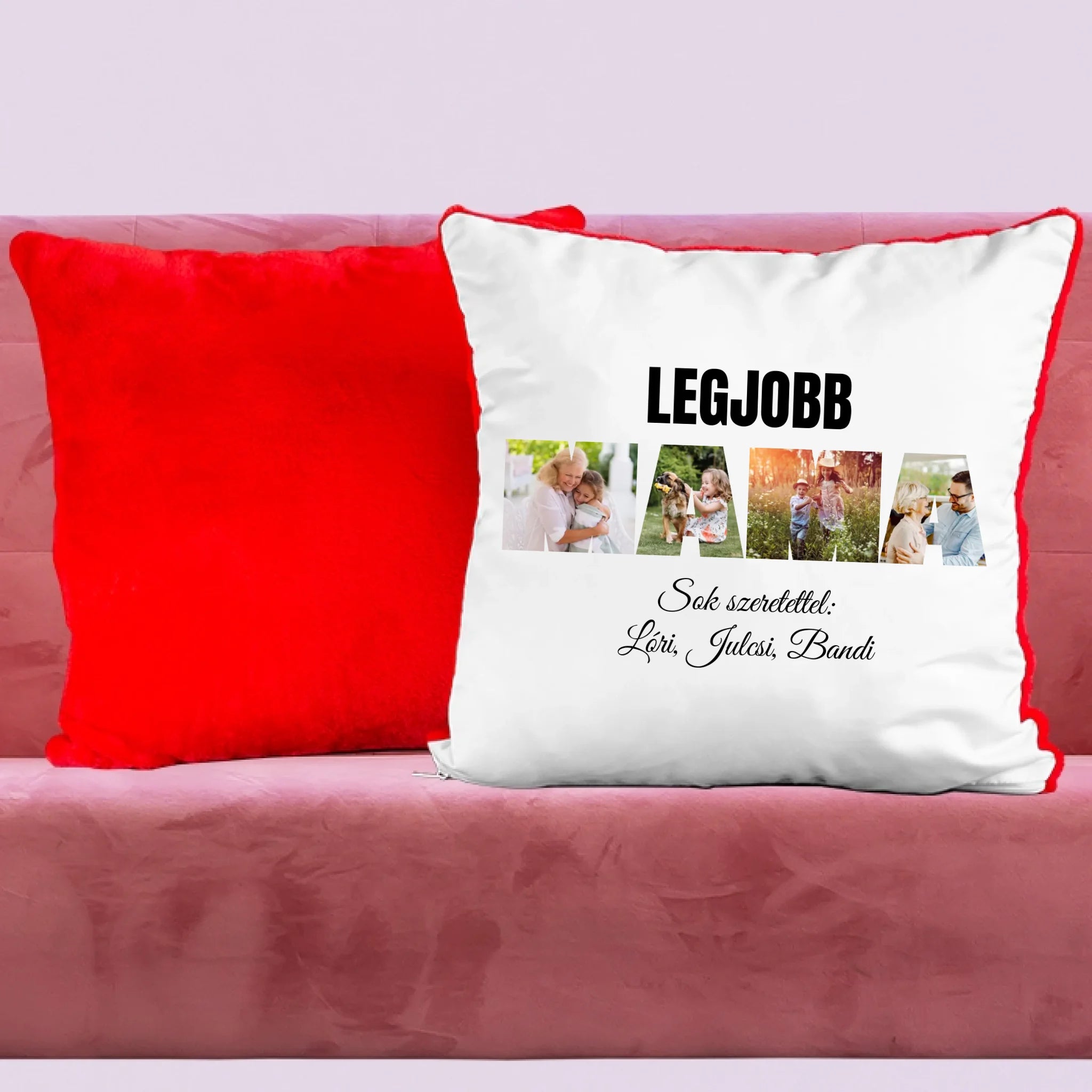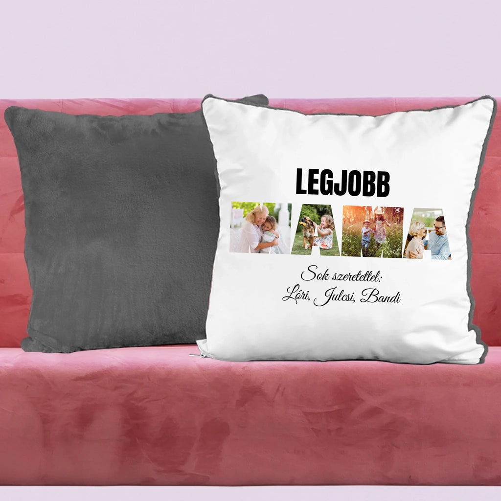 Egyedi párna anyák napjára nagymamának, melyre saját képet is kérhetsz. A kedves felirat garantálja és a MAMA formában kivágott képek garantáltan mosolyt csalnak nagymamád arcára, legyen szó anyák napjáról, születésnapról, névnapról vagy karácsonyról.