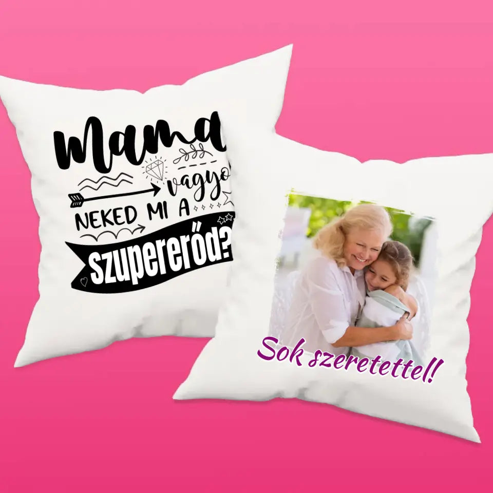 Egyedi párna anyák napjára, melyre saját képet is kérhetsz. A kedves felirat garantálja, hogy mosolyt csalj mamád arcára, legyen szó anyák napjáról, születésnapról, névnapról vagy karácsonyról.
