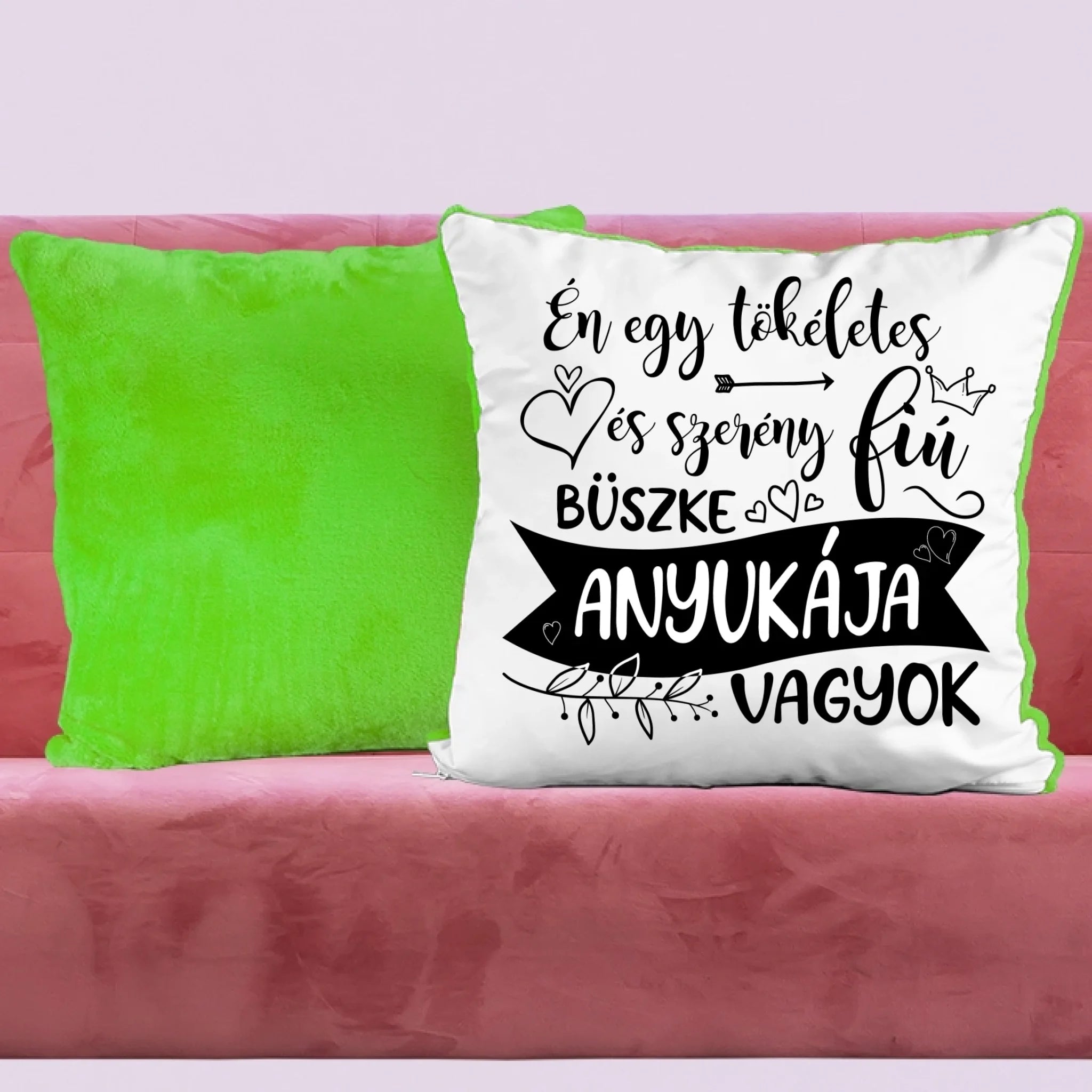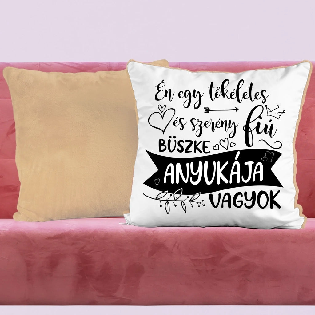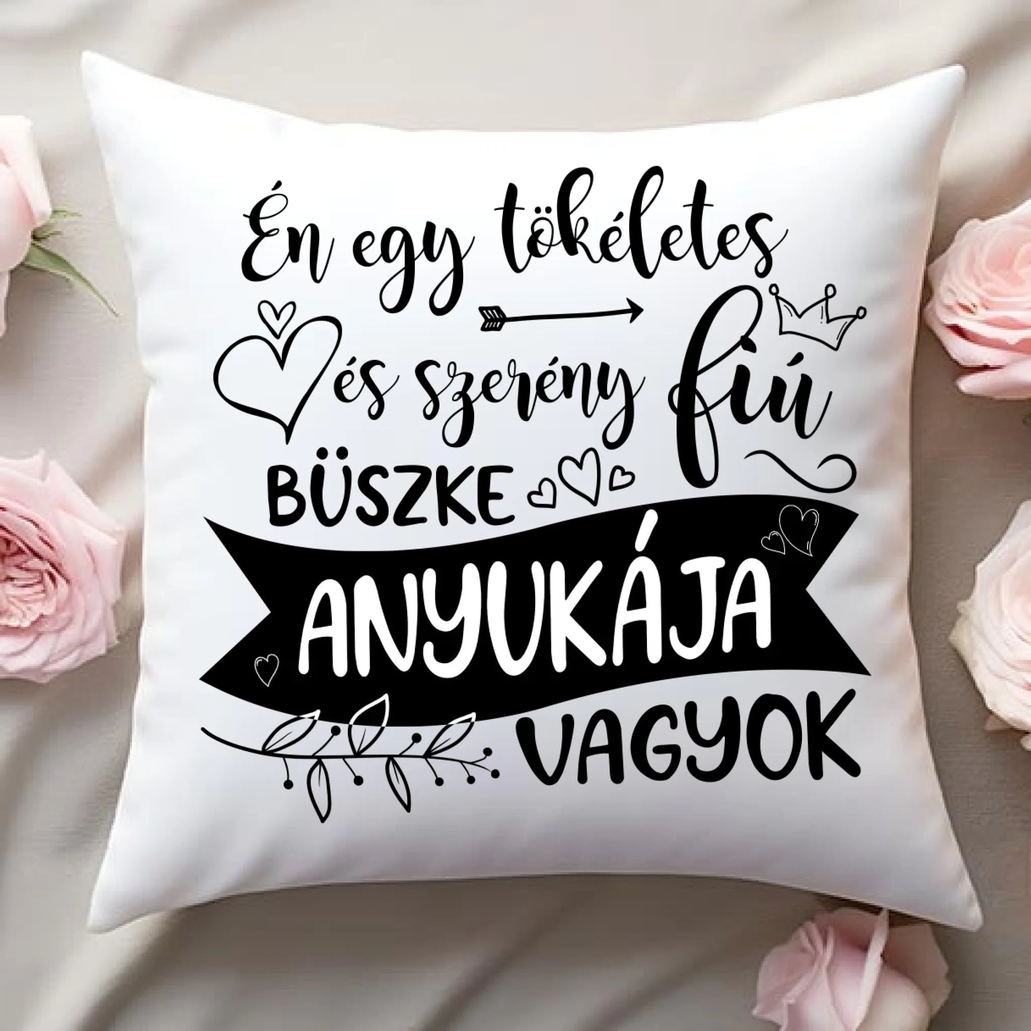 Egyedi párna vicces felirattal anyák napjára, melyre saját képet is kérhetsz. A vicces " Én egy tökéletes és szerény fiú büszke anyukája vagyok" felirat garantálja, hogy mosolyt csalj édesanyád arcára, legyen szó anyák napjáról, születésnapról, névnapról vagy karácsonyról.