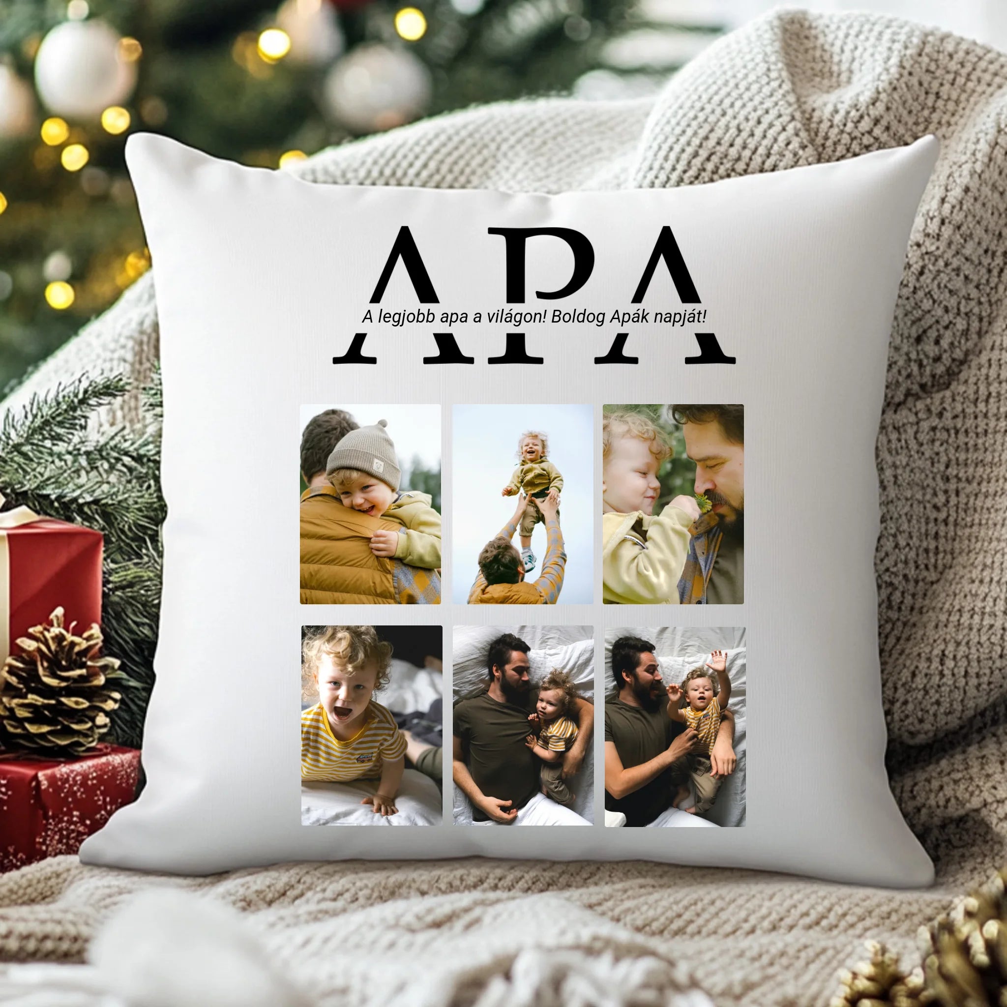 Apák napi 6 képes párna egyedi szöveggel - egyedi fényképes párna papának apák napjára, névnapra, születésnapra, karácsonyra...vagy csak úgy!