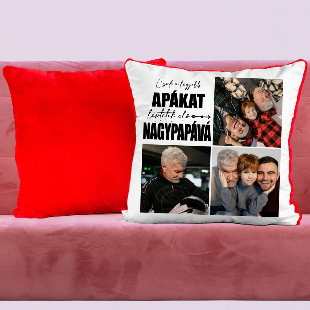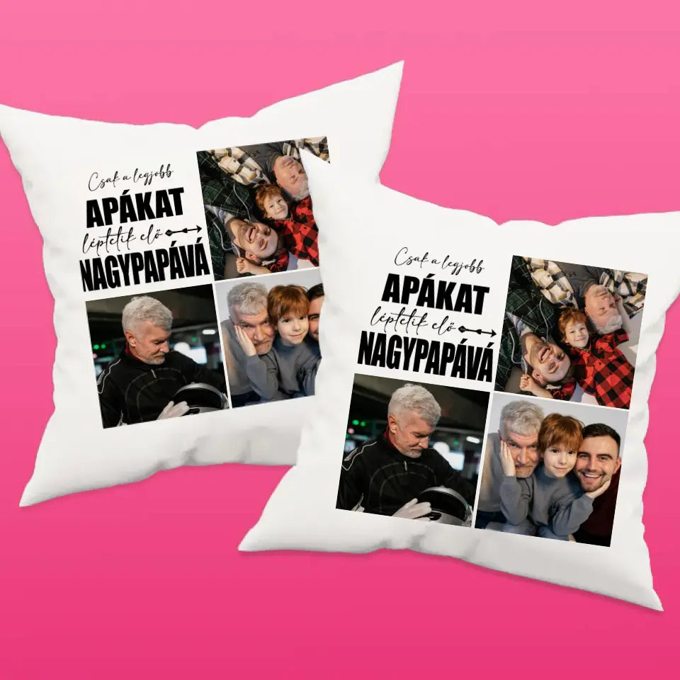 Egyedi fényképes párna papának 3 fotóval és felirattal.