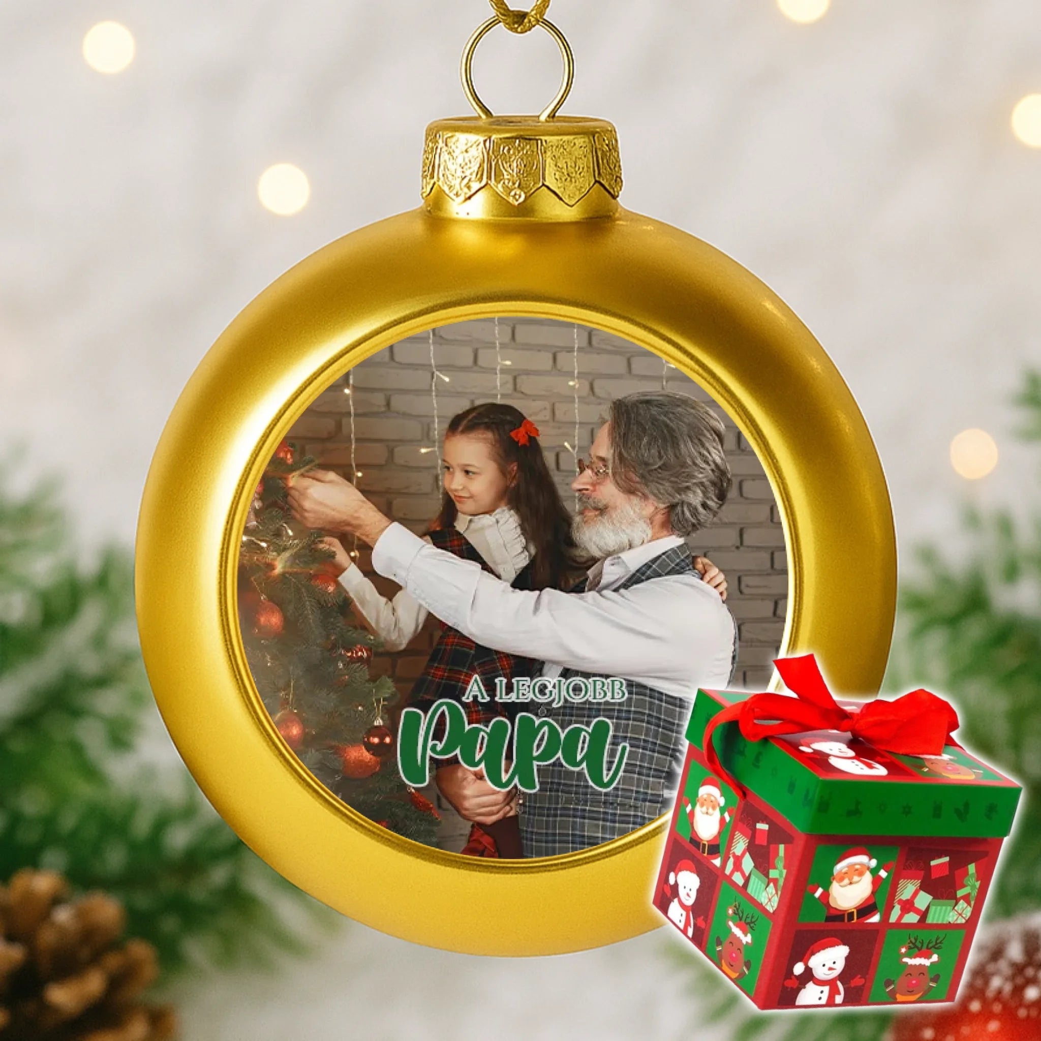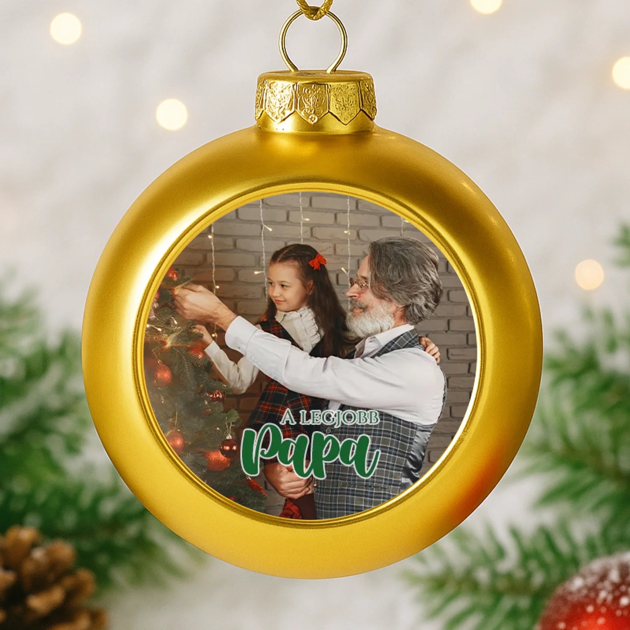 Fényképes karácsonyi gömbdísz Papának arany színű