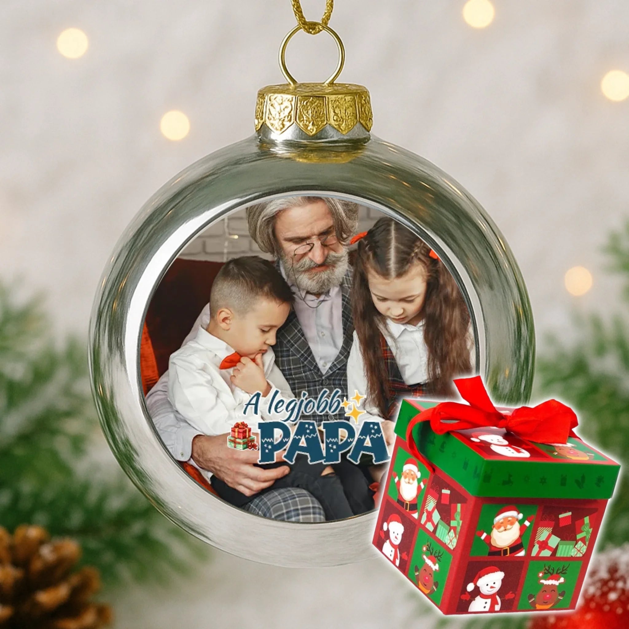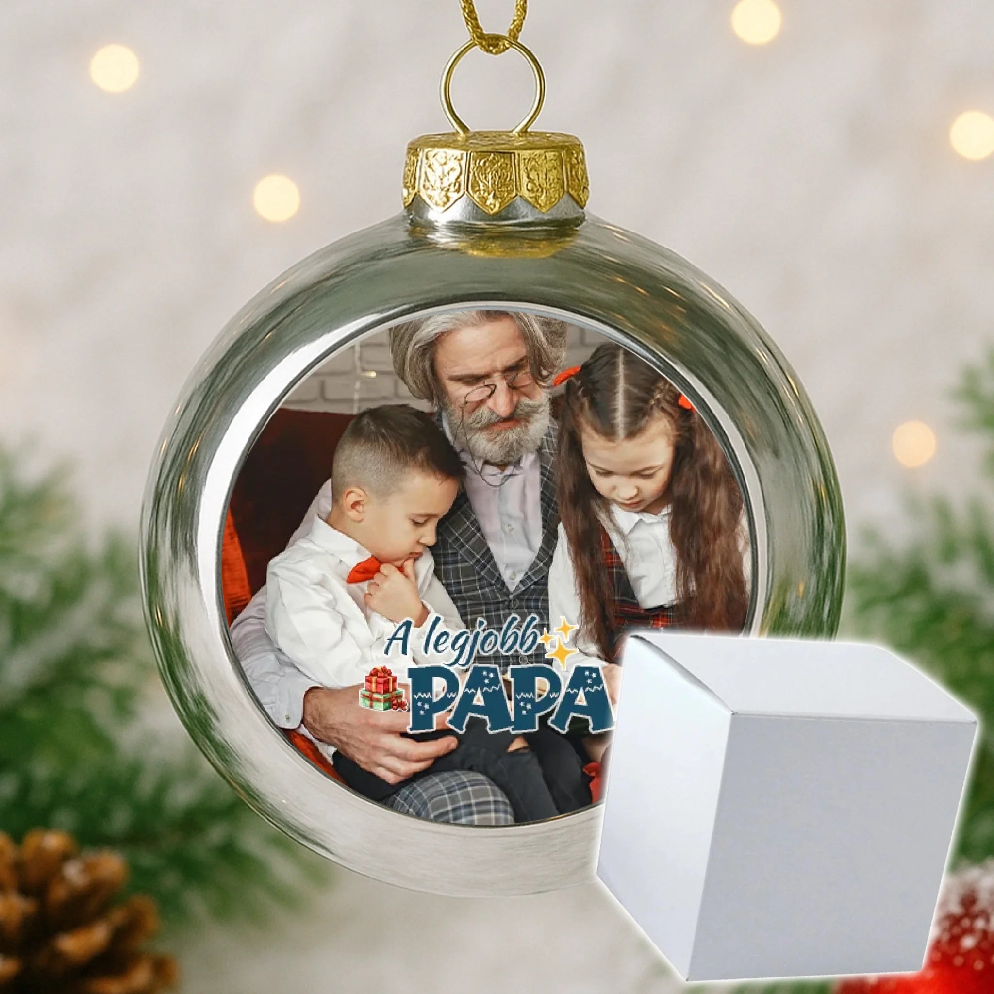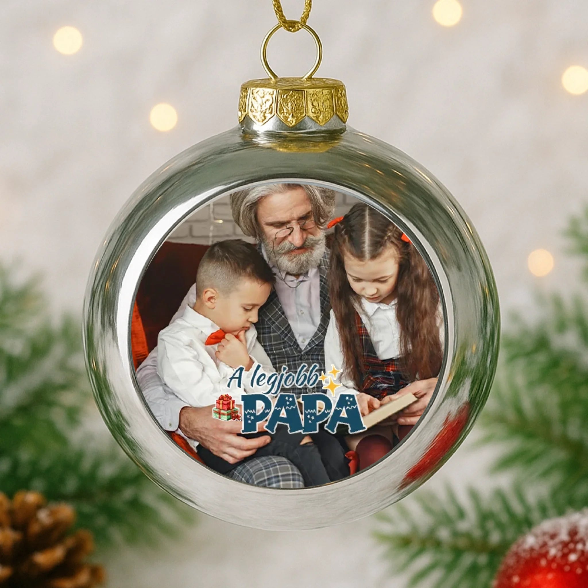 Fényképes karácsonyi gömbdísz Papának ezüst színű