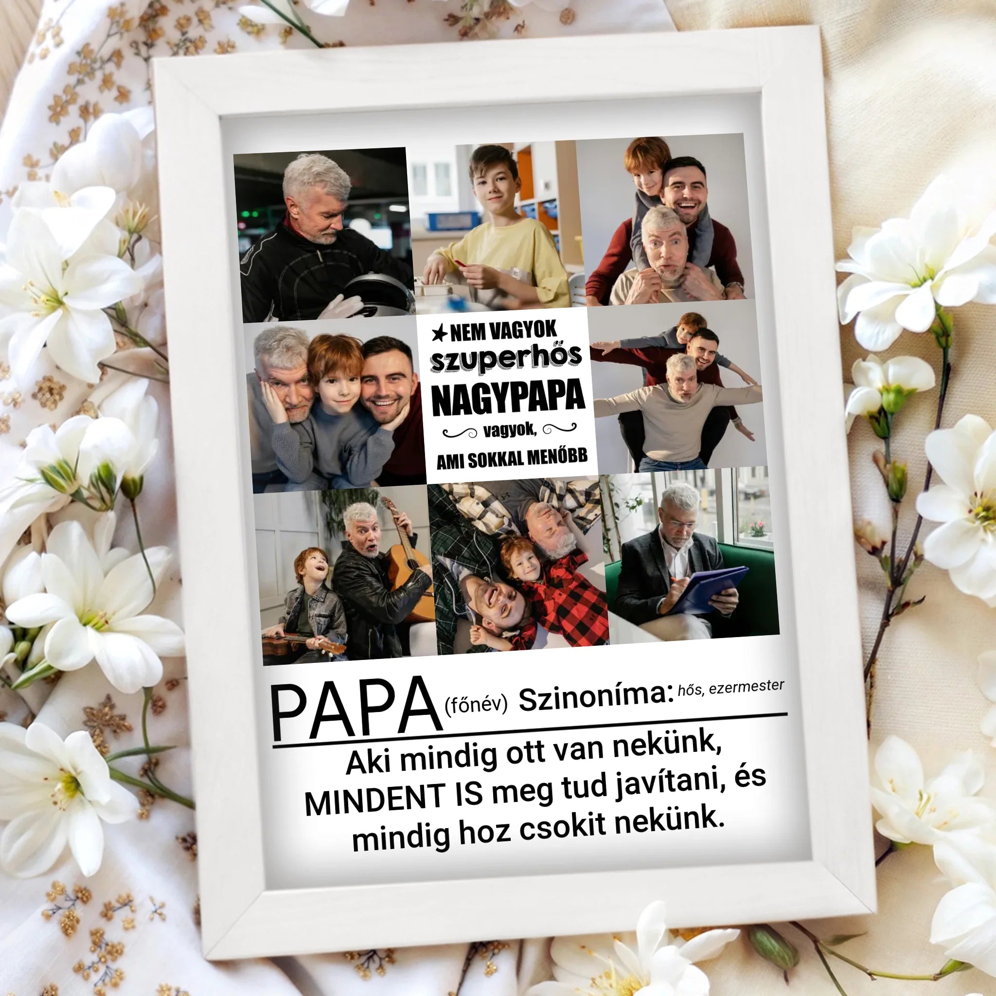 Apák napi falikép papának 8 képpel és egyedi felirattal