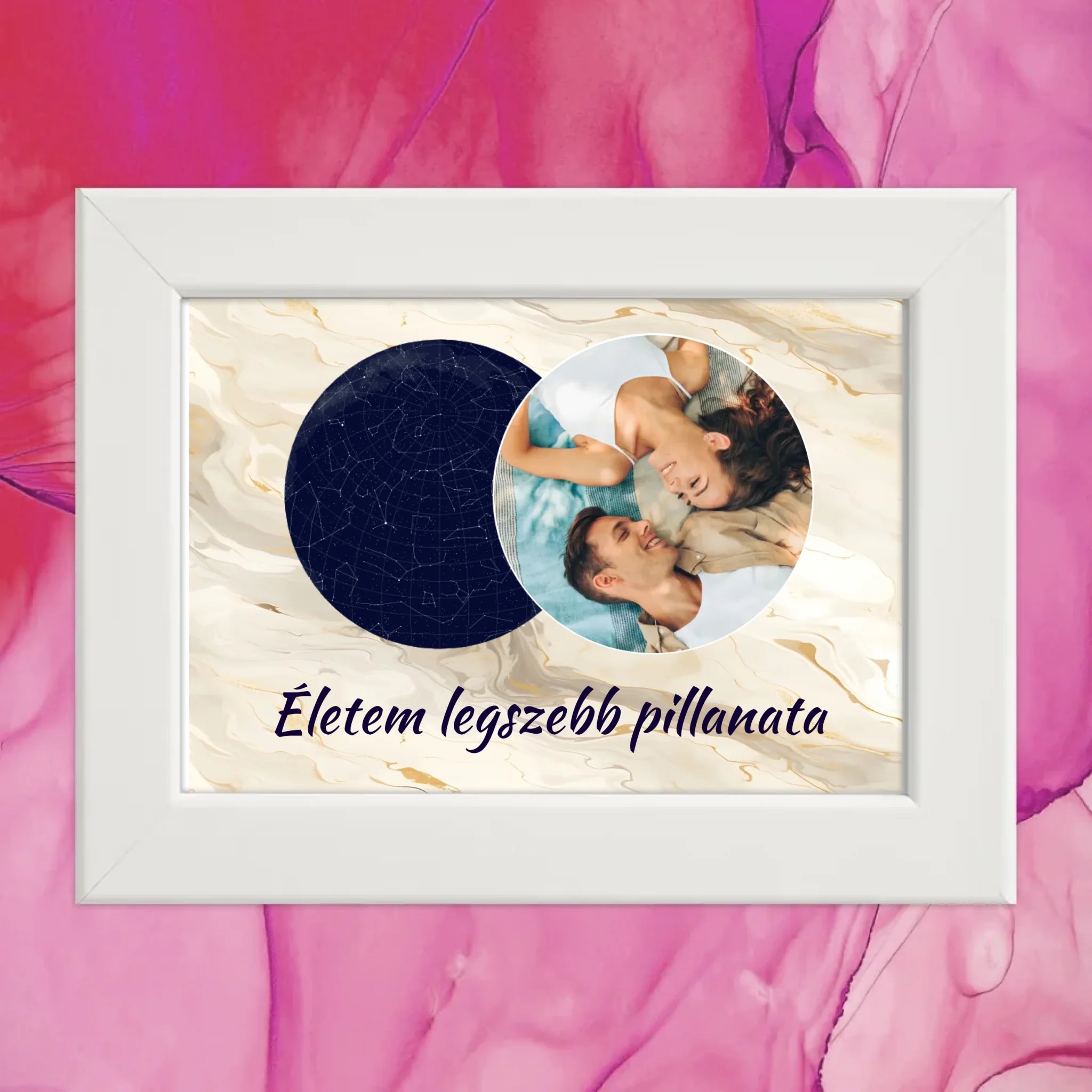 Egyedi csillagtérkép pároknak saját fotóval. Tervezd meg otthonod legszebb dekorációját faliképünkkel, amely szemet gyönyörködtetően kiemeli a szoba atmoszféráját.