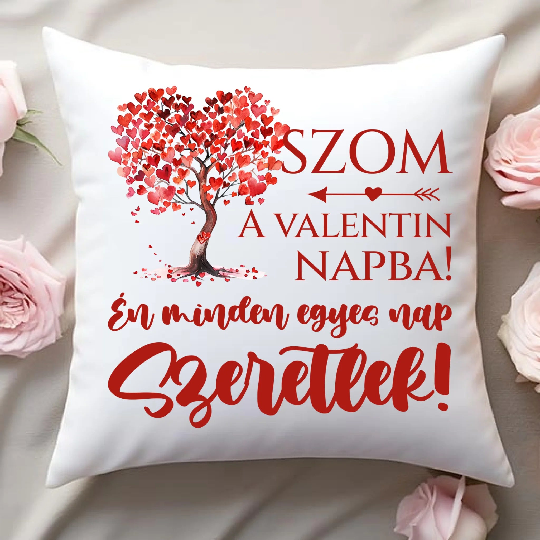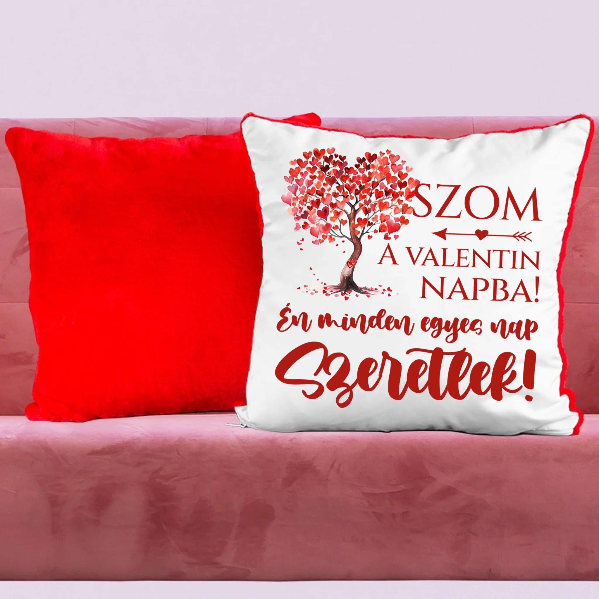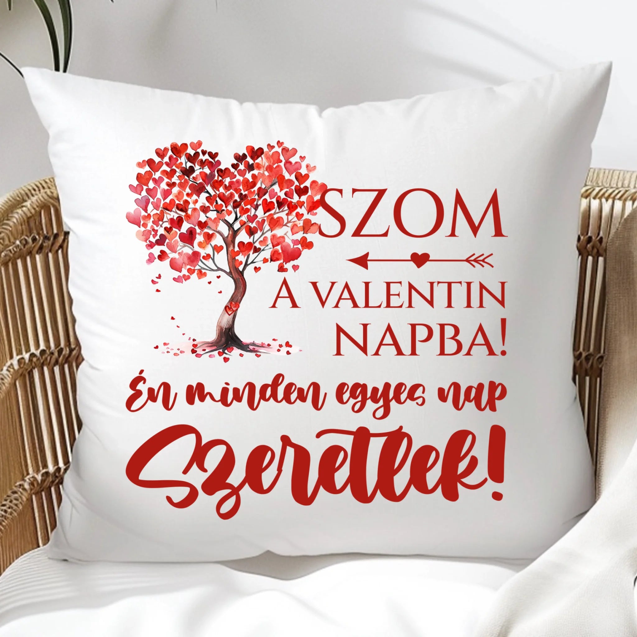 Valentin napi egyedi párna vicces, Fa-szomat a Valentin napba mintával.