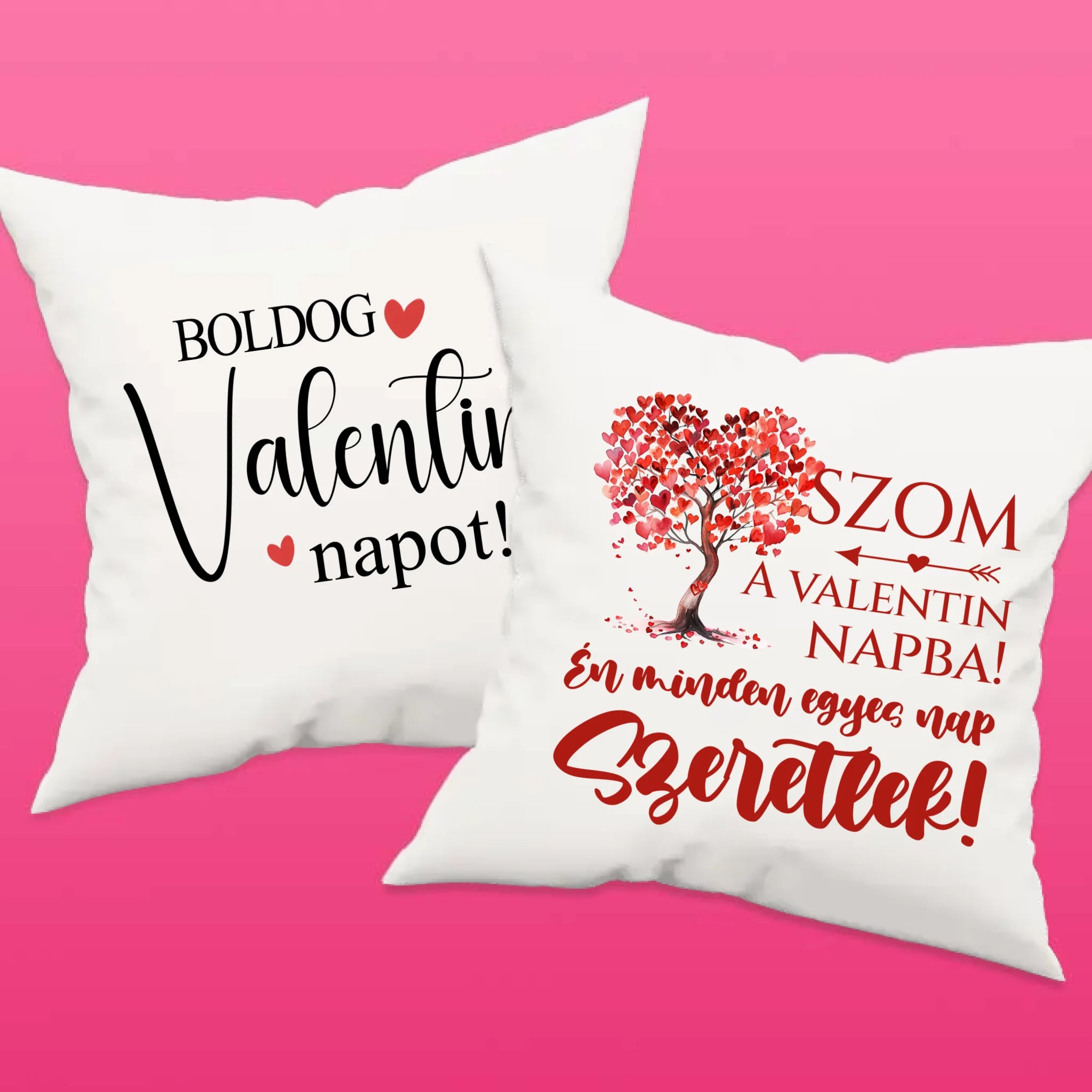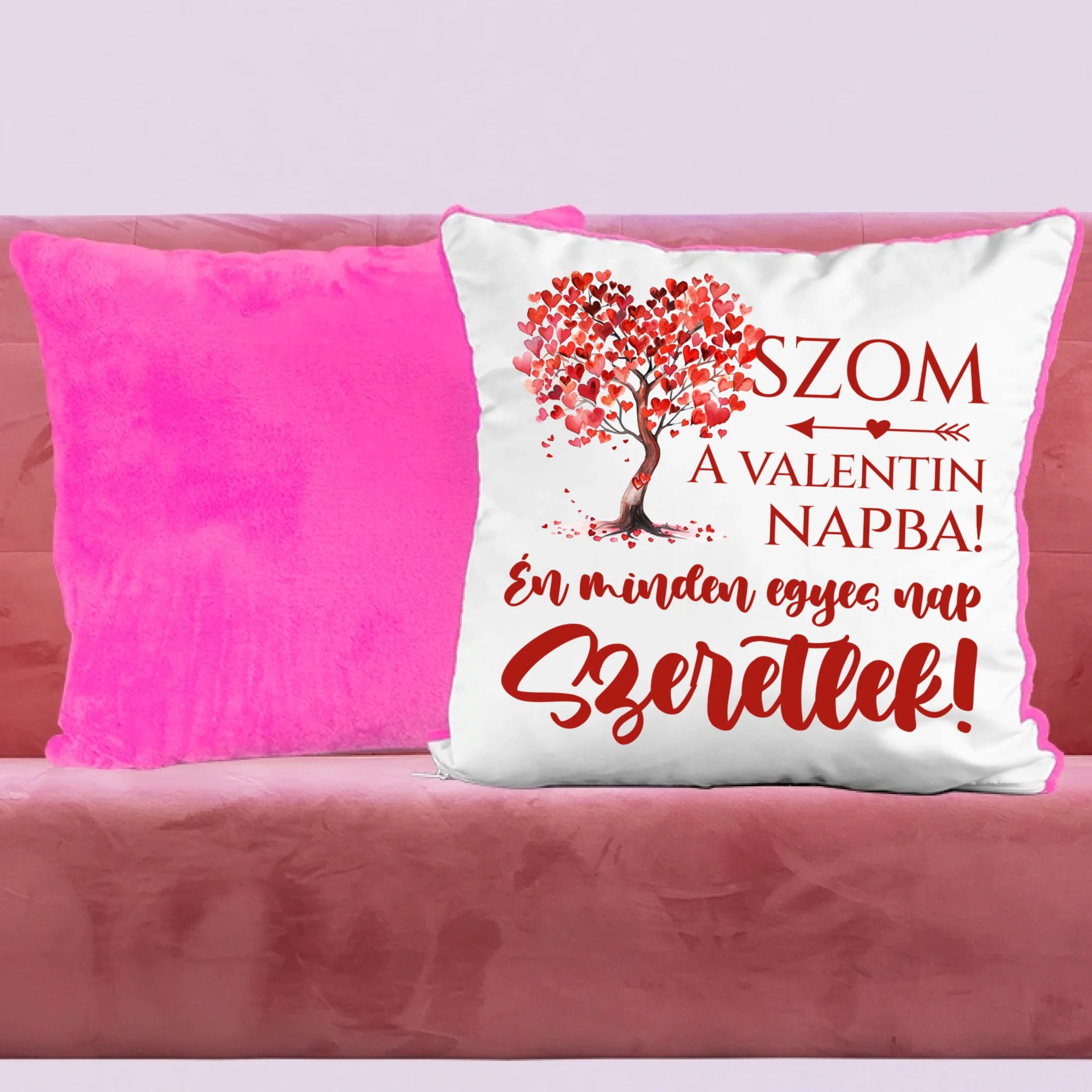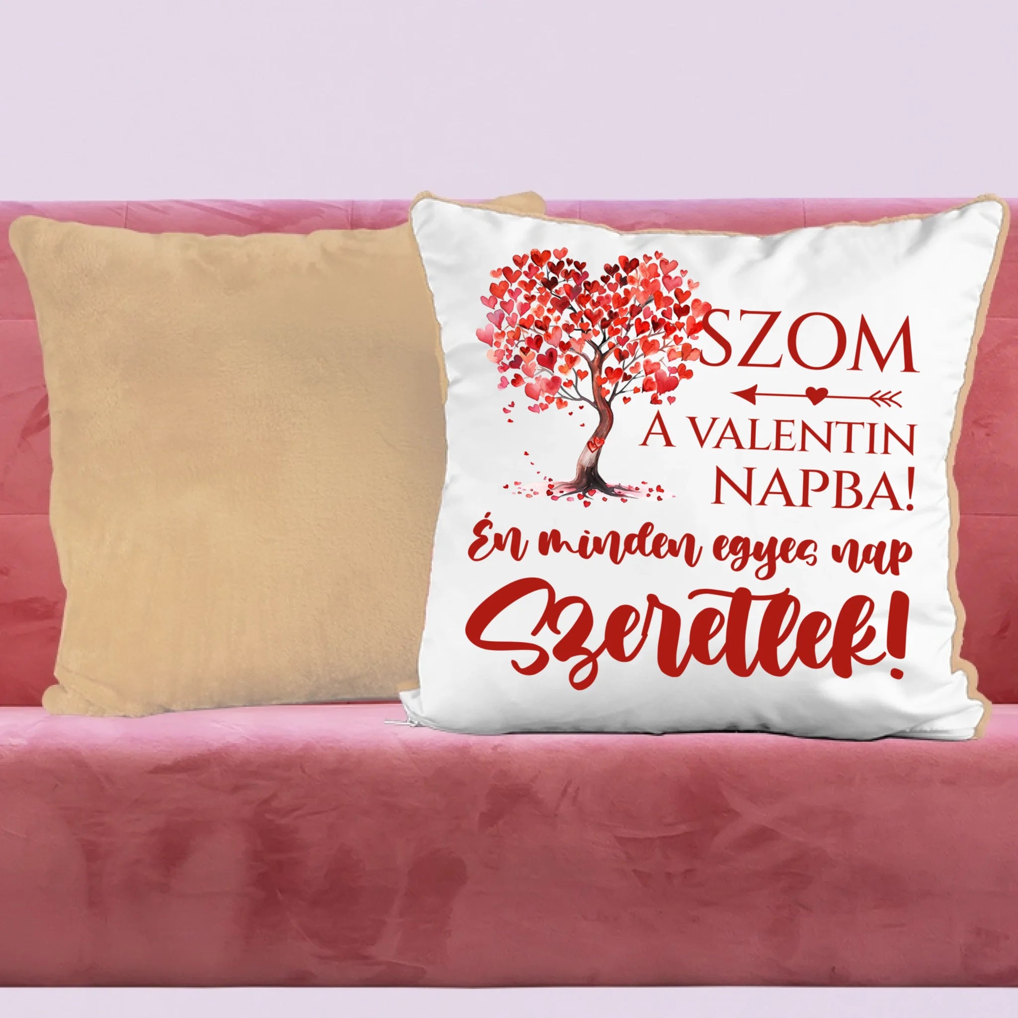 Valentin napi egyedi párna vicces, Fa-szomat a Valentin napba mintával.