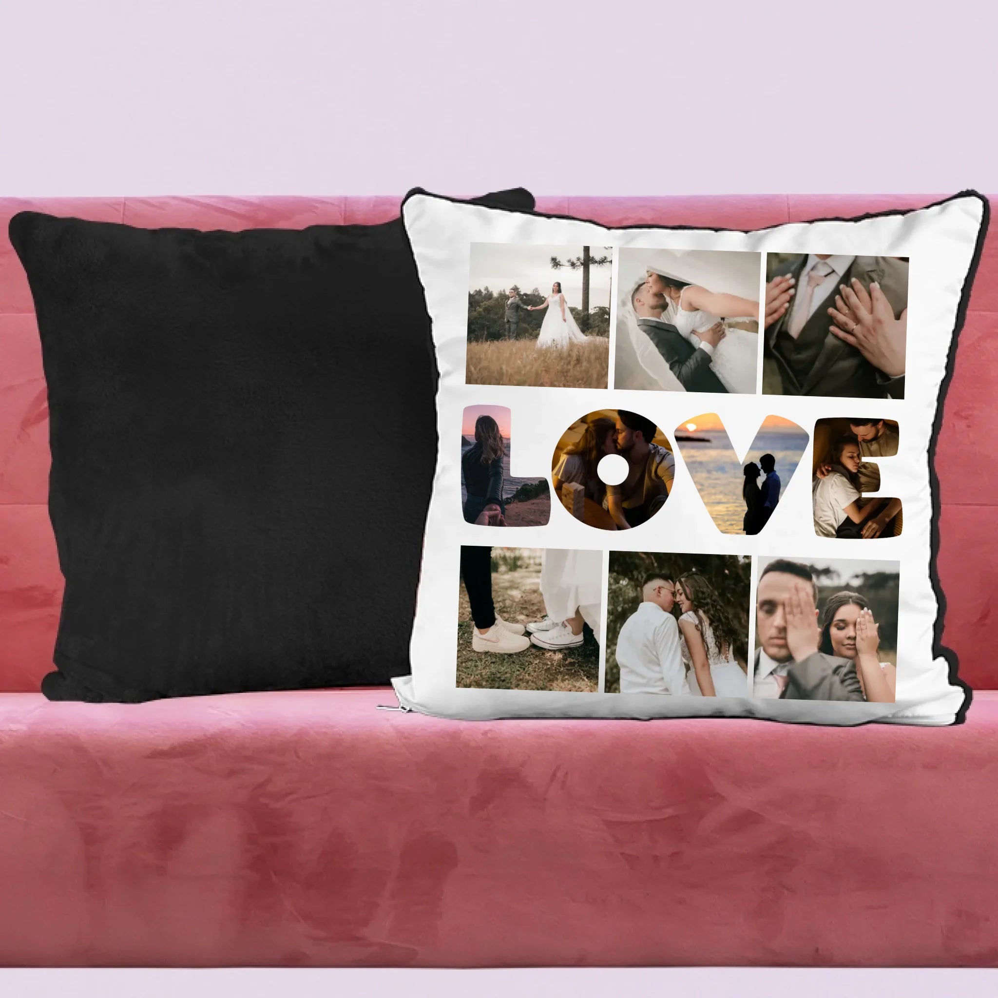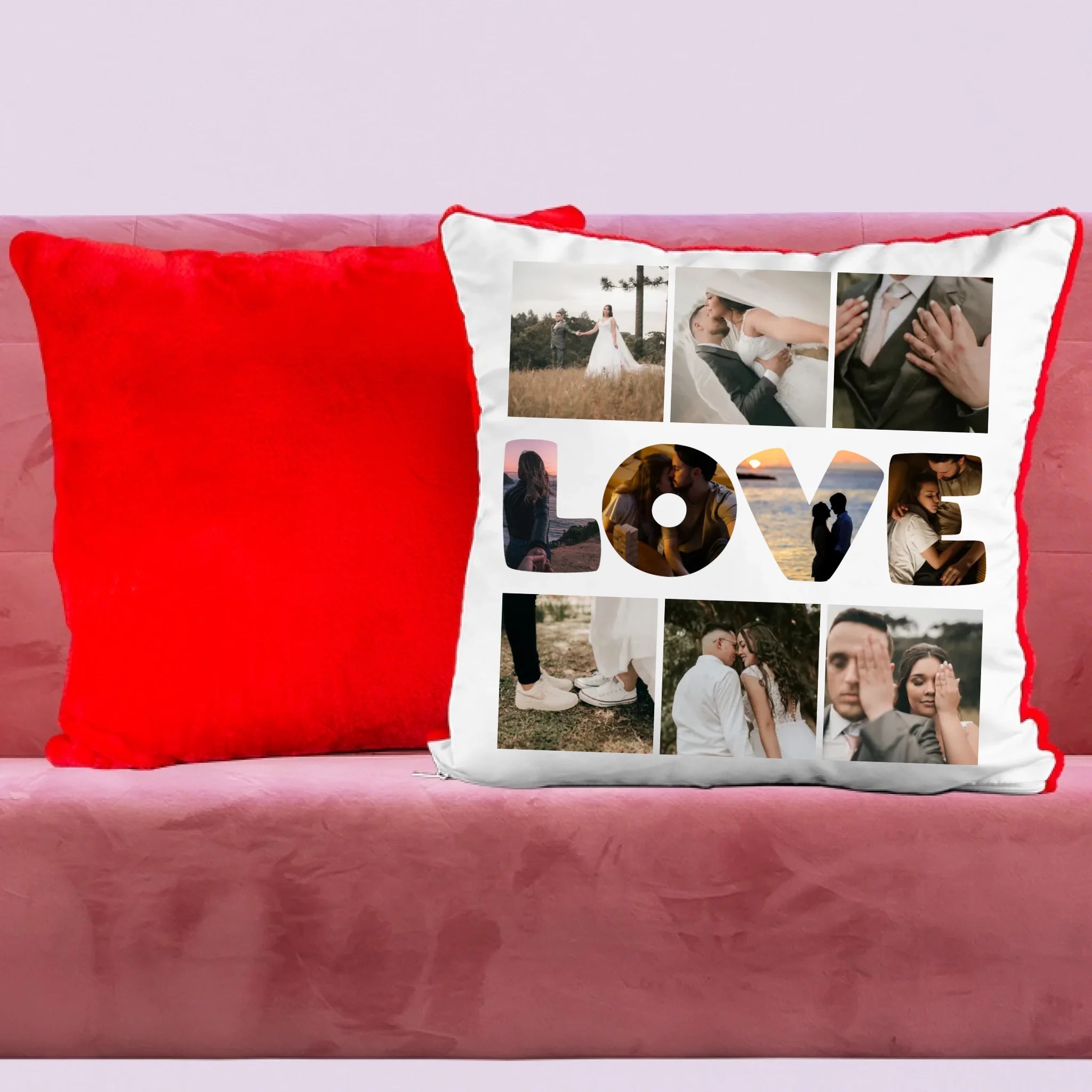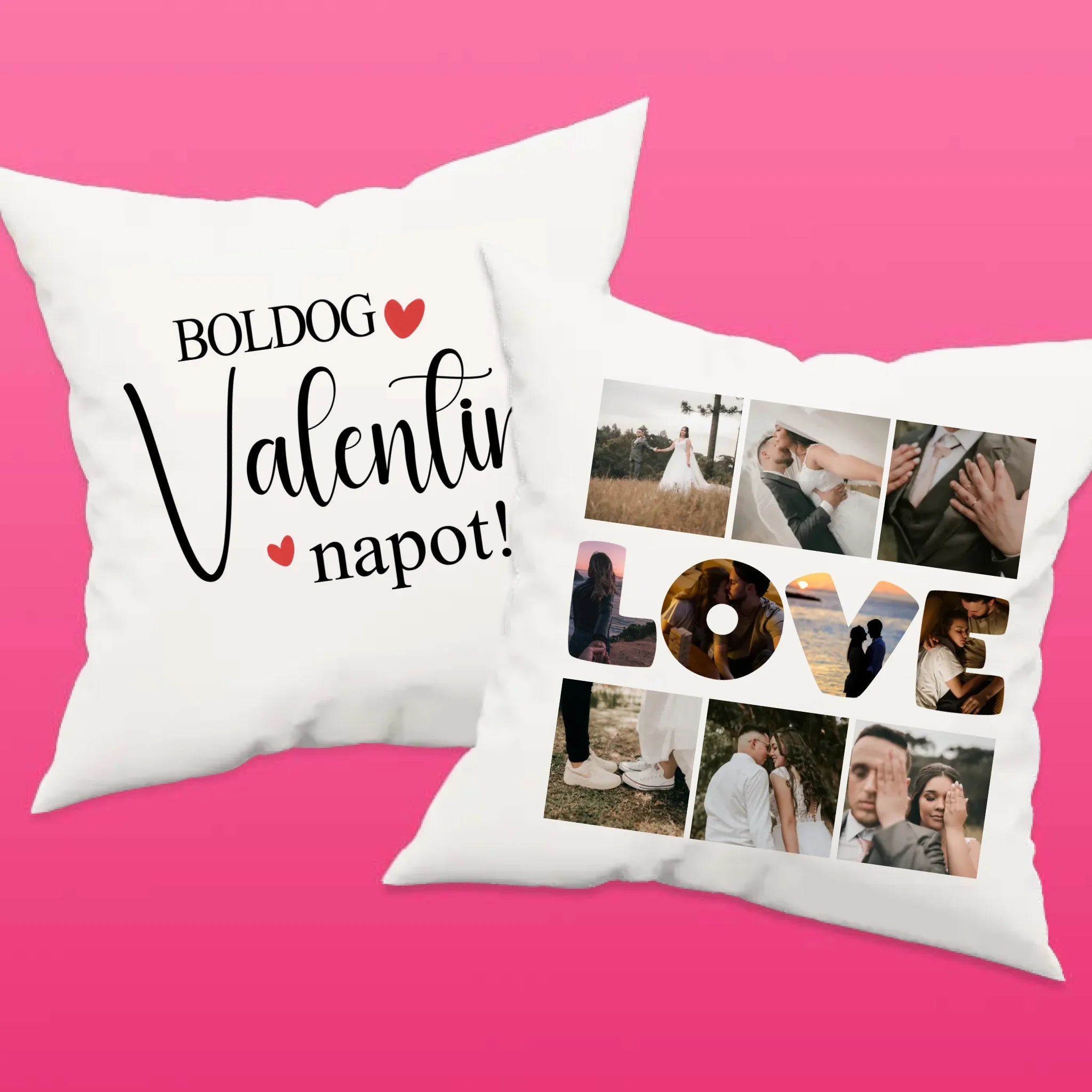 Valentin napi egyed fényképes párna, a Te saját fotóiddal személyre szabva.
