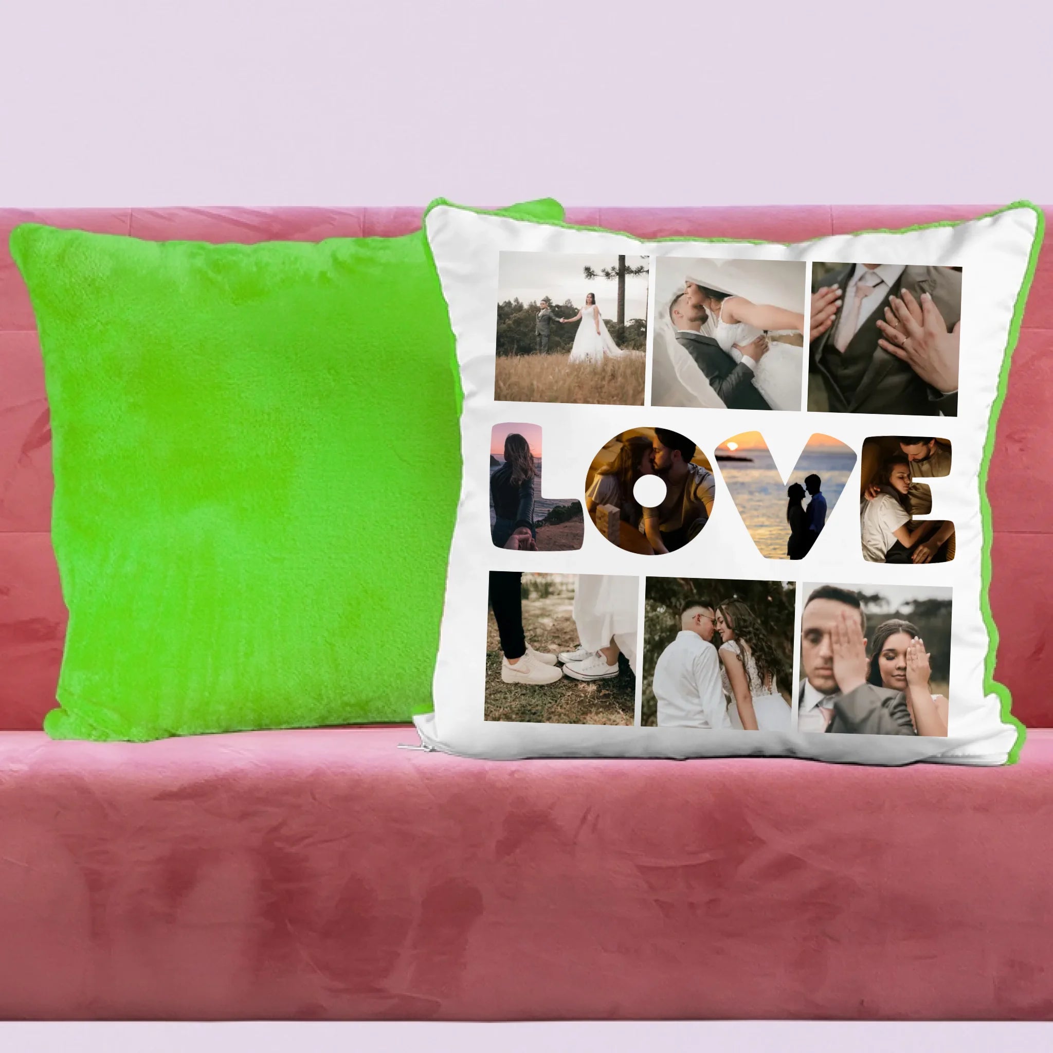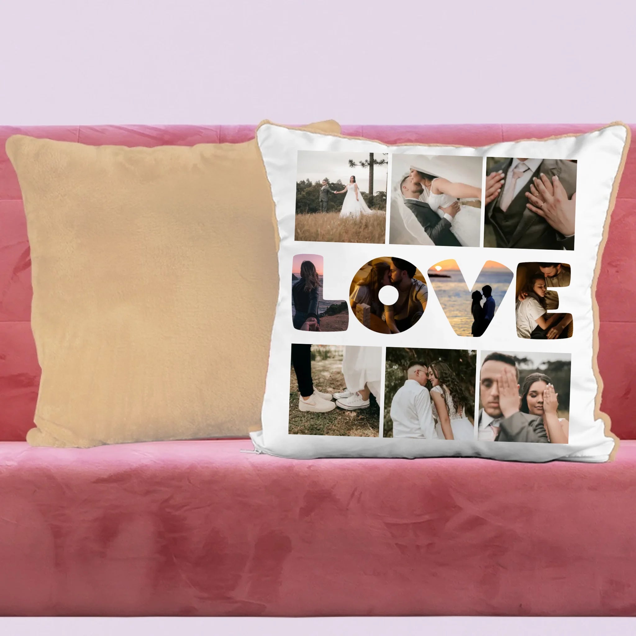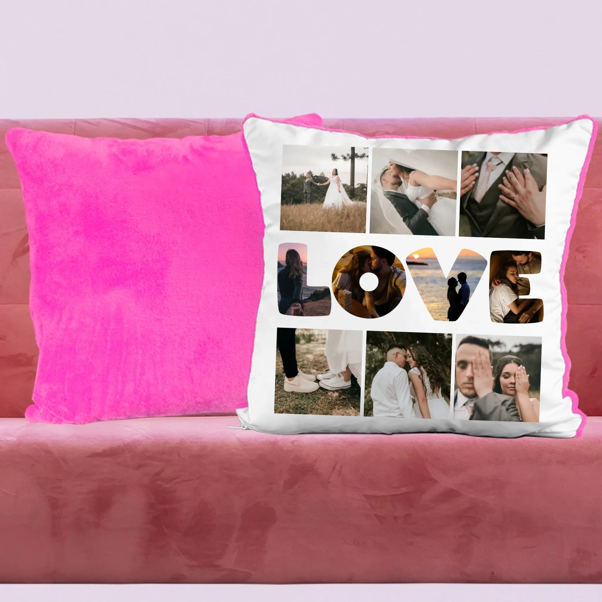Valentin napi egyed fényképes párna, a Te saját fotóiddal személyre szabva.