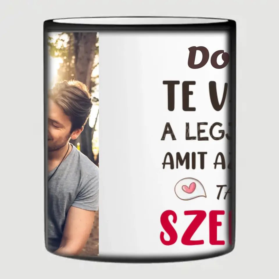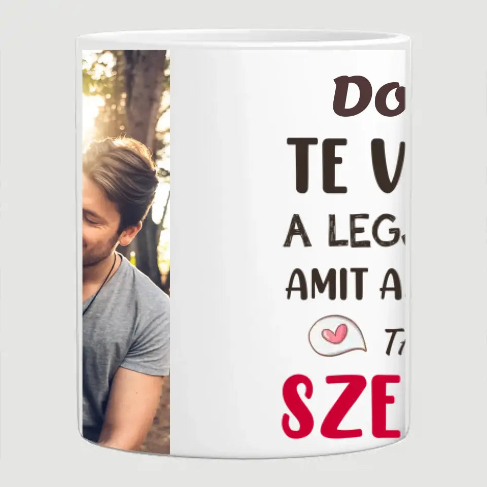Egyedi fényképes bögre a saját fotóddal. Az egyedi fényképes bögre remek ajándék szinte bármilyen alkalomra, így Valentin napra és évfordulóra is. Az egyedi bögre nyomtatása nagyon magas hőfokon történik, ezáltal az anyag szerkezetébe sütjük bele, így a nyomat rendkívül tartós lesz és nem kopik, nem fakul ki. A fényképes bögréhez bármilyen fotót választhatsz, illetve feliratot is adhatsz hozzá.