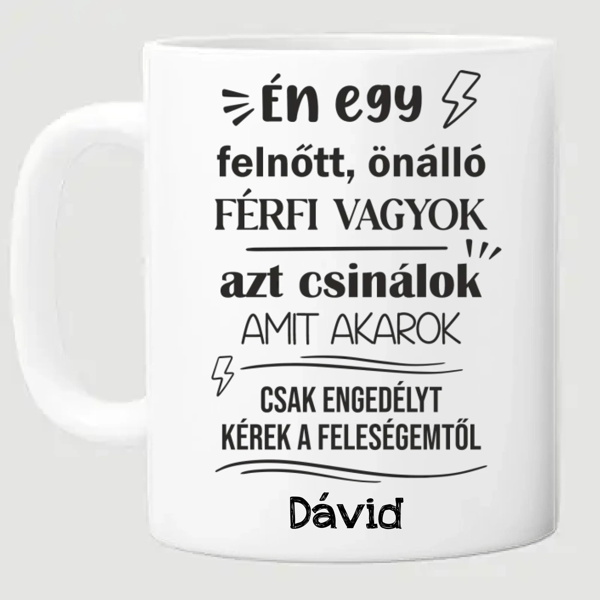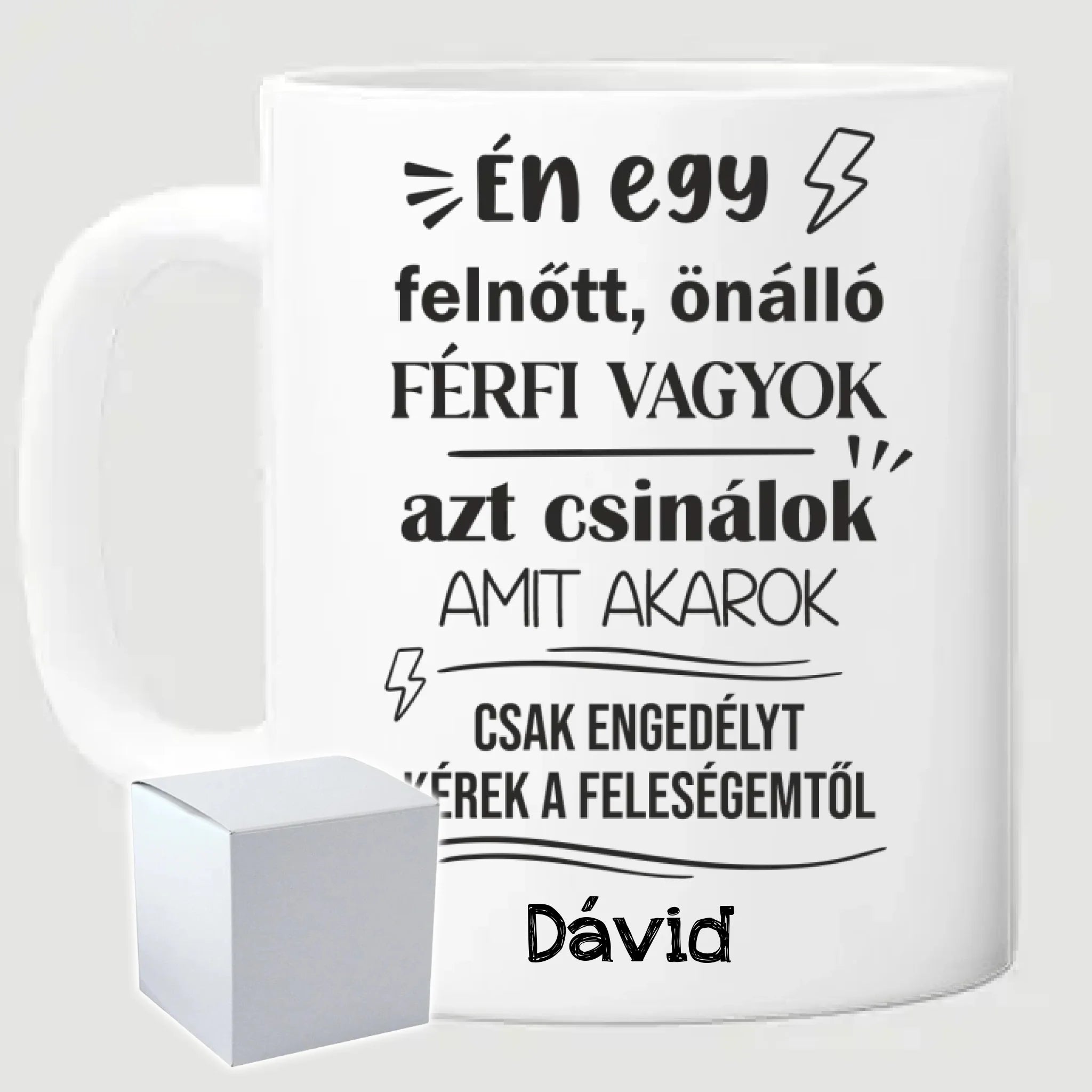 Felnőtt, önálló férfi vagyok - bögre humoros felirattal