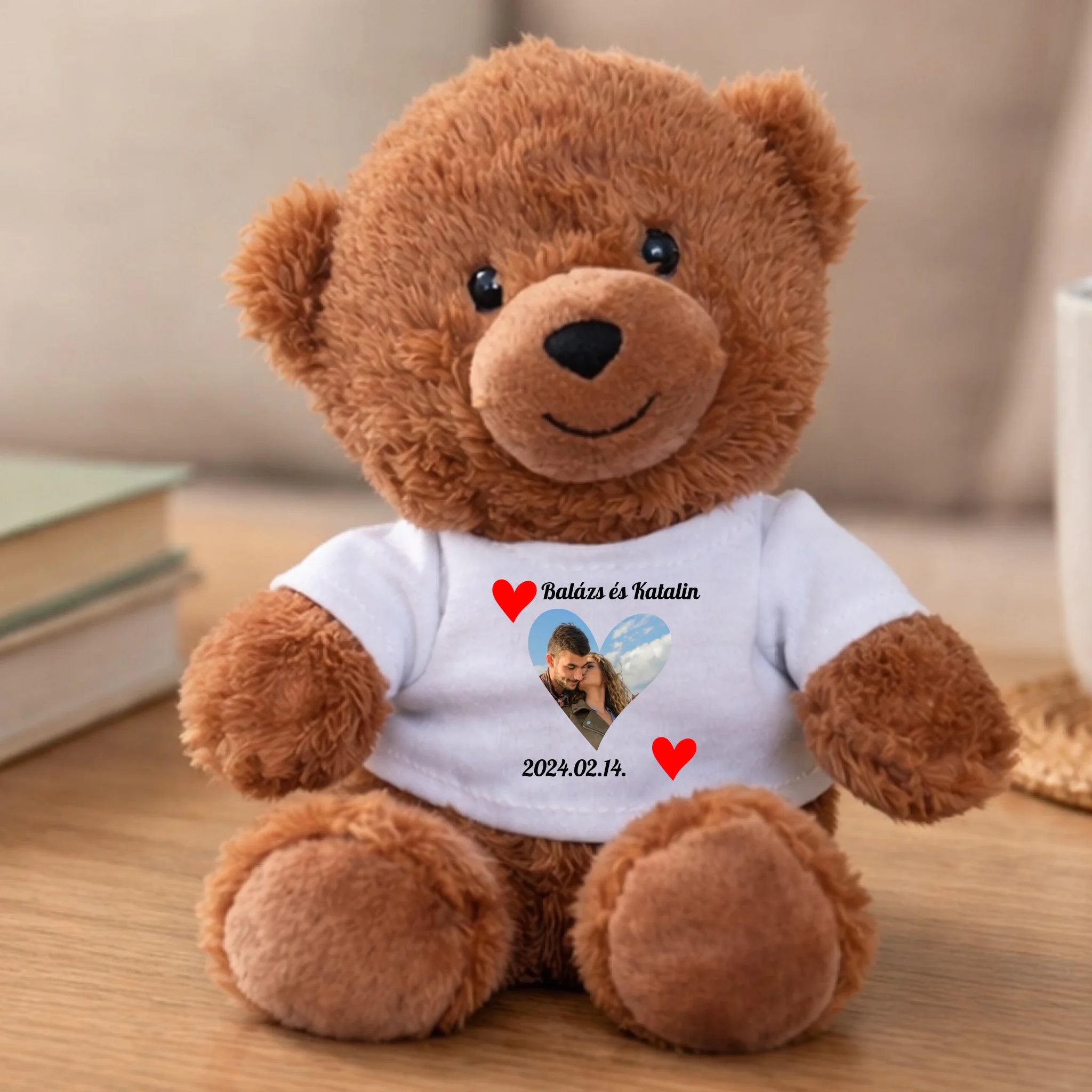 Ez a plüss maci teljesen személyre szabható: saját fényképpel és egyedi üzenettel készítjük, így garantáltan egyedi darabot kapsz.
