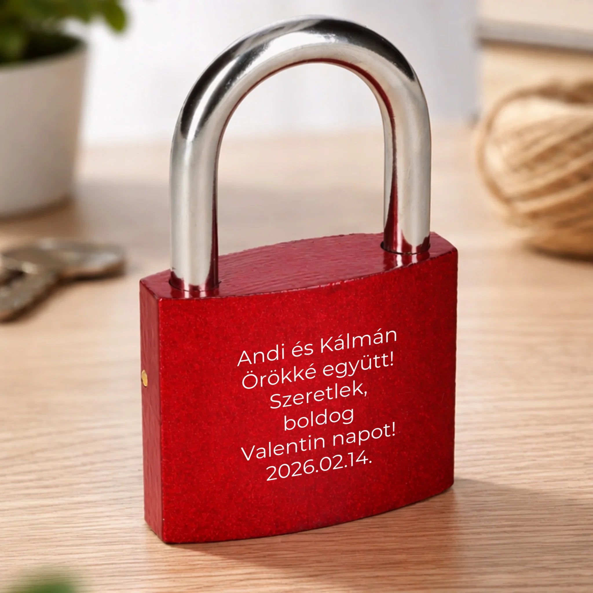 Egyedi gravírozott piros szerelem lakat felirattal